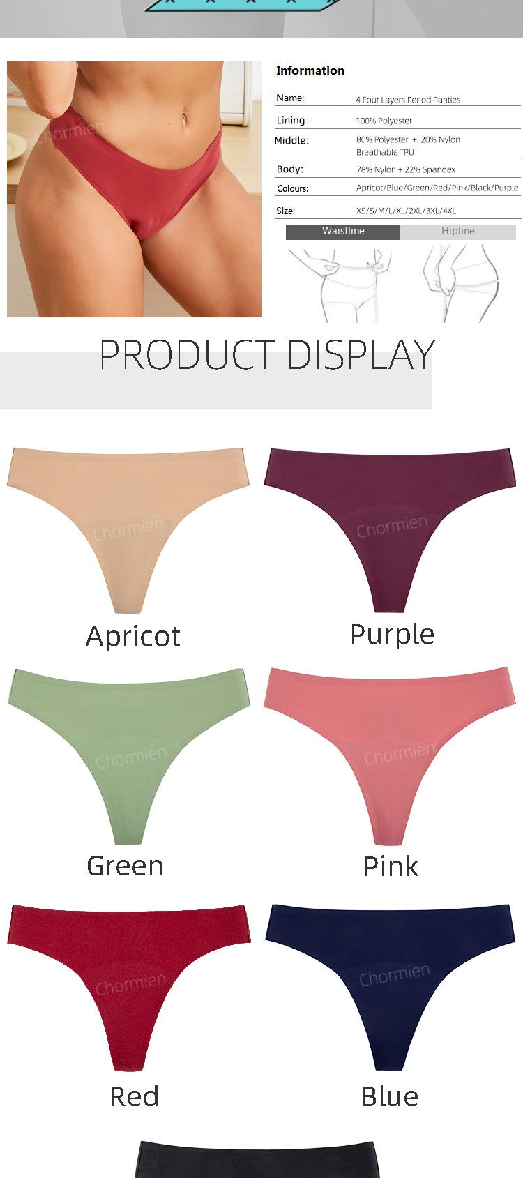 Ropa interior fisiológica femenina de gran tamaño para comercio exterior transfronterizo, a prueba de fugas, compresa no sanitaria de cuatro capas, tanga menstrual adhesiva sin costuras