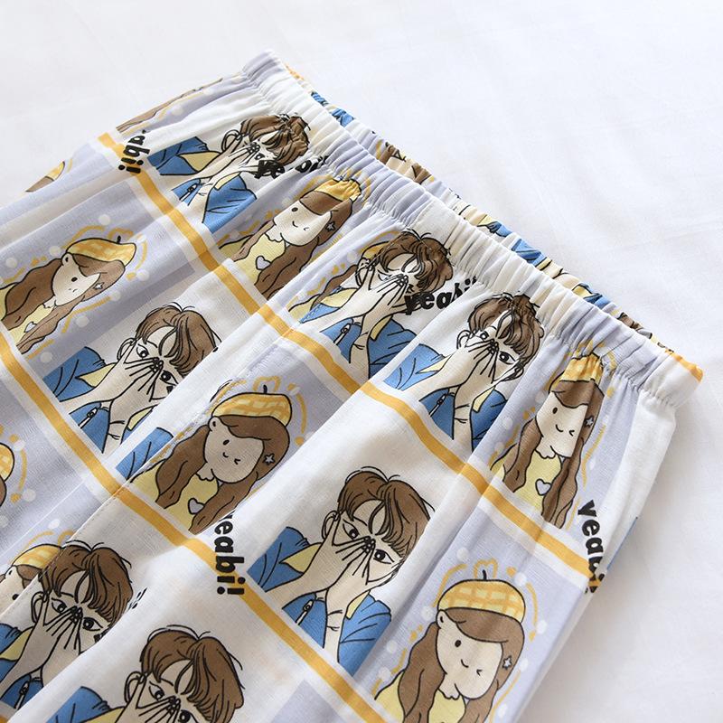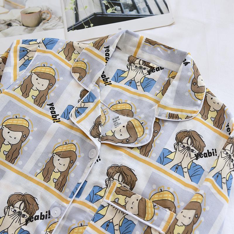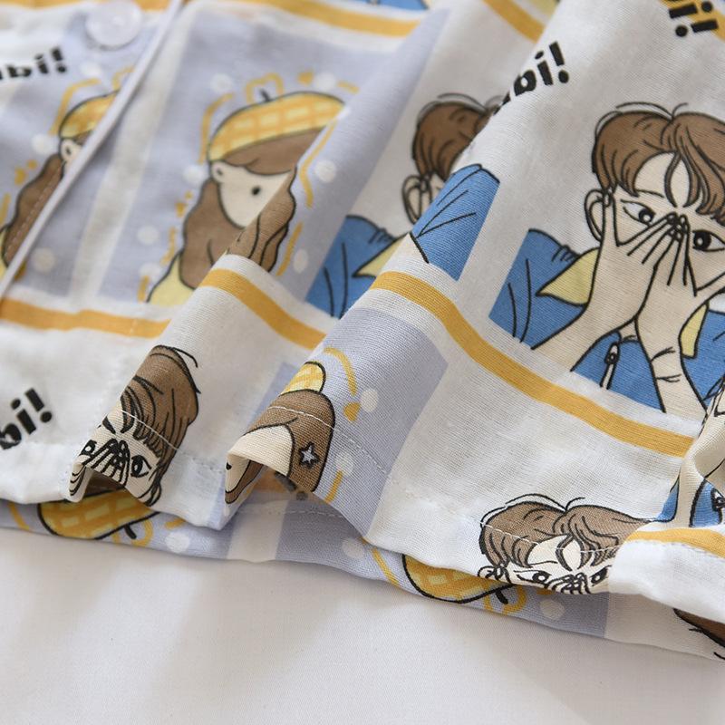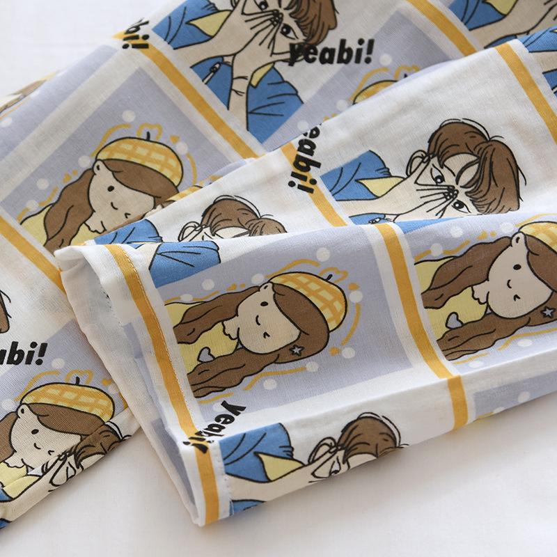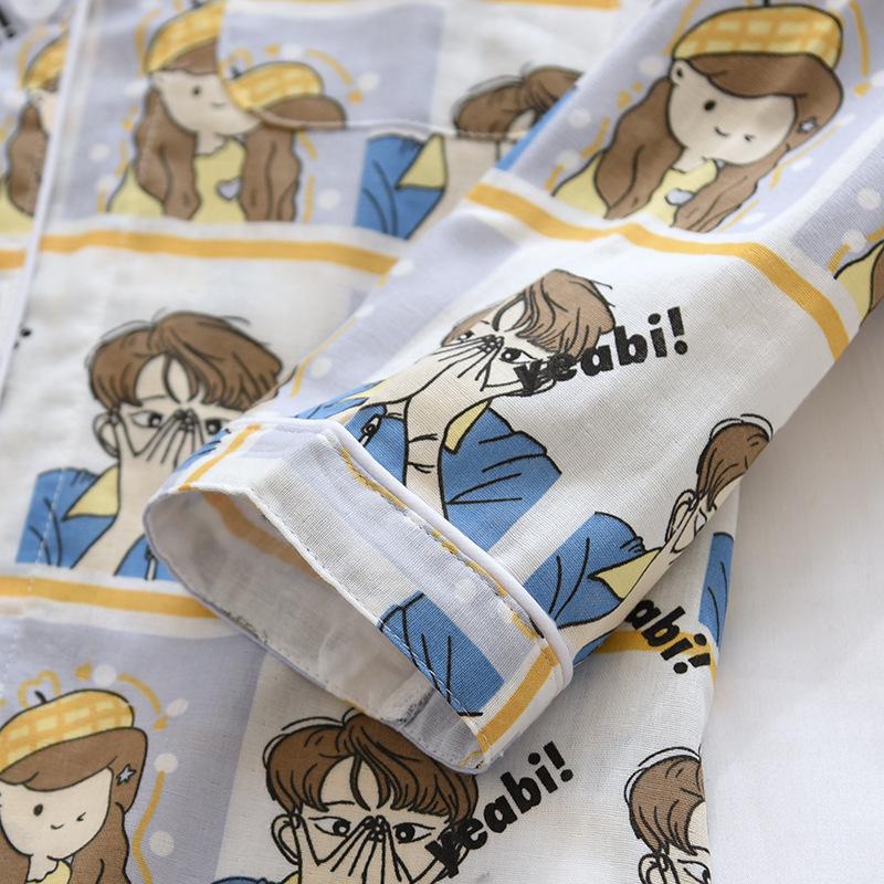 Pijamas para Hombre y Mujer Talla Grande Gasa Doble Ropa para el Hogar Dibujos Animados Personalizado Manga Larga Pantalones Cuatro Estaciones Delgada Ropa para Parejas
