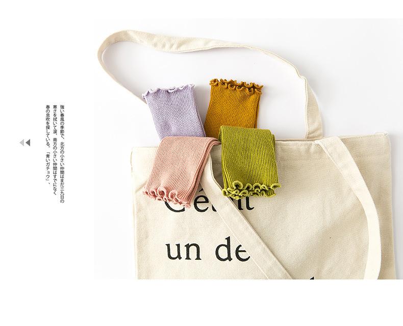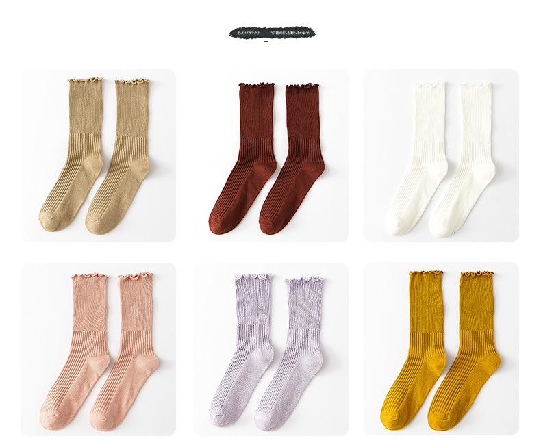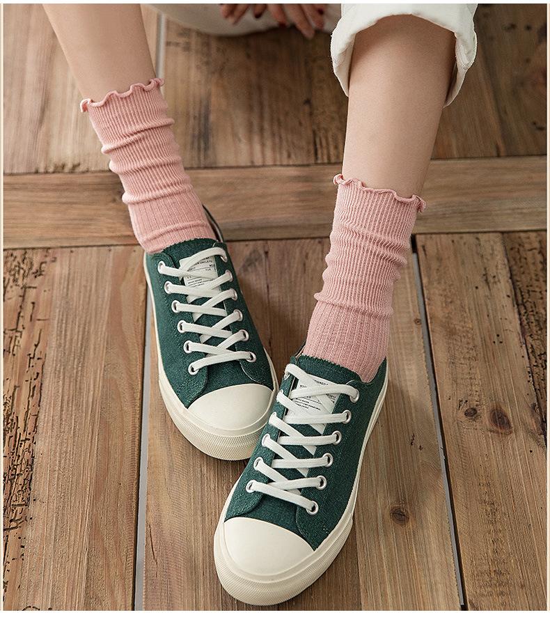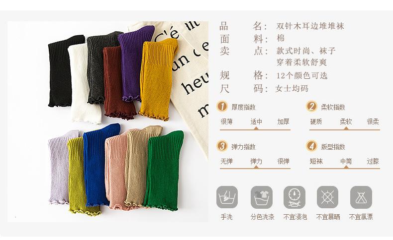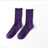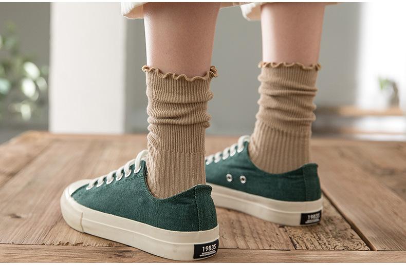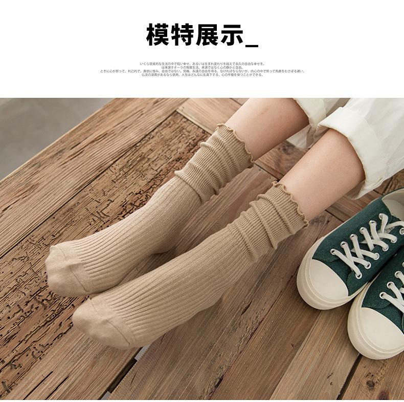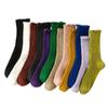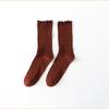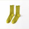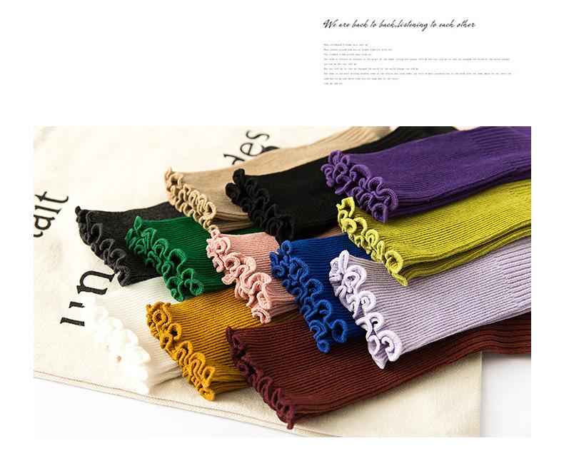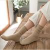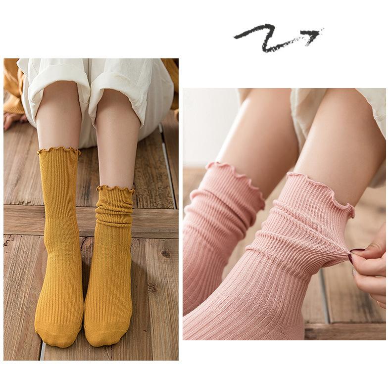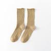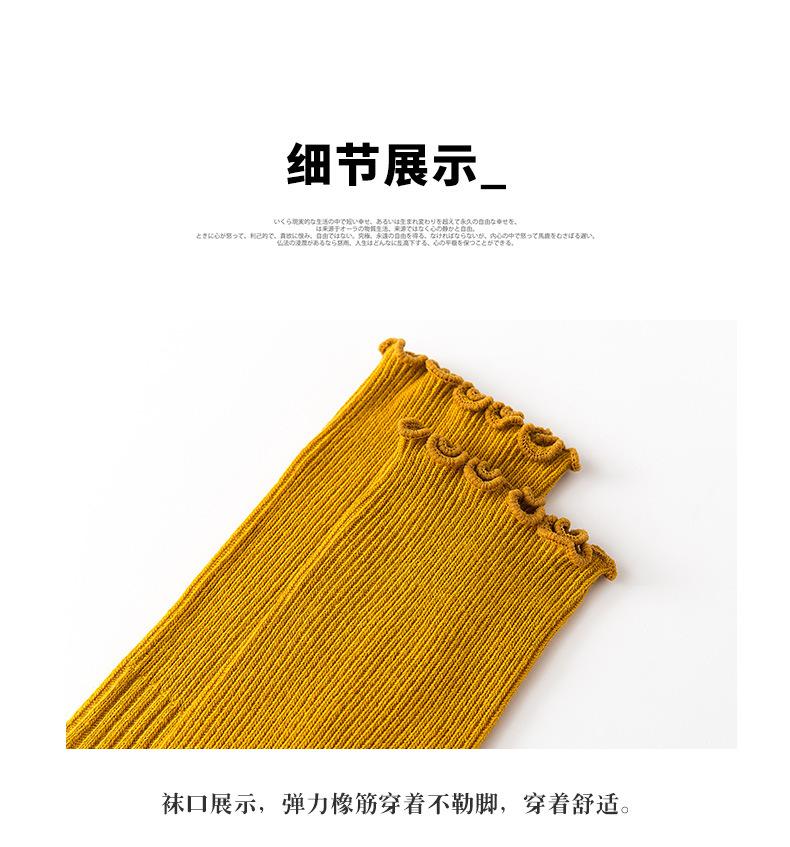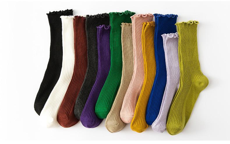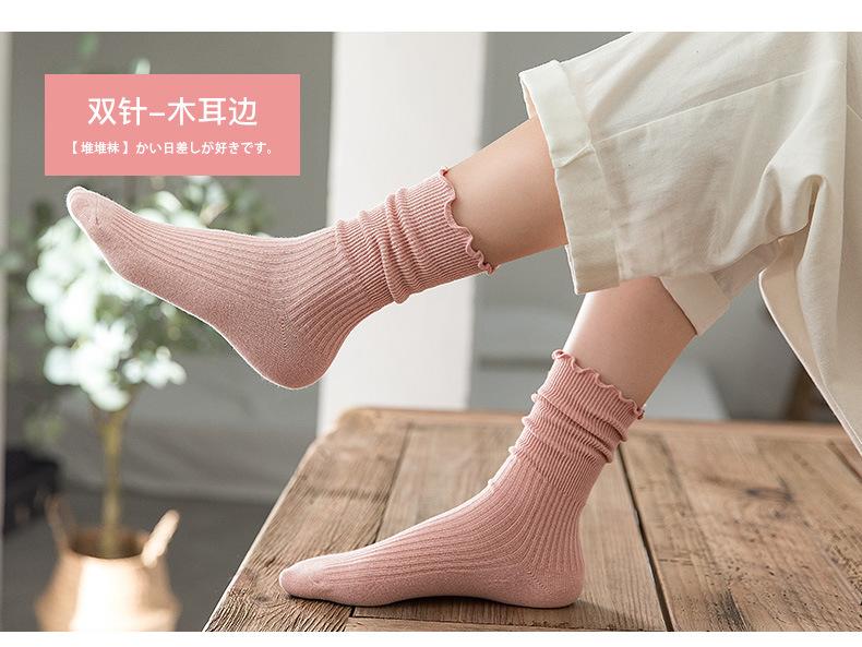 Calcetines nuevos de otoño e invierno, calcetines de doble aguja con orejas de madera japonesas, calcetines de tubo para mujer, calcetines de algodón de color sólido para mujer, venta al por mayor