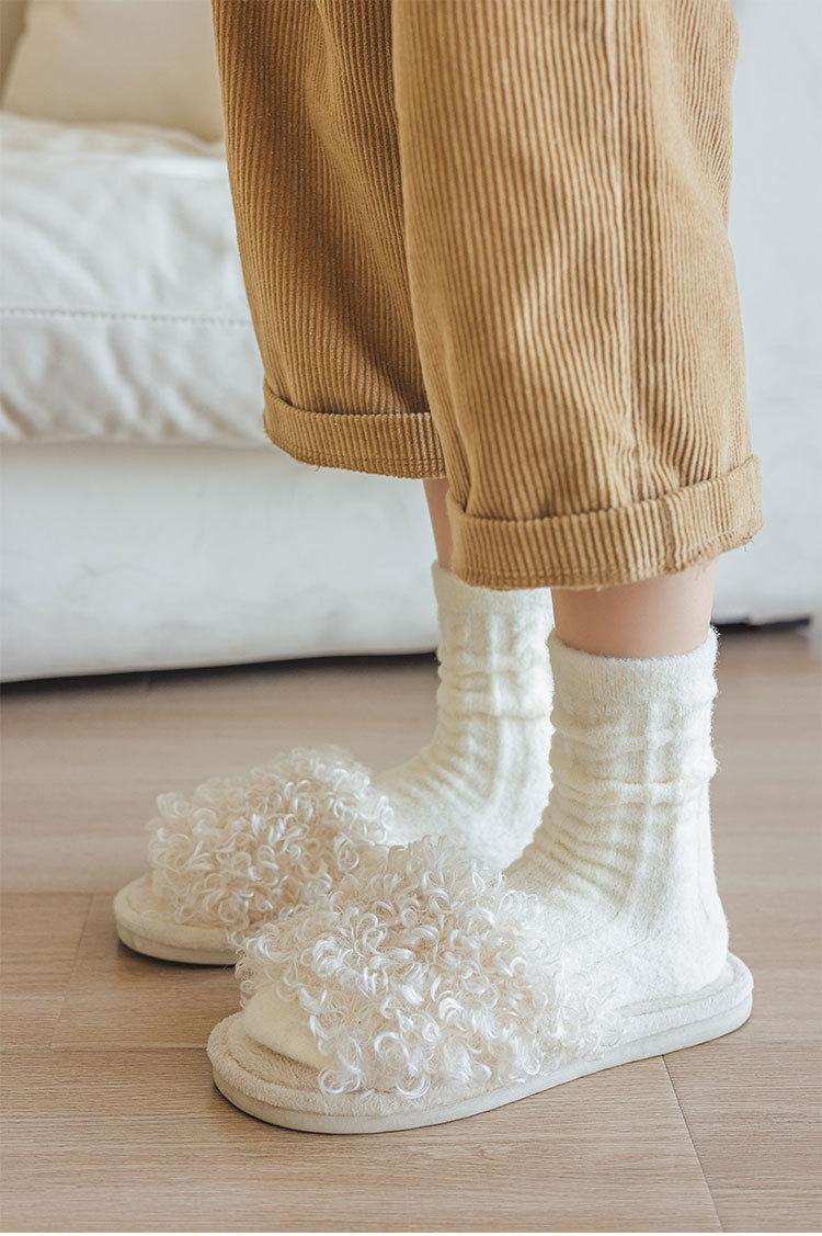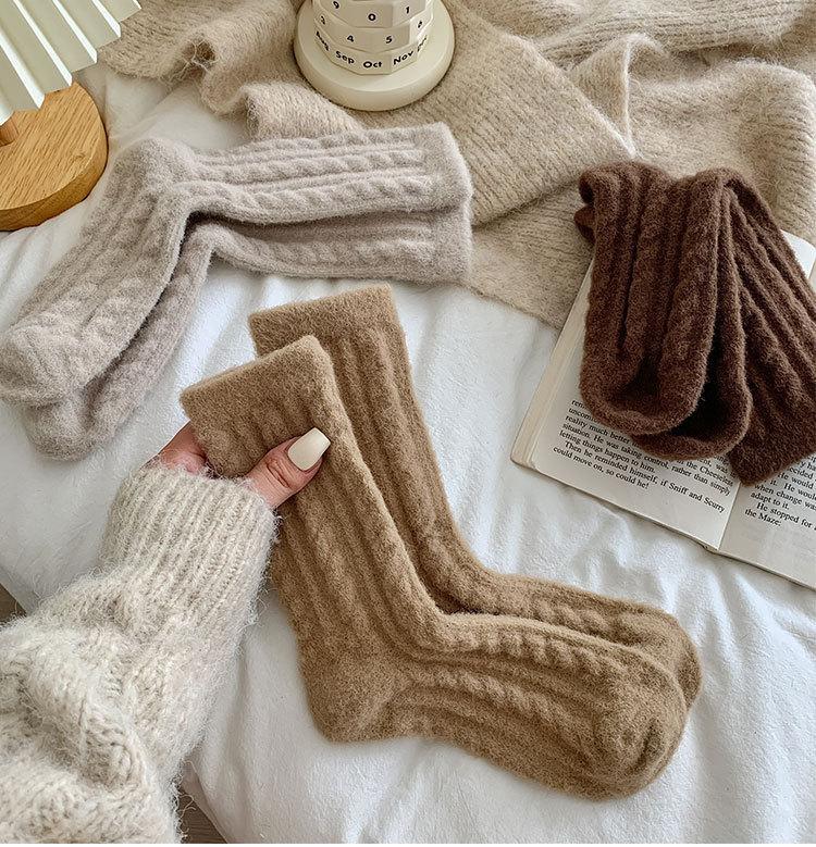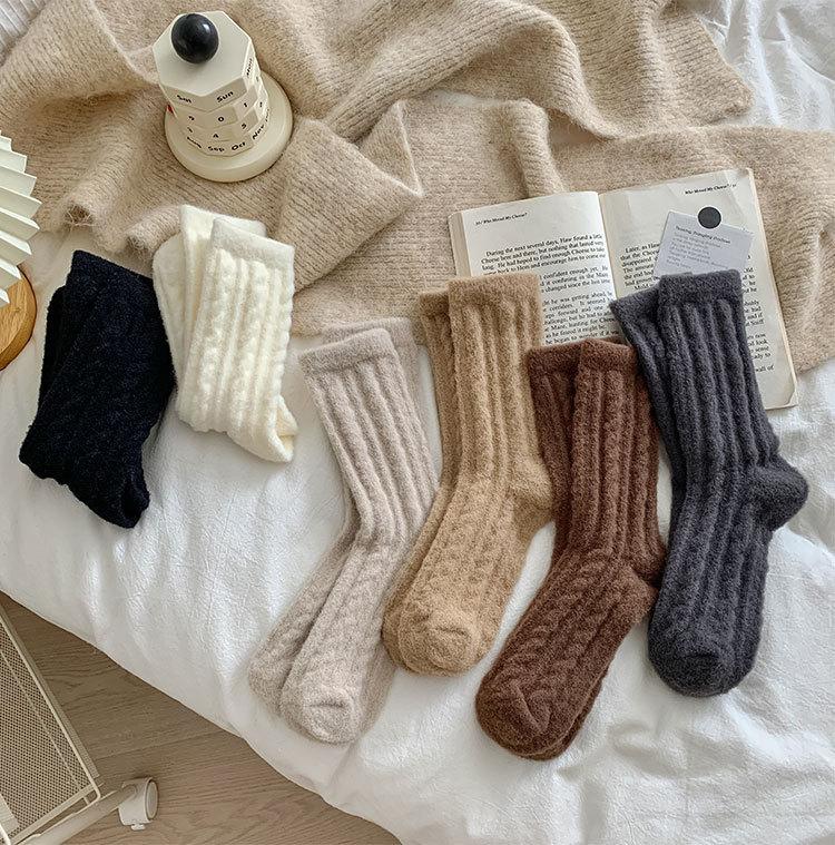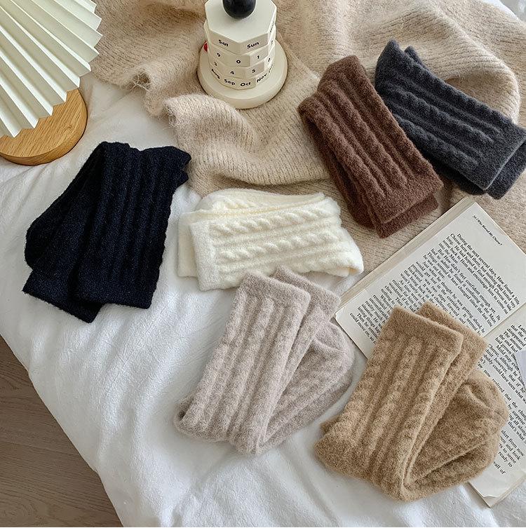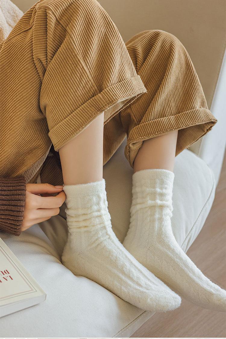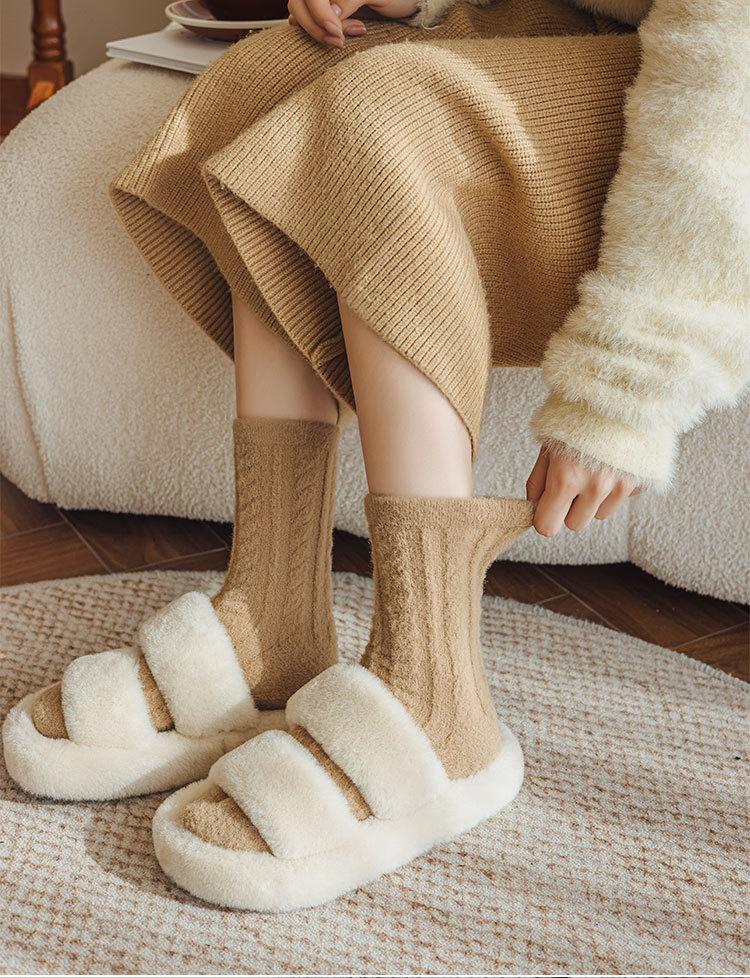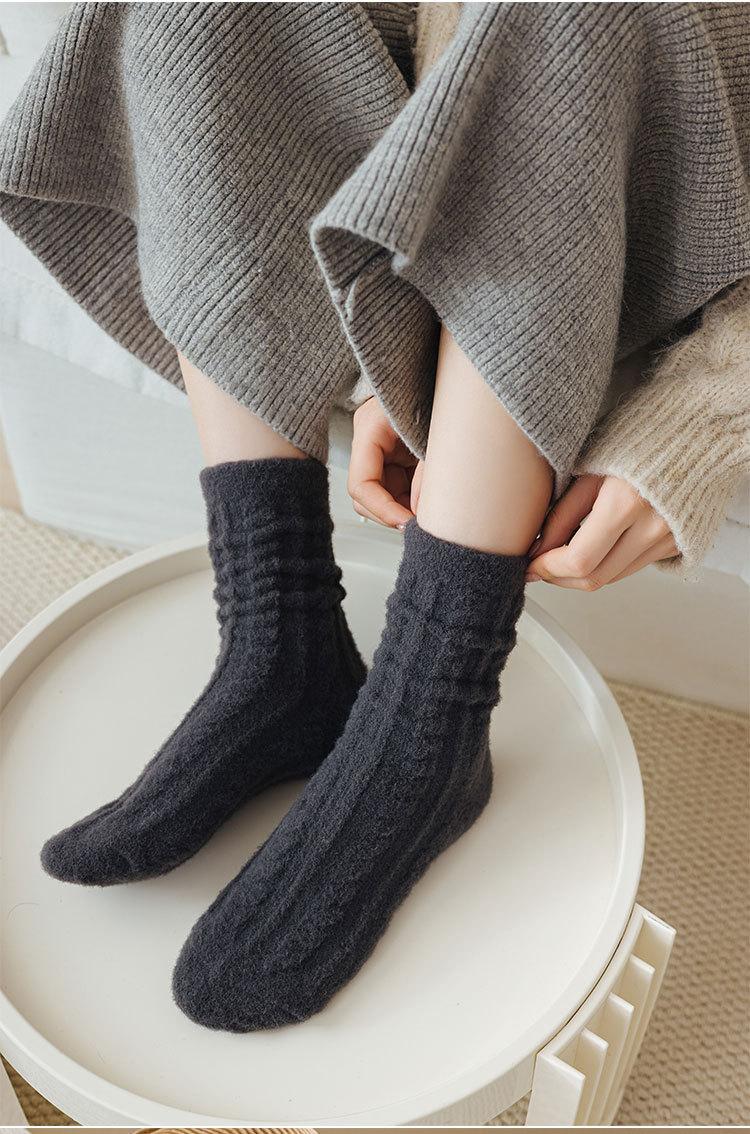 Calcetines gruesos de felpa de invierno para mujer, calcetines hasta la mitad de la pantorrilla, boca holgada que no aprietan, calentadores de piernas, medias de confinamiento, color sólido, calcetines para dormir en casa