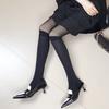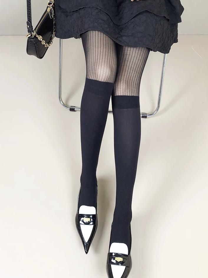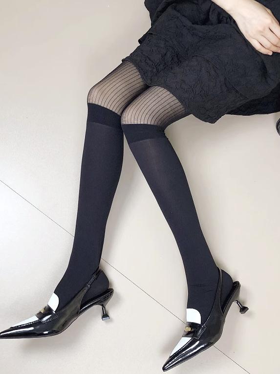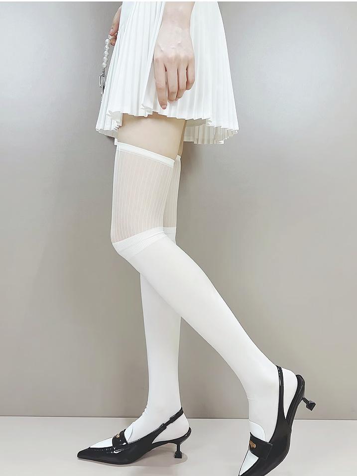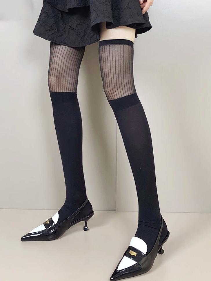 Verano Sexy Malla Negra Costuras Medias de Seda Hasta la Rodilla Medias Finas Anti-gancho Seda Rayas Verticales jk Caña Alta Medias Blancas