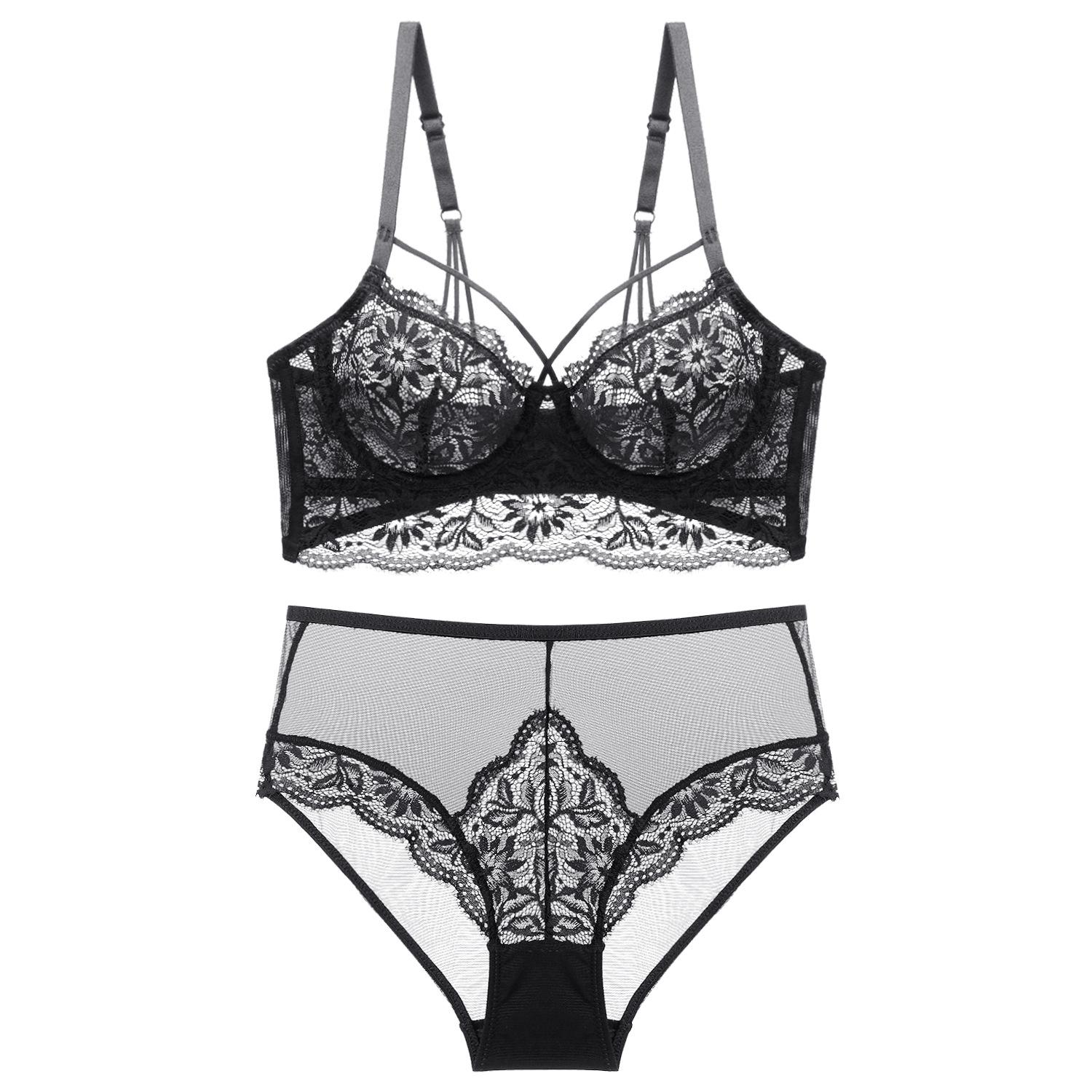 Nueva ropa interior de encaje sexy para mujer, conjunto de sujetador ultrafino, cómodo y sin esponja, sujetador con espalda hermosa y hueca.