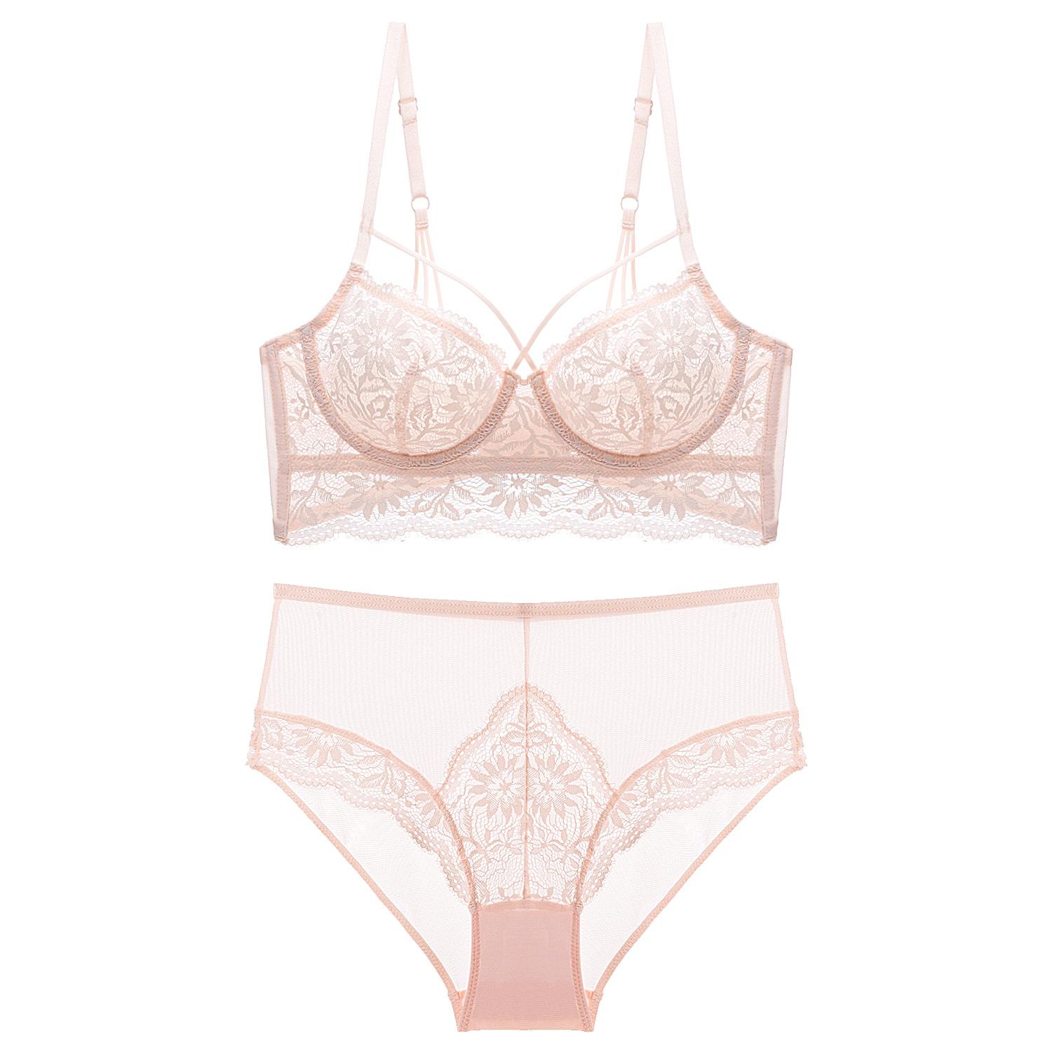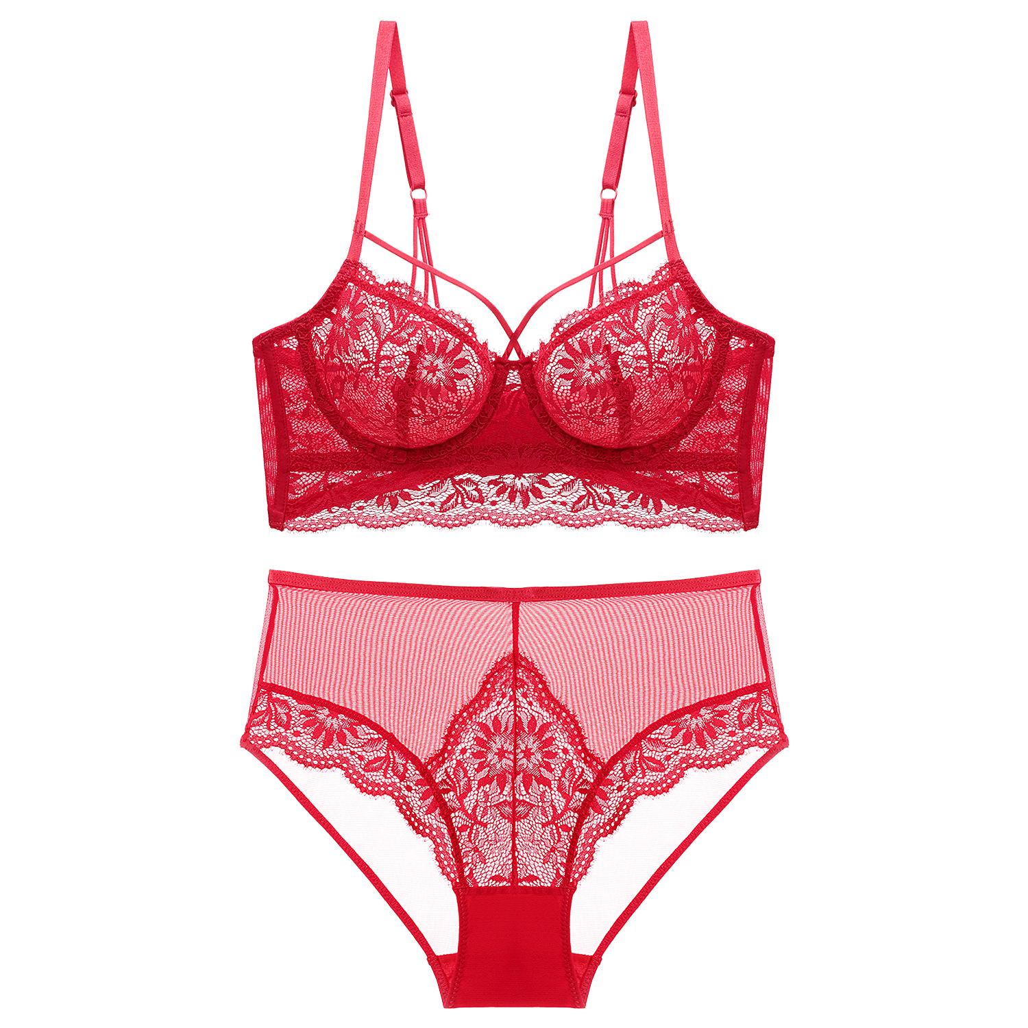 Nuevo conjunto de sujetador francés sexy con bordado de encaje, tirantes cruzados, sujetador ultrafino de pecho grande y ropa interior pequeña.