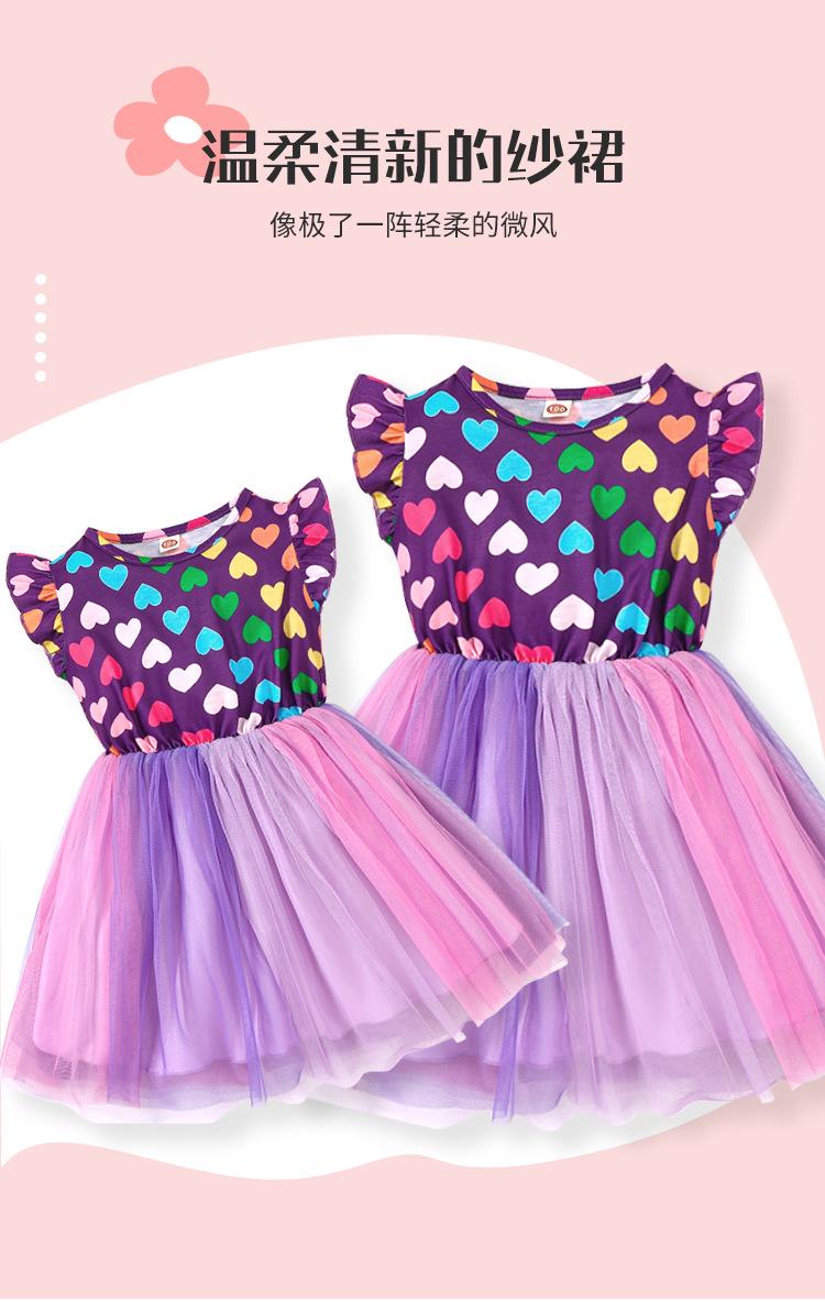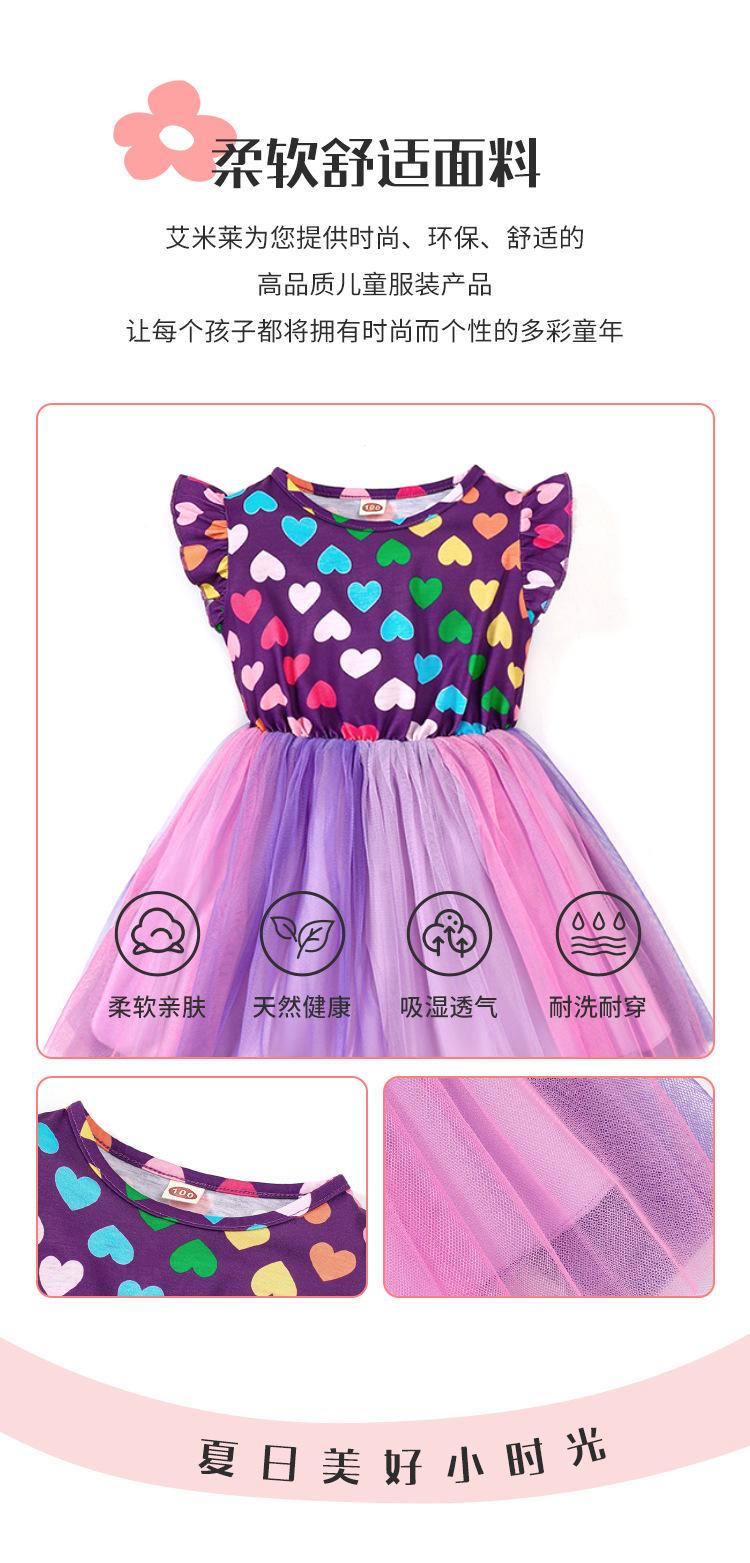 Vestido de verano para niñas transfronterizo, estilo europeo y americano, esponjoso, de princesa, para niñas, con rayas de amor y rendimiento.