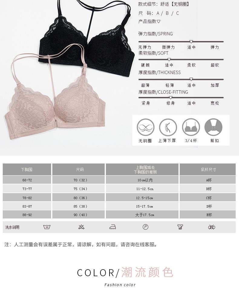 Sostén sin Aro de Acero Hebilla Delantera Sostén para Mujer Borde de Encaje Sostén Ropa Interior Nueva Sexy Sostén Ajustable Espalda Hermosa
