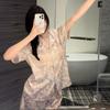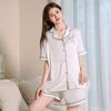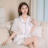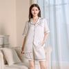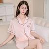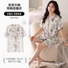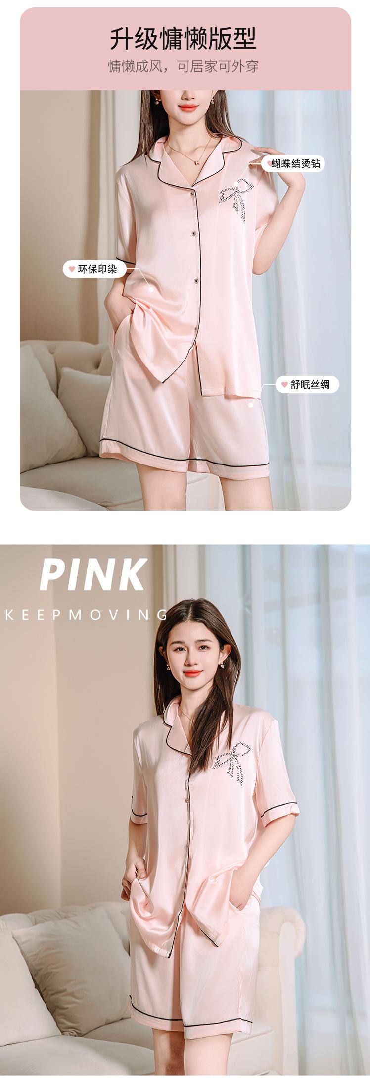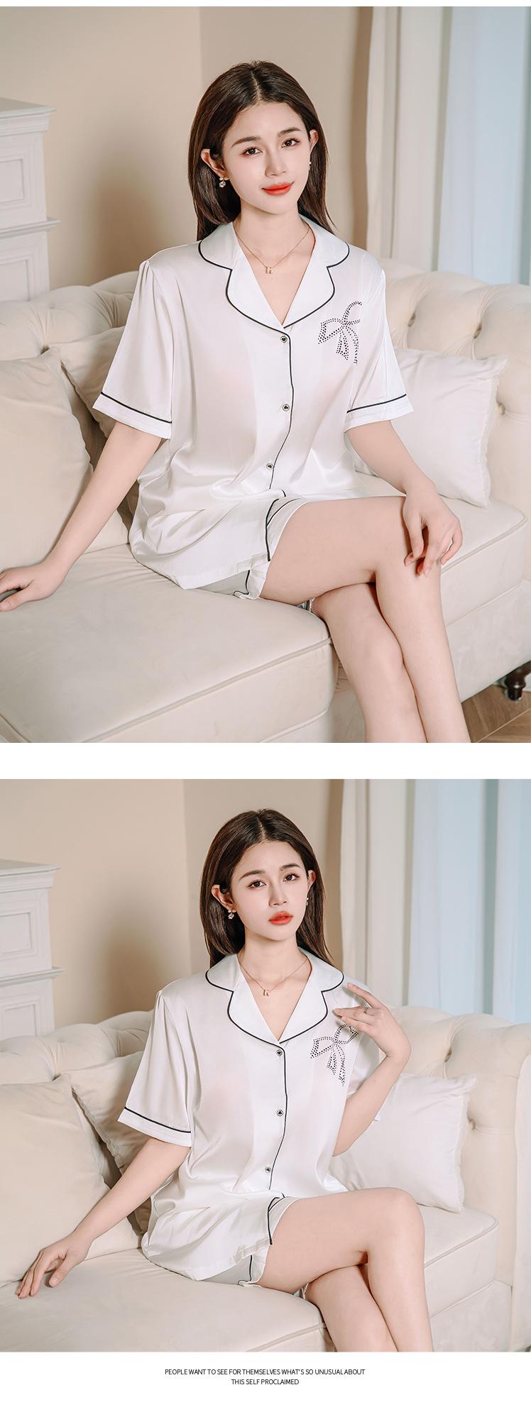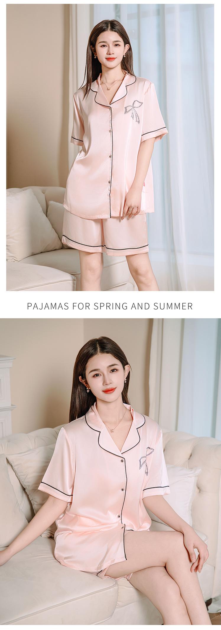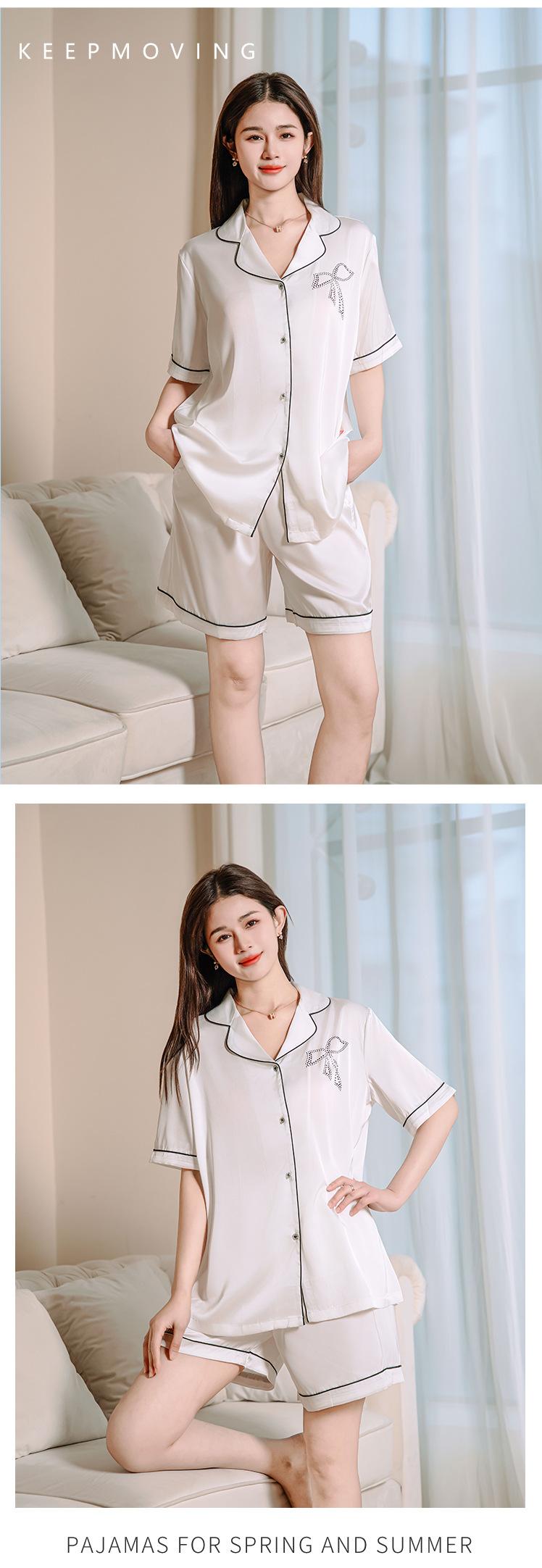 Pijamas de seda de hielo para mujer, primavera y verano 2024, pantalones cortos de manga corta con lazo de diamantes, ropa de abrigo, ropa para el hogar, traje para mujer