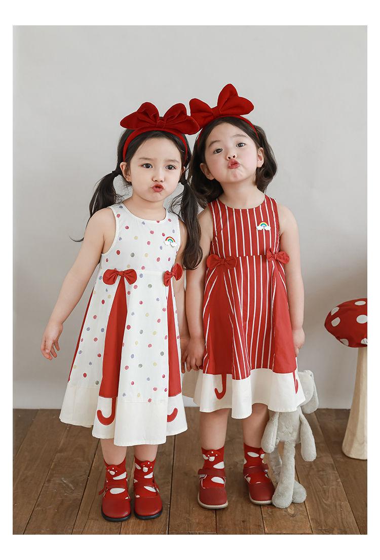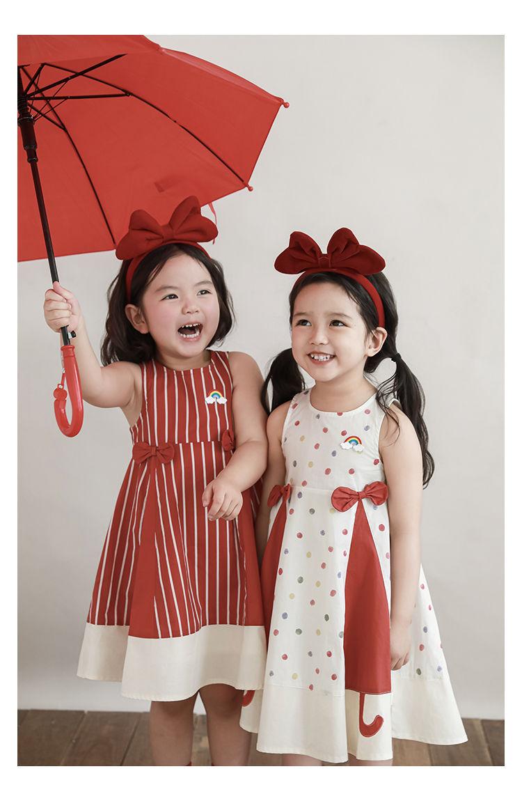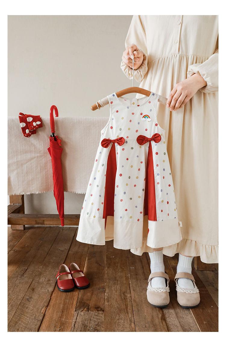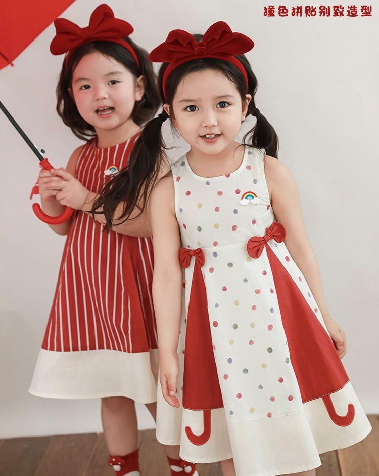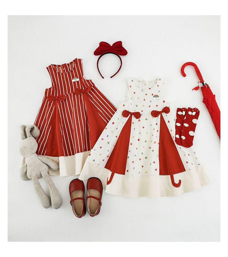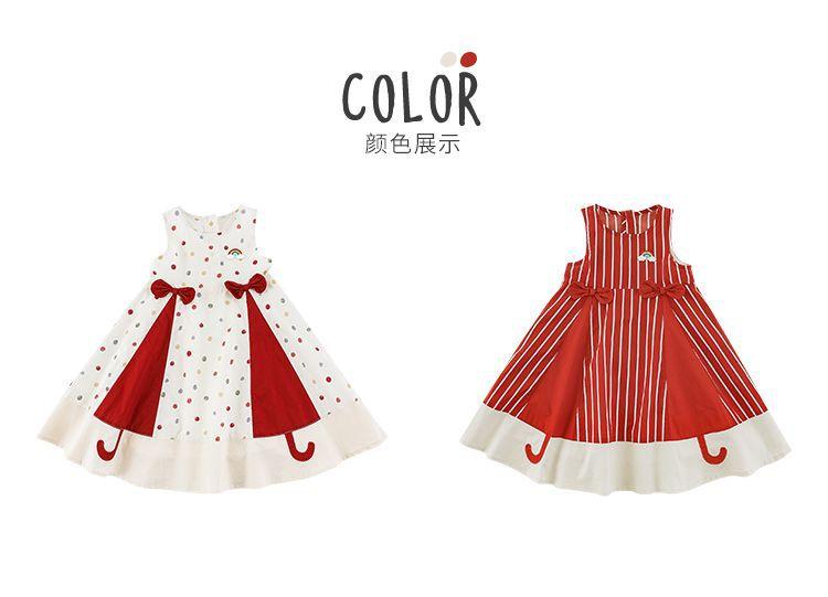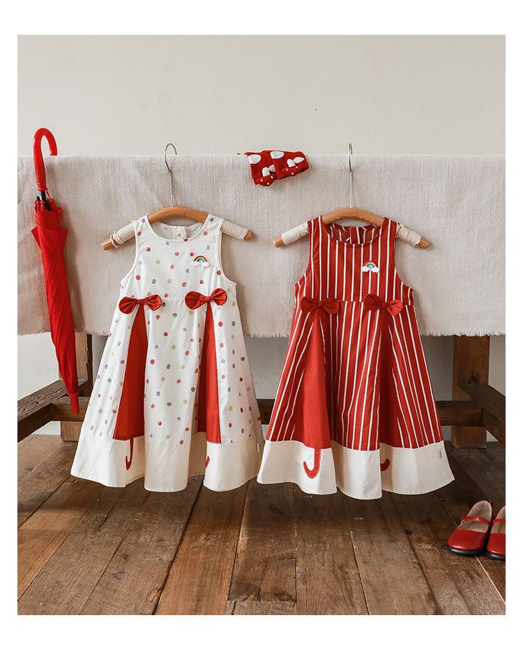 Wurib Vestido de costuras de paraguas pequeño para niña Vestido de verano estilo occidental Lindo Vestido de contraste con lazo para niña dulce