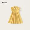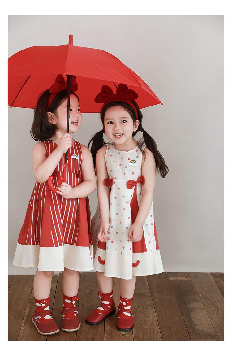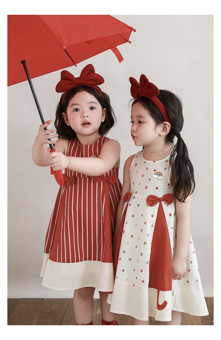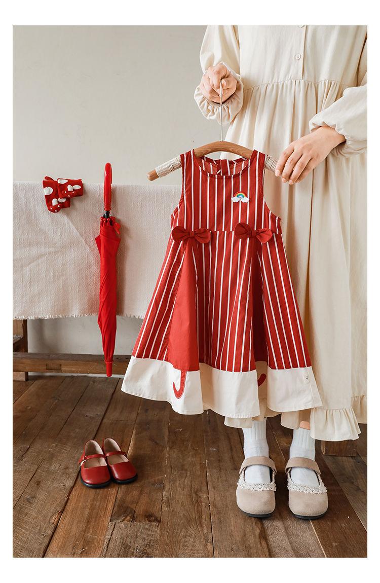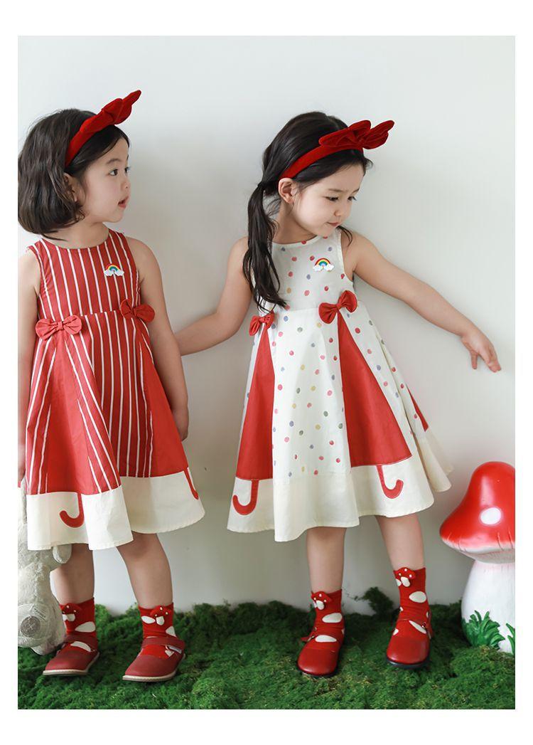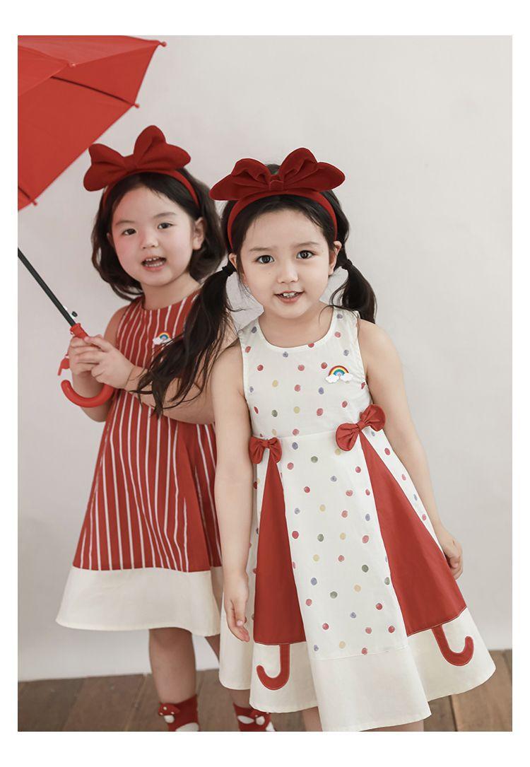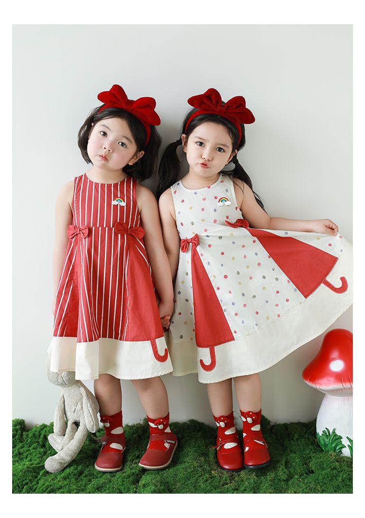Wurib Vestido de costuras de paraguas pequeño para niña Vestido de verano estilo occidental Lindo Vestido de contraste con lazo para niña dulce