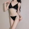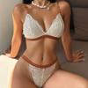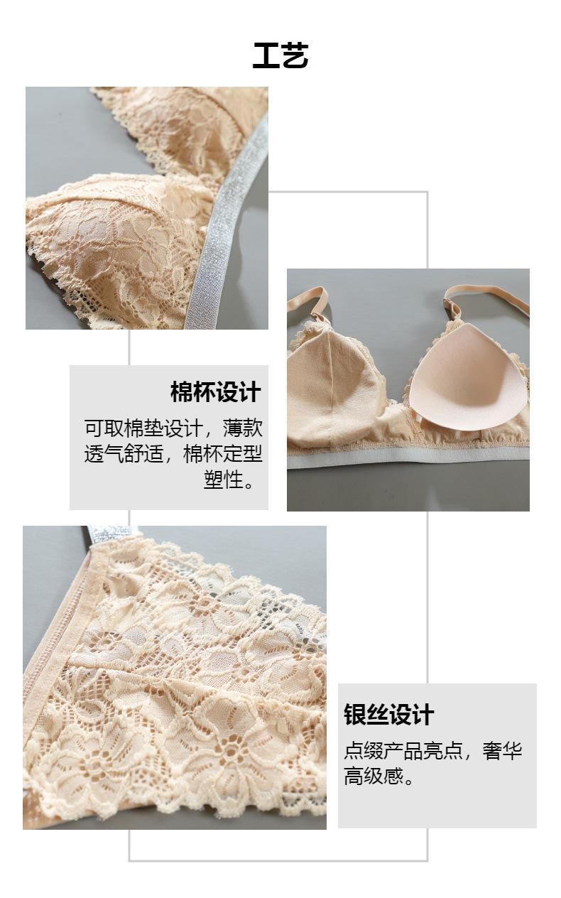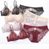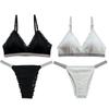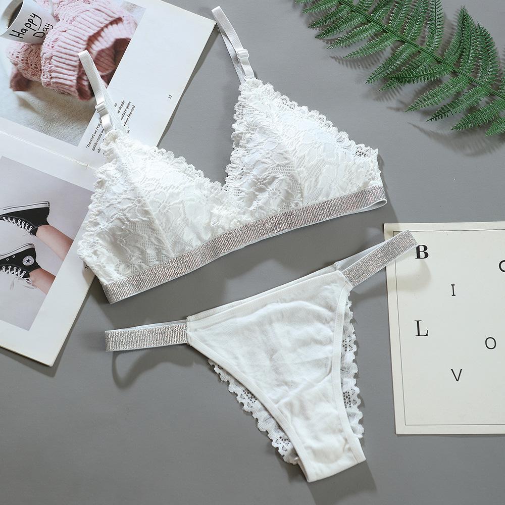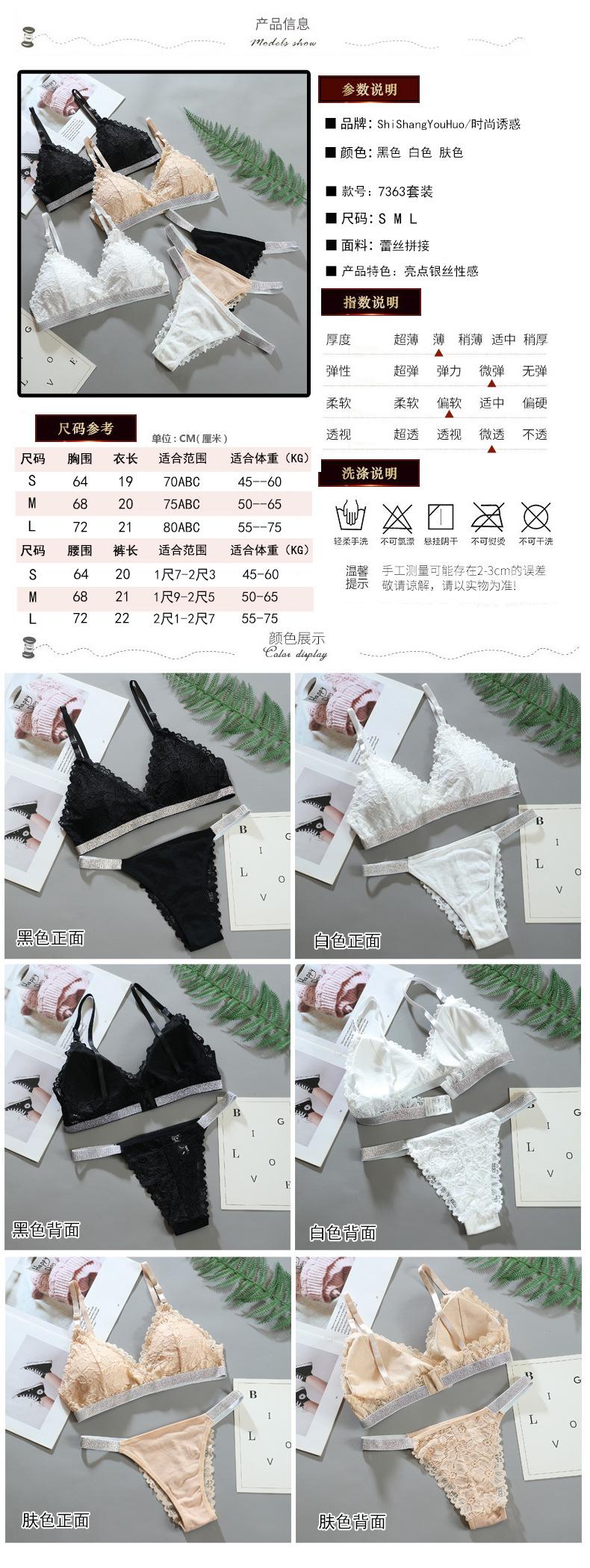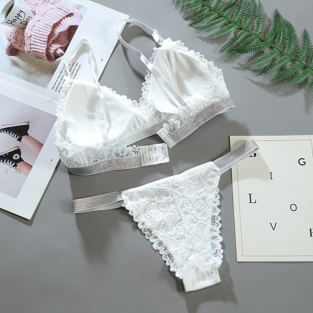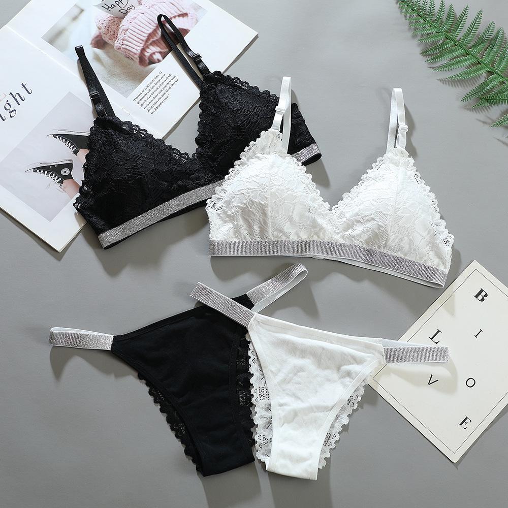 Ropa Interior Estilo Francés Cinta Plateada Sexy Encaje Conjunto de Brasier para Mujer Niñas Copa Triangular Ligera 7363