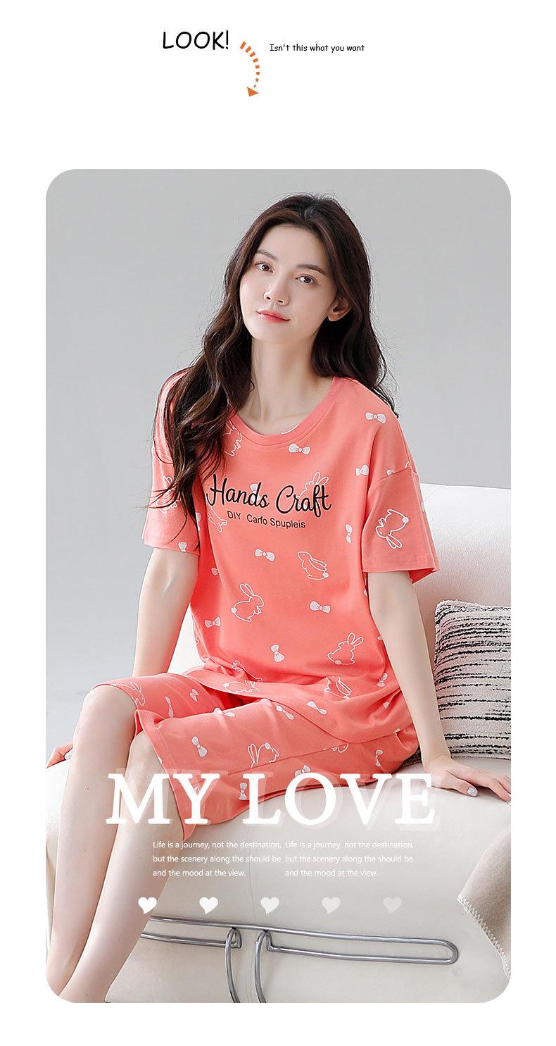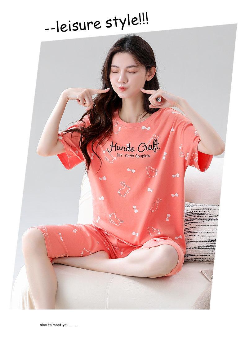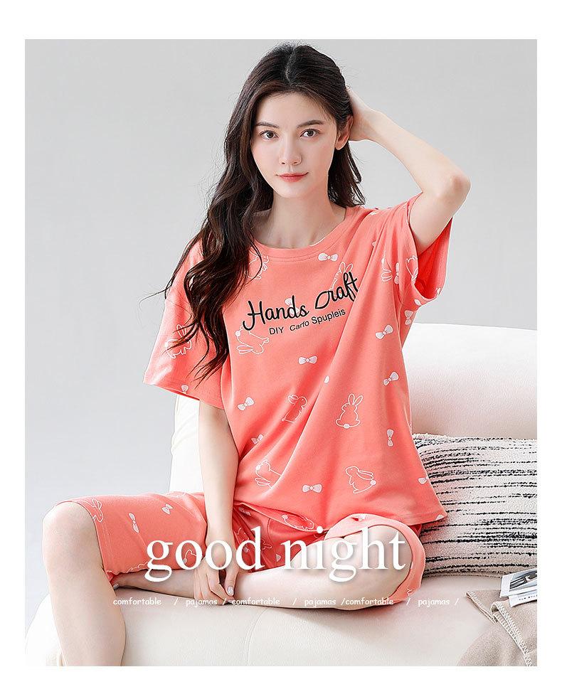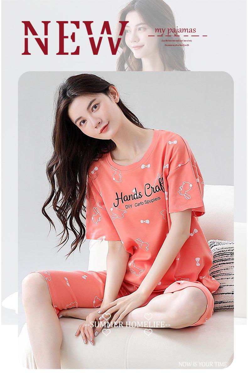 Verano nuevo pijama de algodón puro para mujer traje de pantalones cortos de manga corta estampado con letras casual para mujer para estar en casa al aire libre