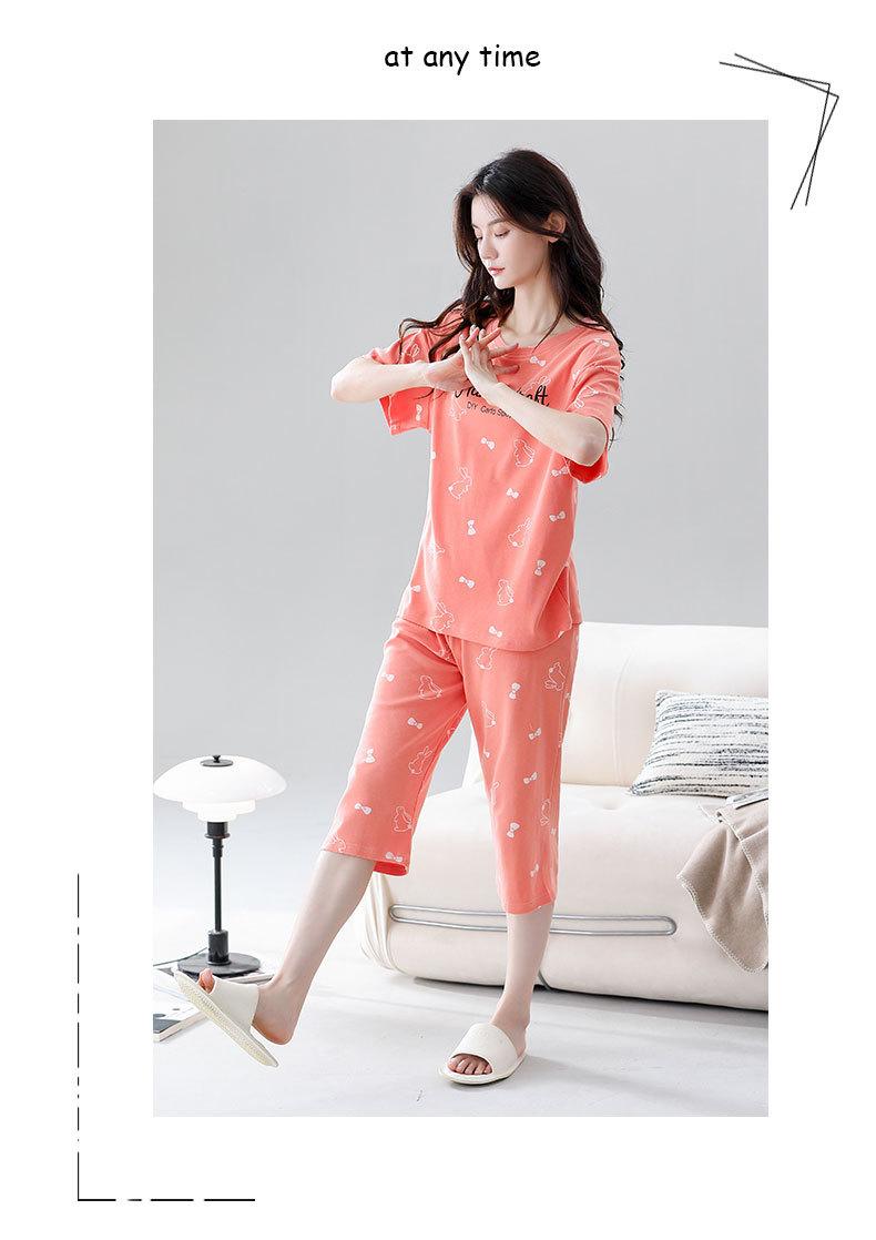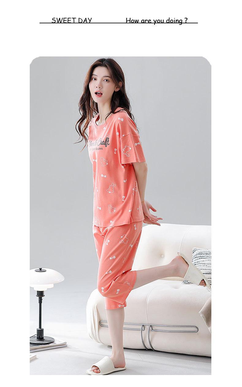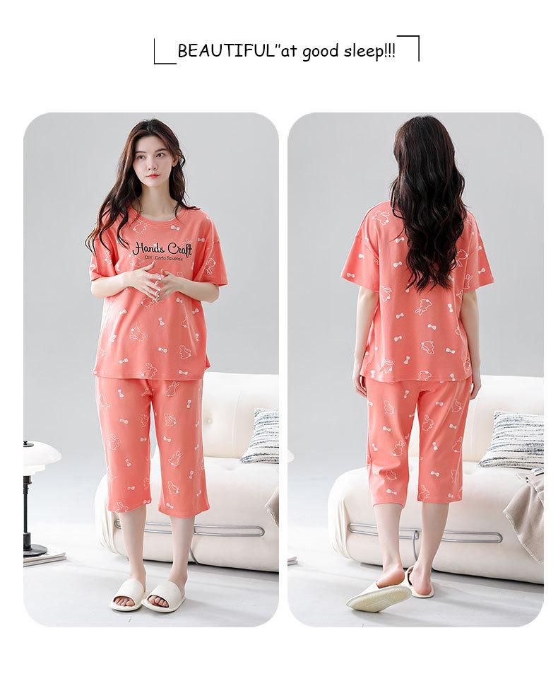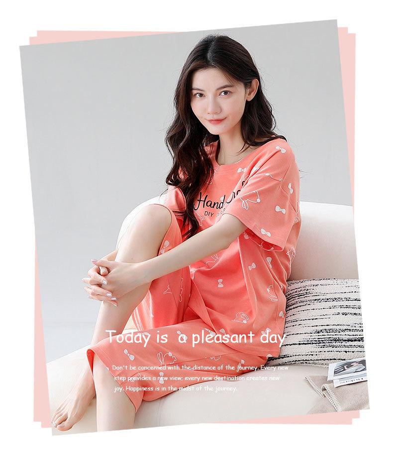 Verano nuevo pijama de algodón puro para mujer traje de pantalones cortos de manga corta estampado con letras casual para mujer para estar en casa al aire libre