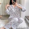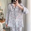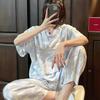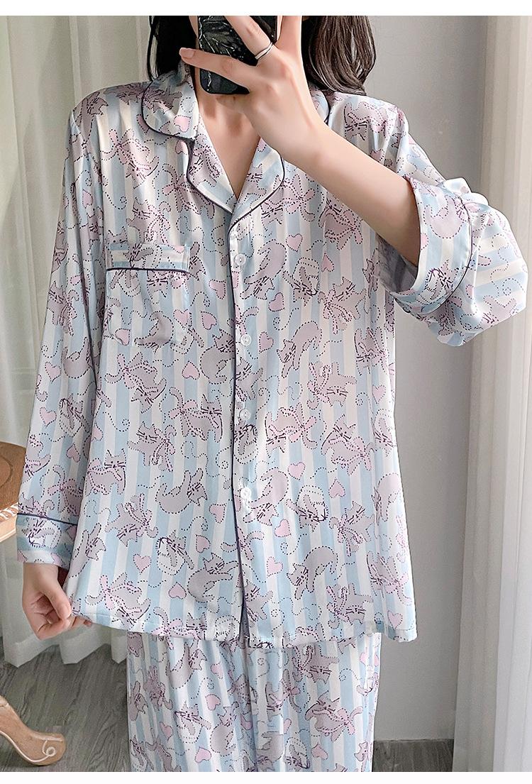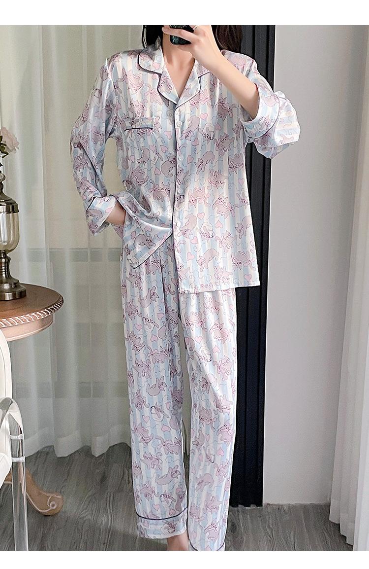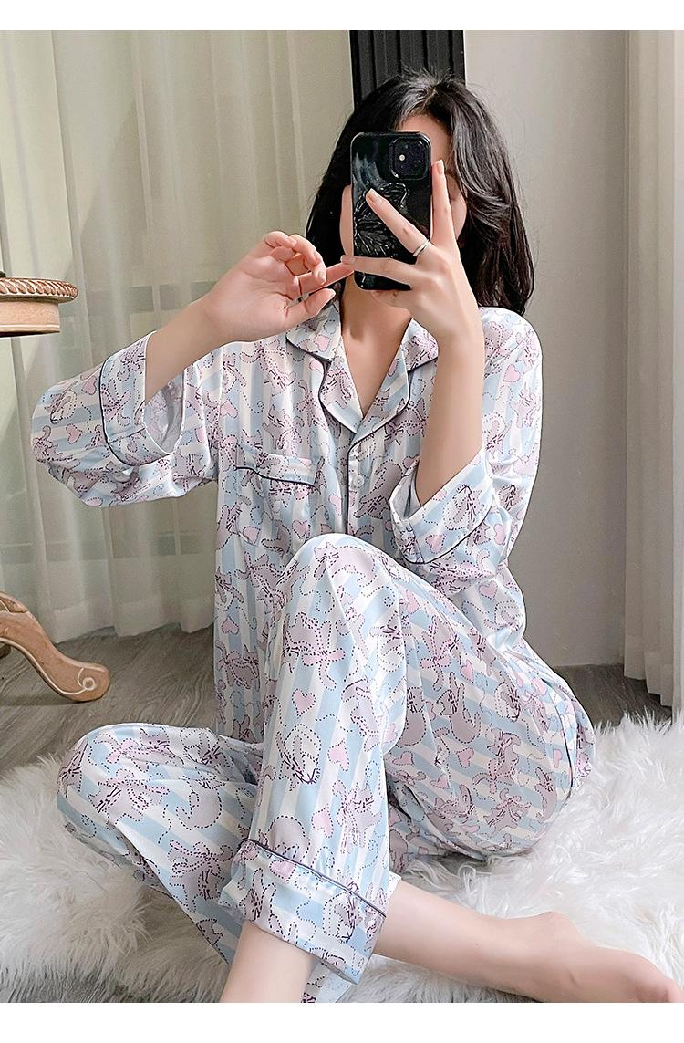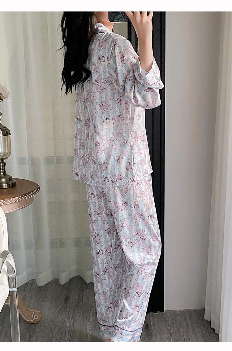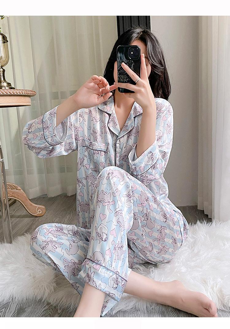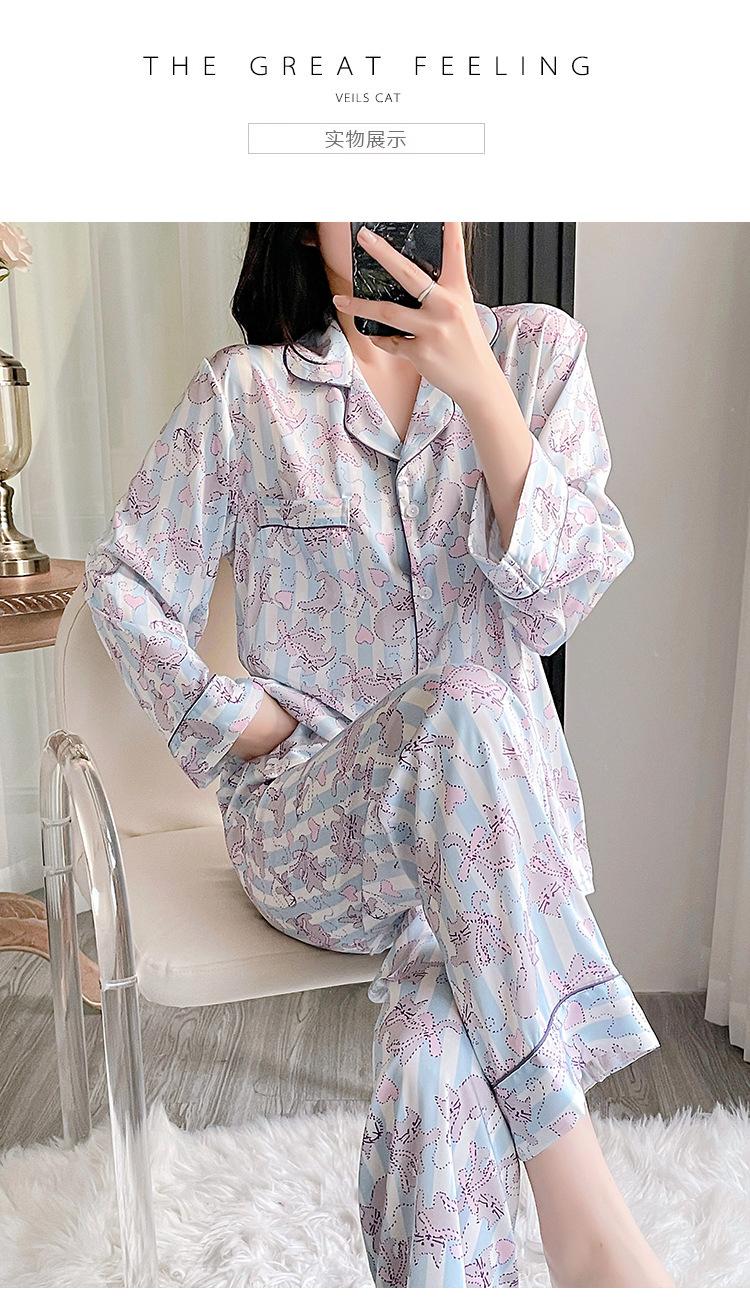 Pijama estampado de verano para mujer, pantalones de manga larga, sensación fresca, traje de seda de hielo para niña, ropa de casa de primavera y verano, se puede usar al aire libre