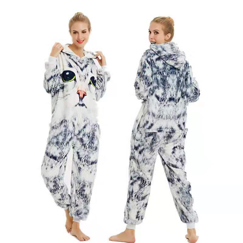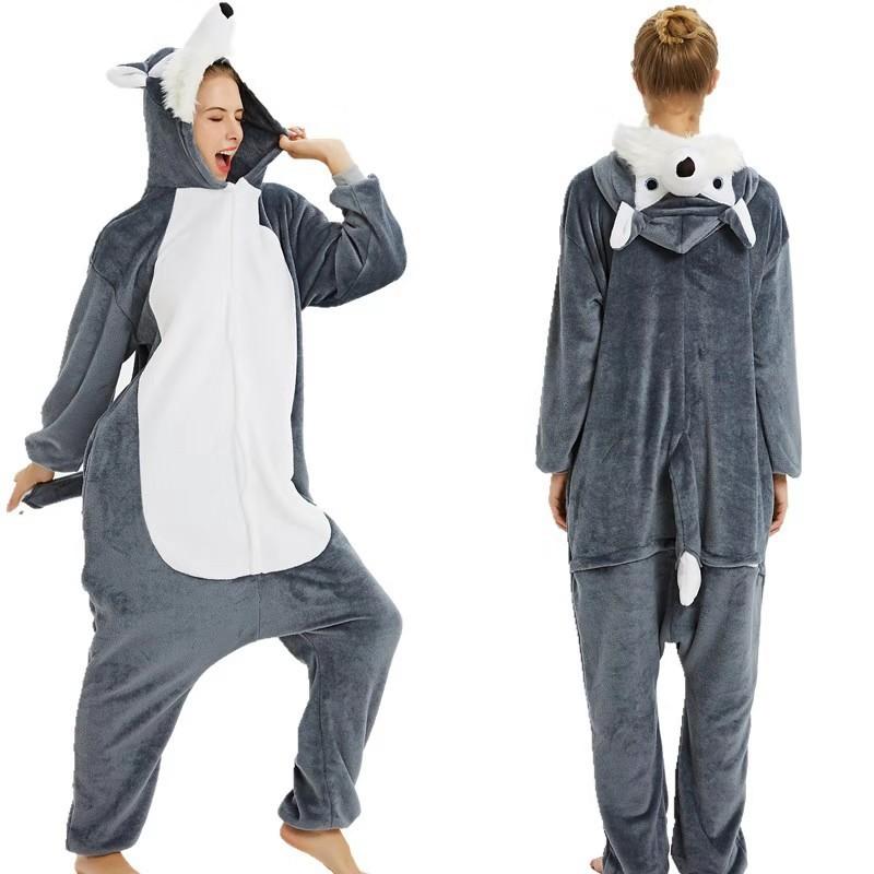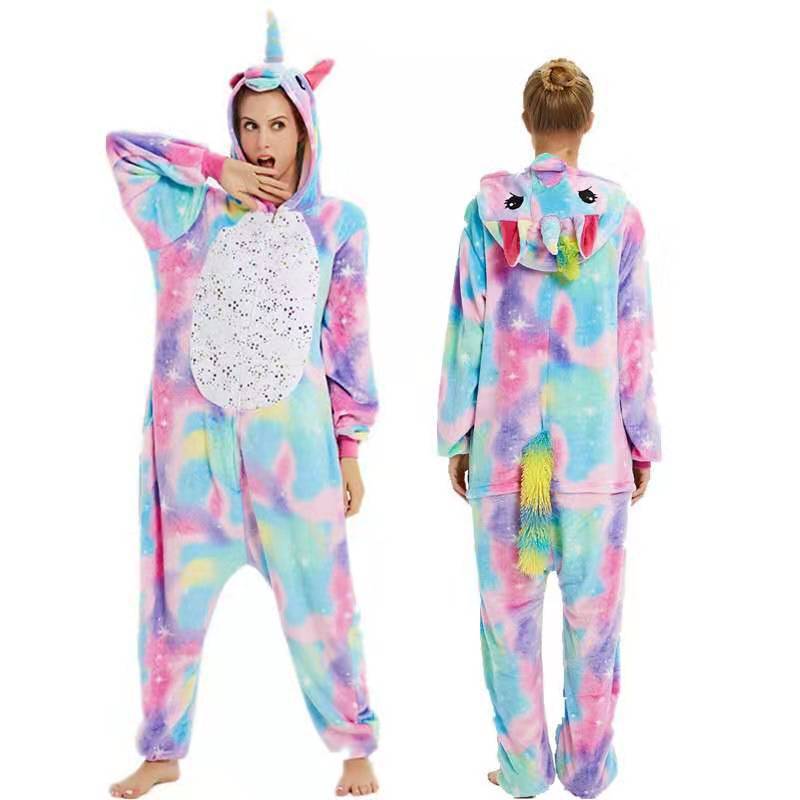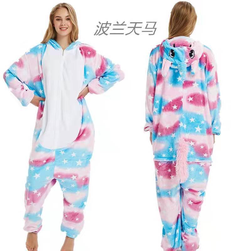 Pijama de Franela de Dibujos Animados de Animales de Una Pieza Husky Pegaso Conejo Triceratops Ropa para el Hogar Combinación para Parejas