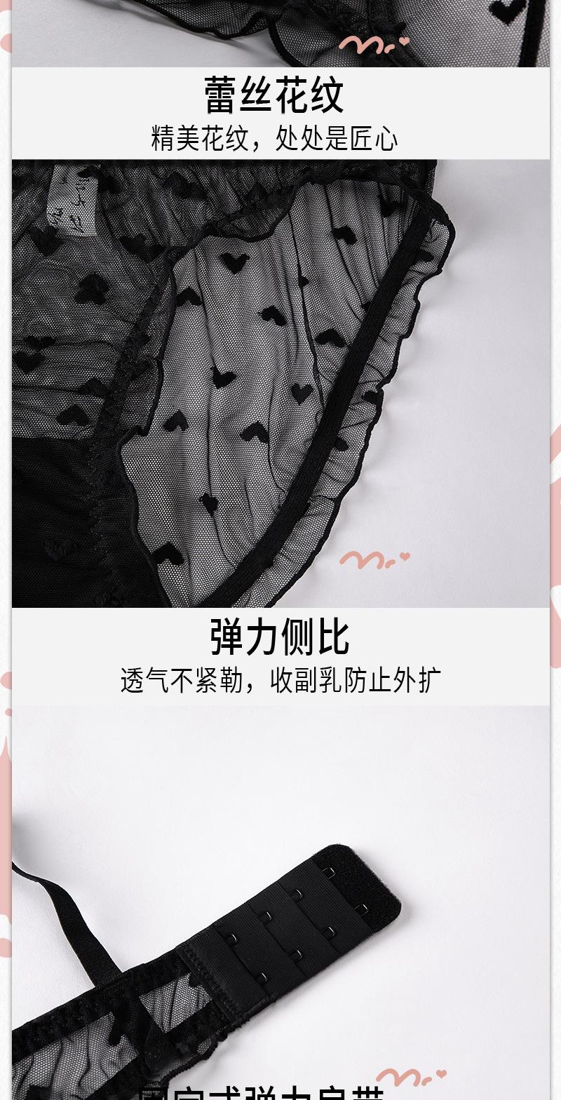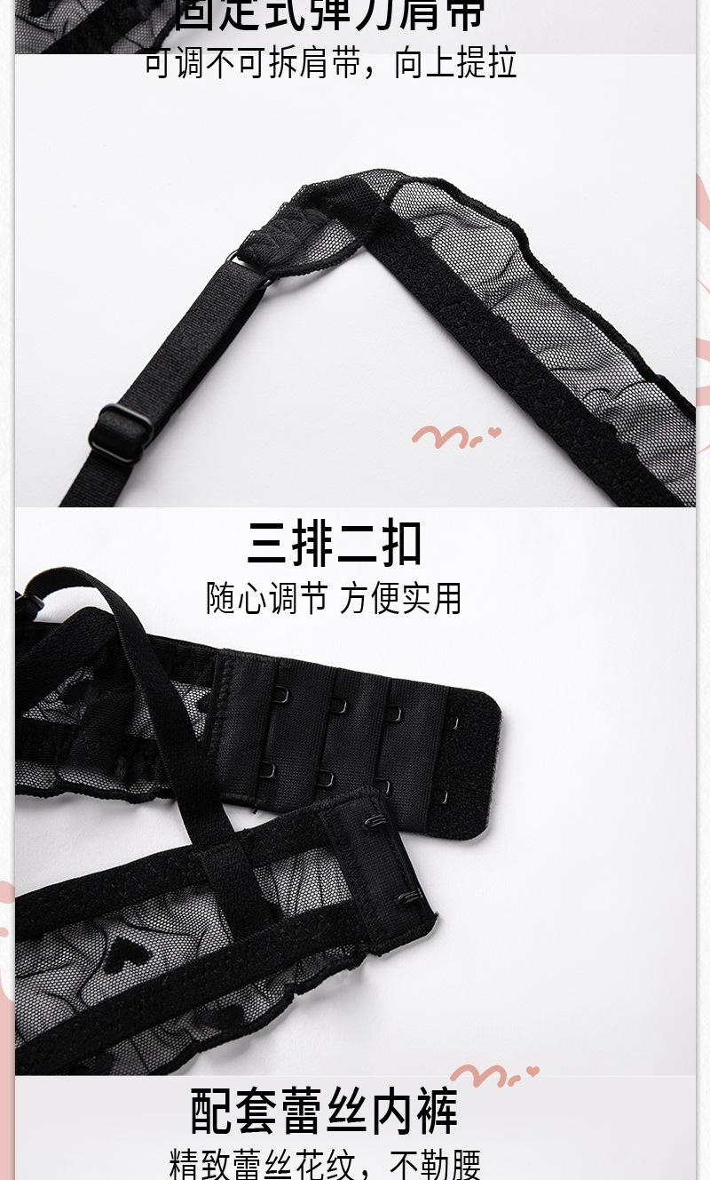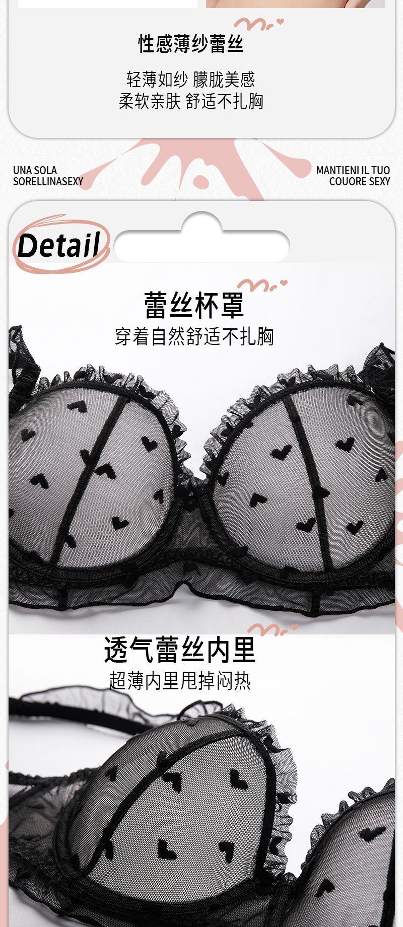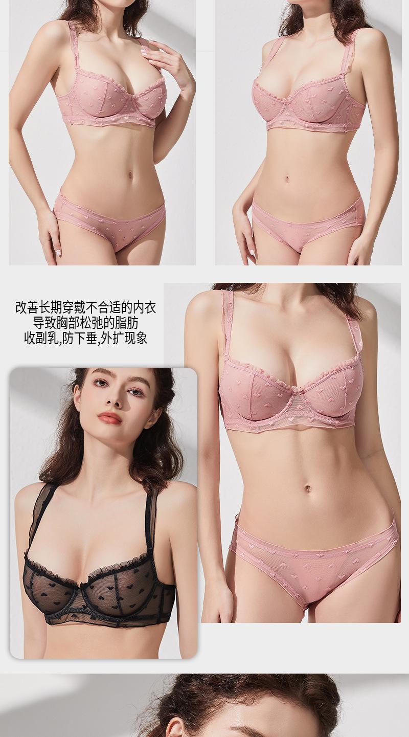 Conjunto de ropa interior ultrafina de verano con sujetador de encaje bordado sexy, deseo puro, pechos grandes que muestran un pequeño sujetador antiflacidez