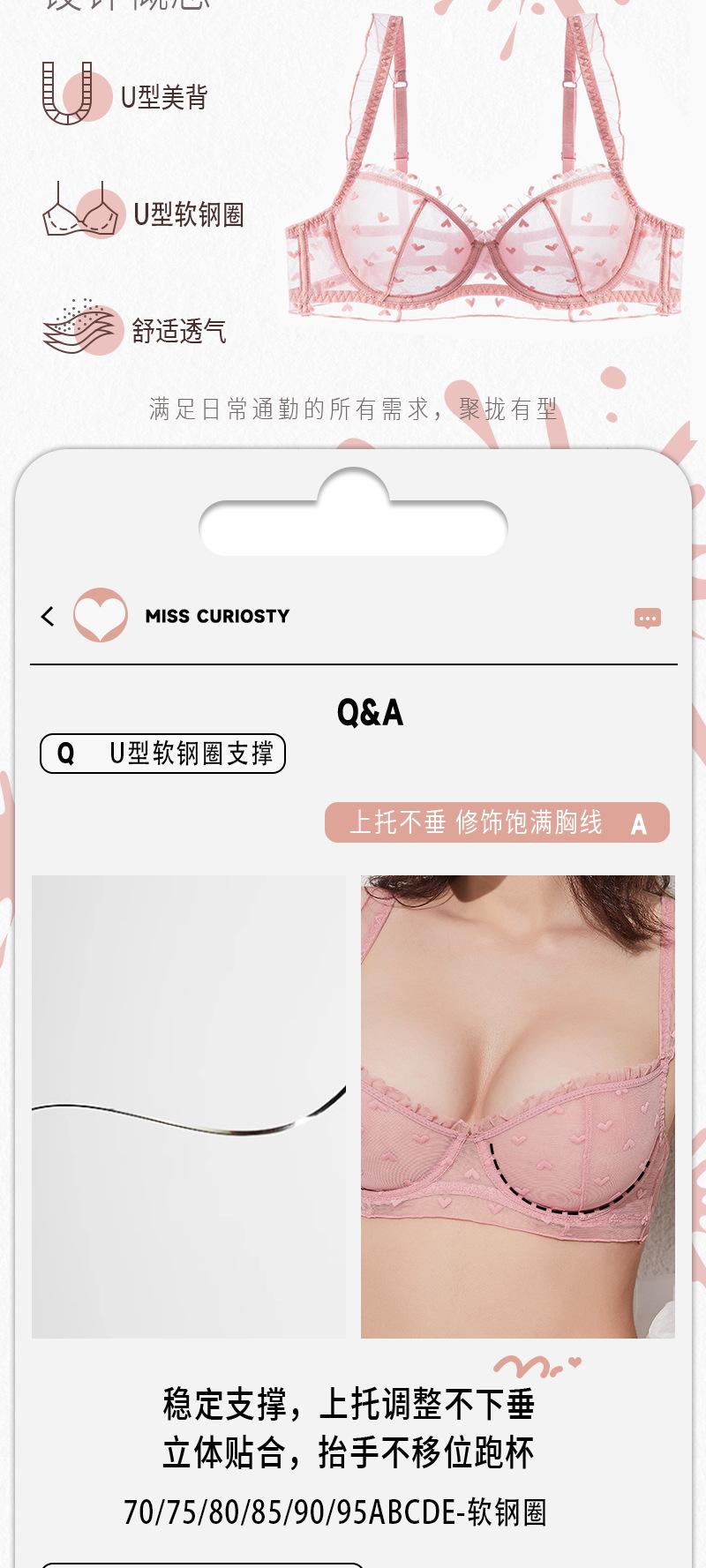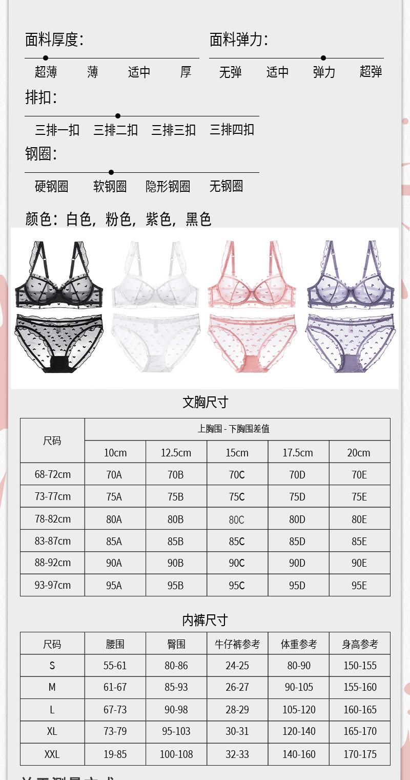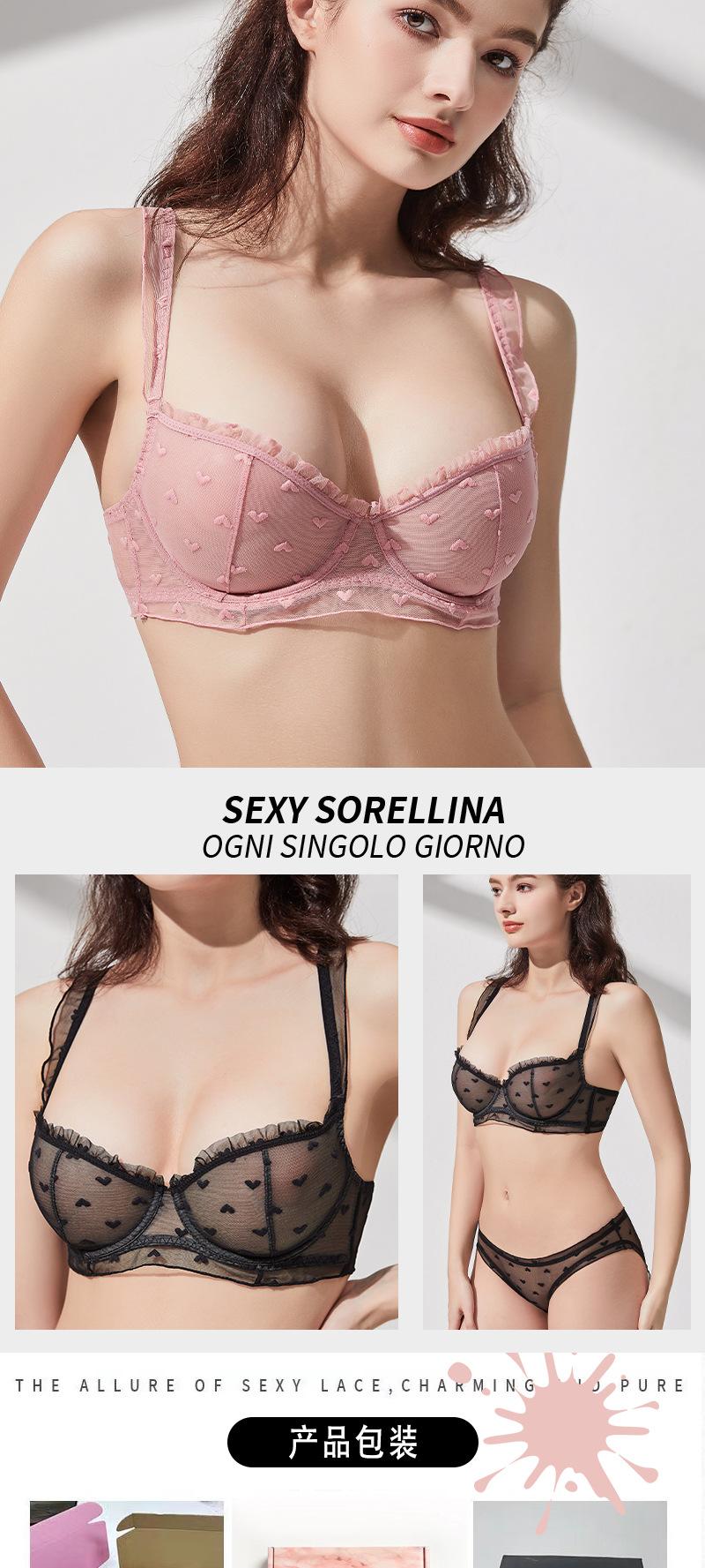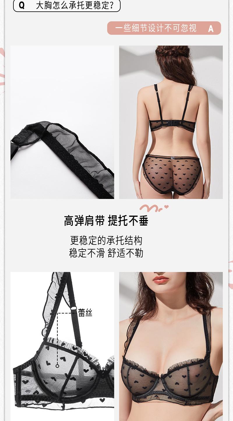Conjunto de ropa interior de encaje sexy, ropa interior fina de pecho grande y pequeña para mujer, sujetador transpirable Pure Desire, conjunto de sujetador ultrafino