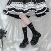 Lolita de estilo japonés Lazo Pantorrilla lolita Pilas Calcetines de algodón de media caña de color sólido para mujer que combinan con todo Delgados