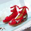Zapatos de tacón alto con punta simple, bordados con cuentas y suela de tendón de res, zapatos de mujer bordados, zapatos de tela bordados, zapatos casuales de baile