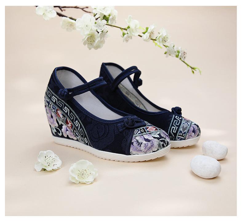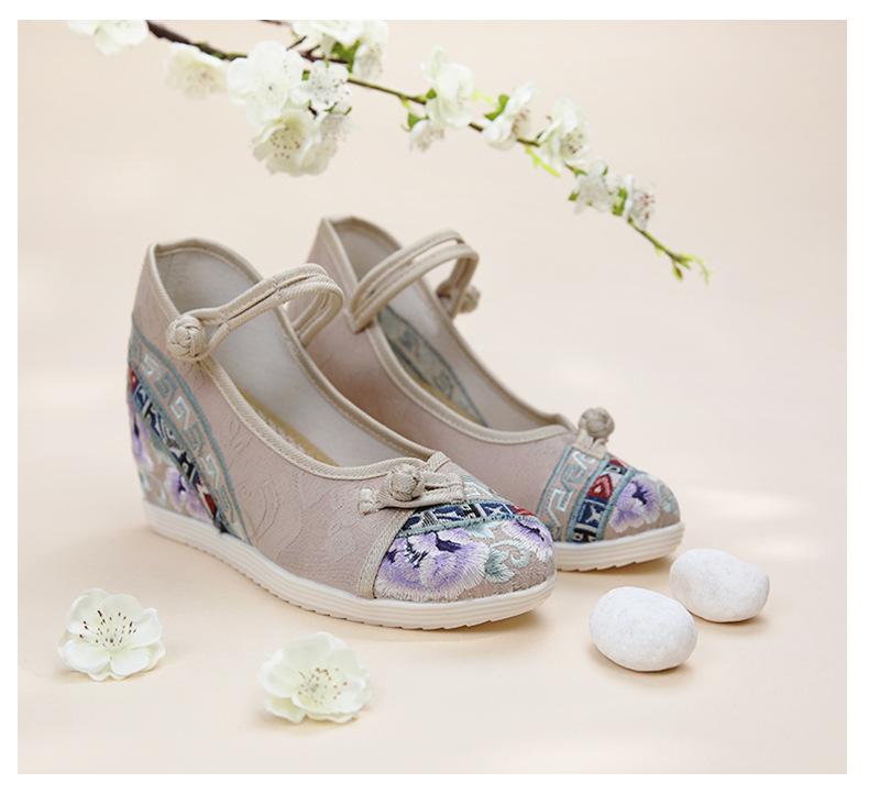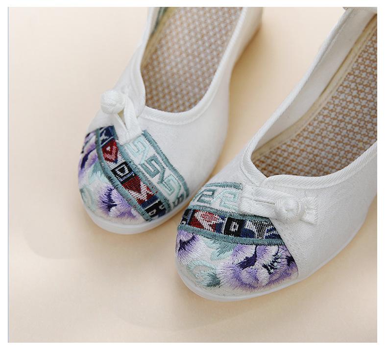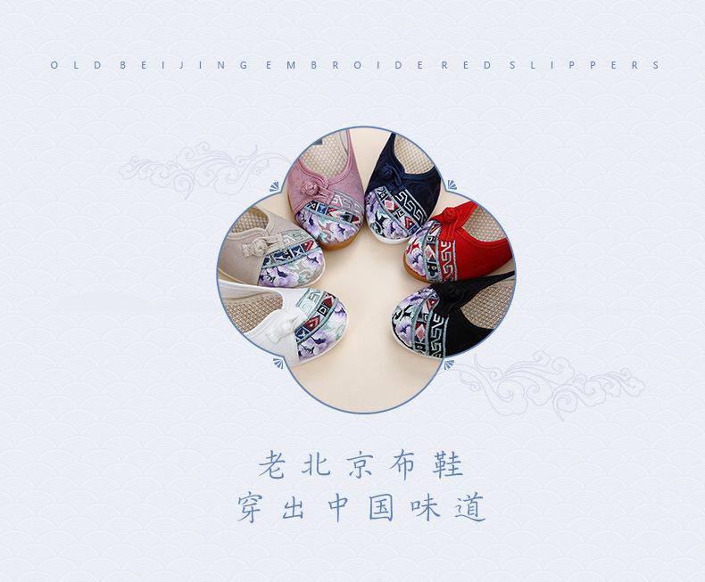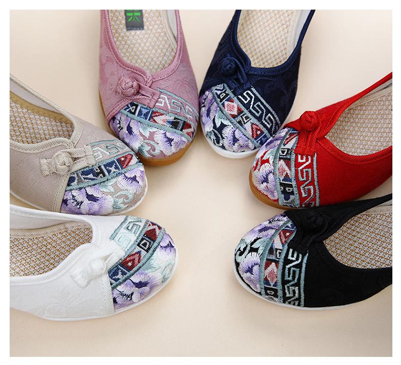 Zapatos de Tela de Pekín Antiguos Primavera y Otoño Nueva Tendencia Nacional Retro Cómodos Estilo Étnico Boca Baja Zapatos Bordados Zapatos de la Dinastía Han Zapatos para Mujer
