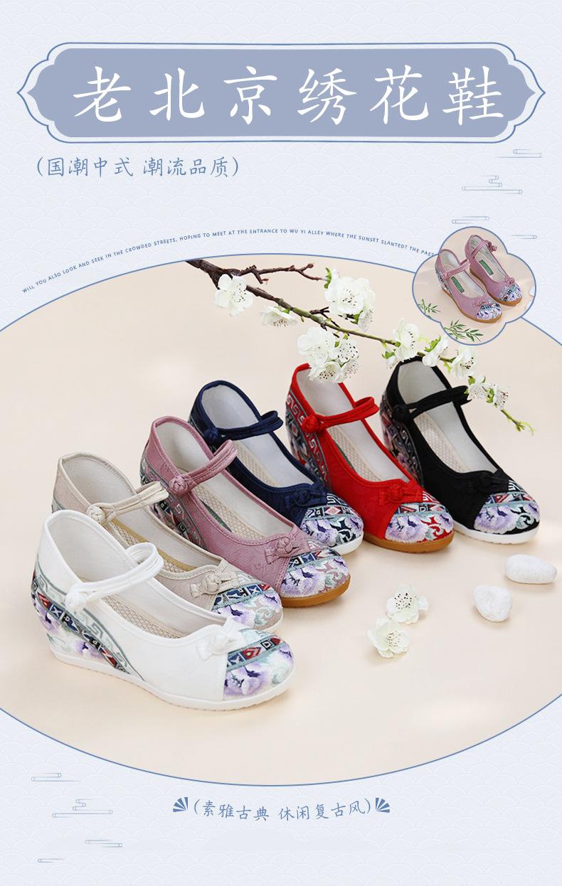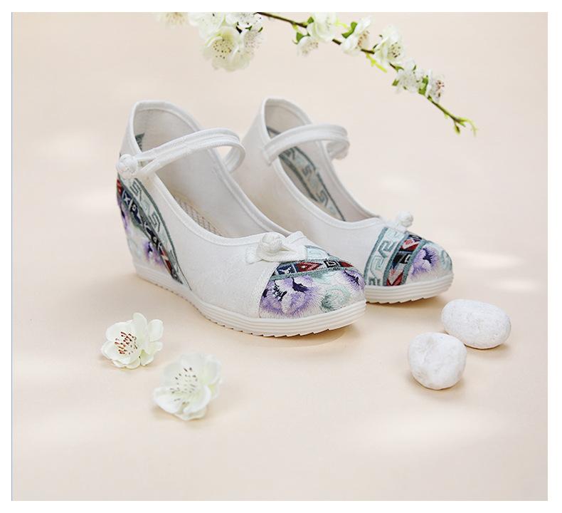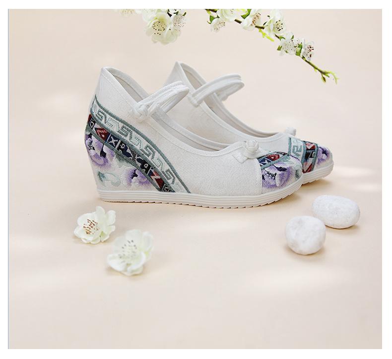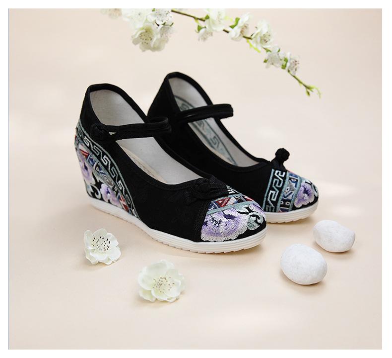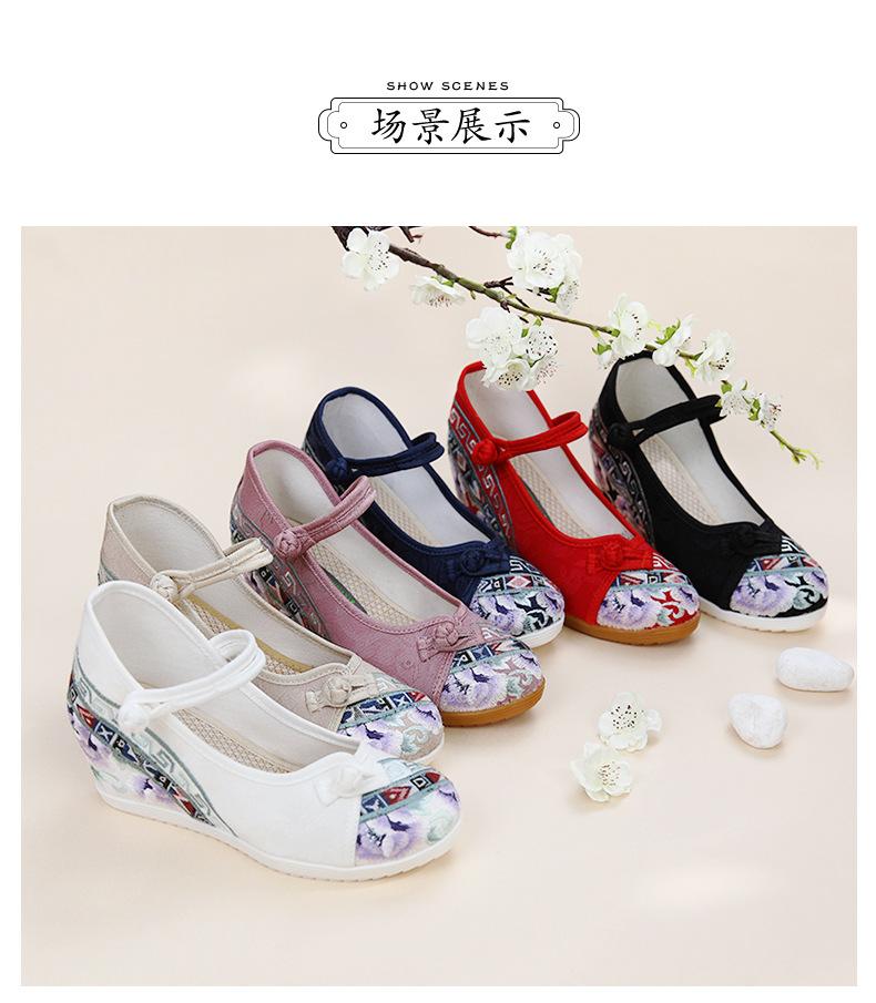 Zapatos de Tela de Pekín Antiguos Primavera y Otoño Nueva Tendencia Nacional Retro Cómodos Estilo Étnico Boca Baja Zapatos Bordados Zapatos de la Dinastía Han Zapatos para Mujer