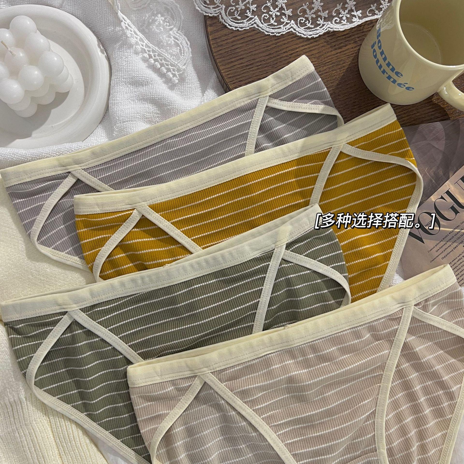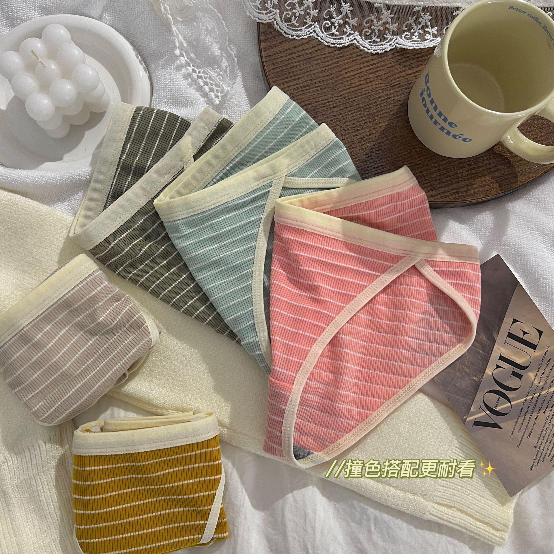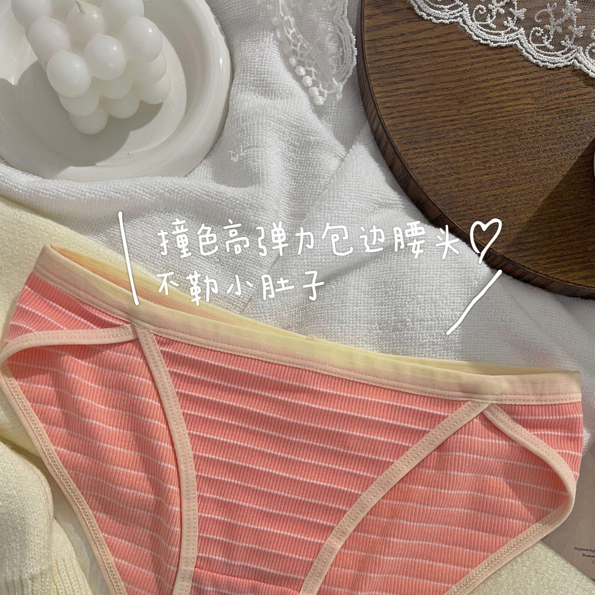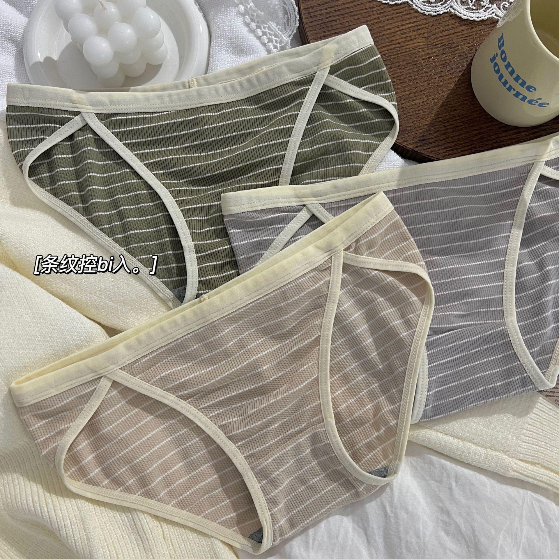 Ropa interior de niña a rayas de color caramelo, bragas antibacterianas de cintura baja con abertura alta y puro deseo para damas