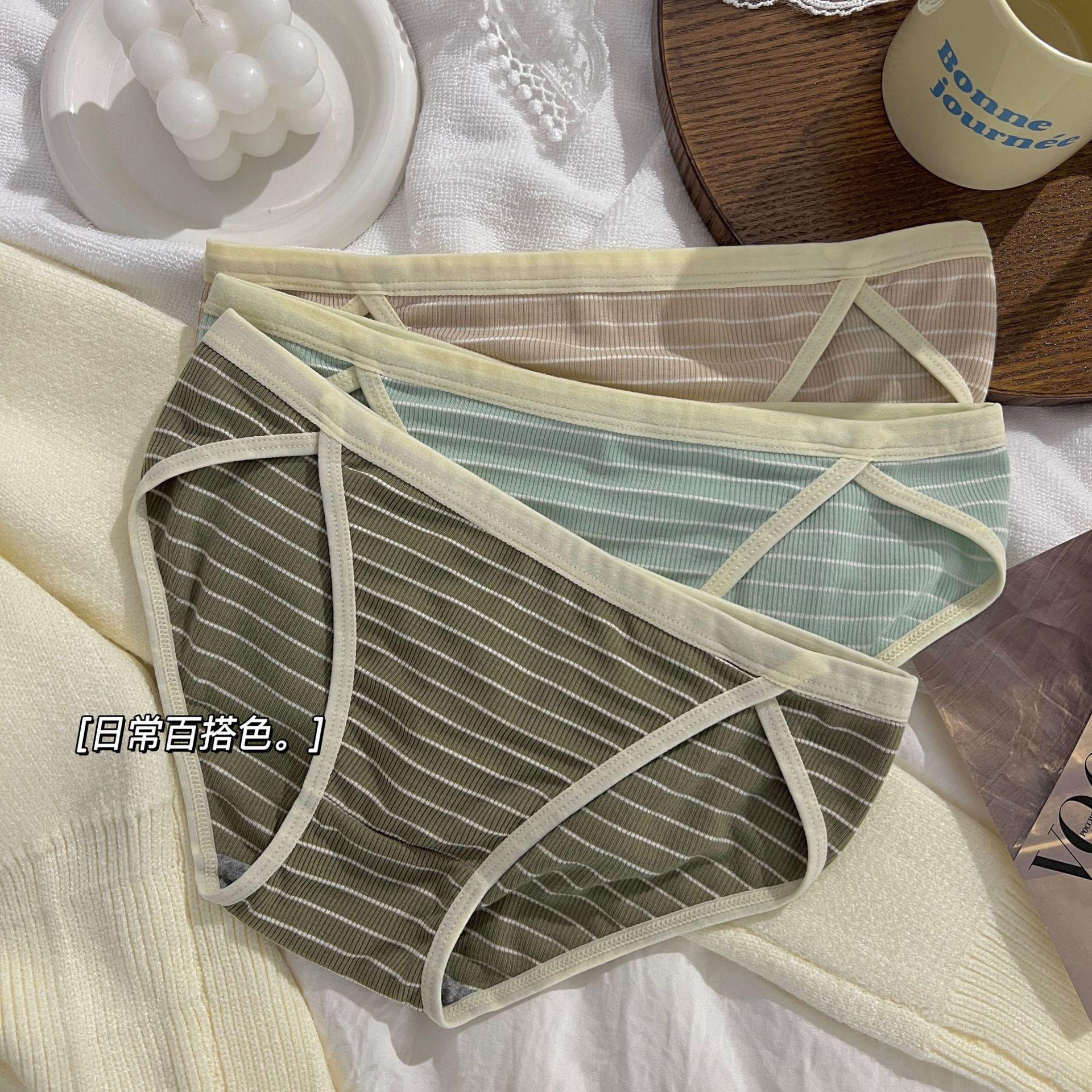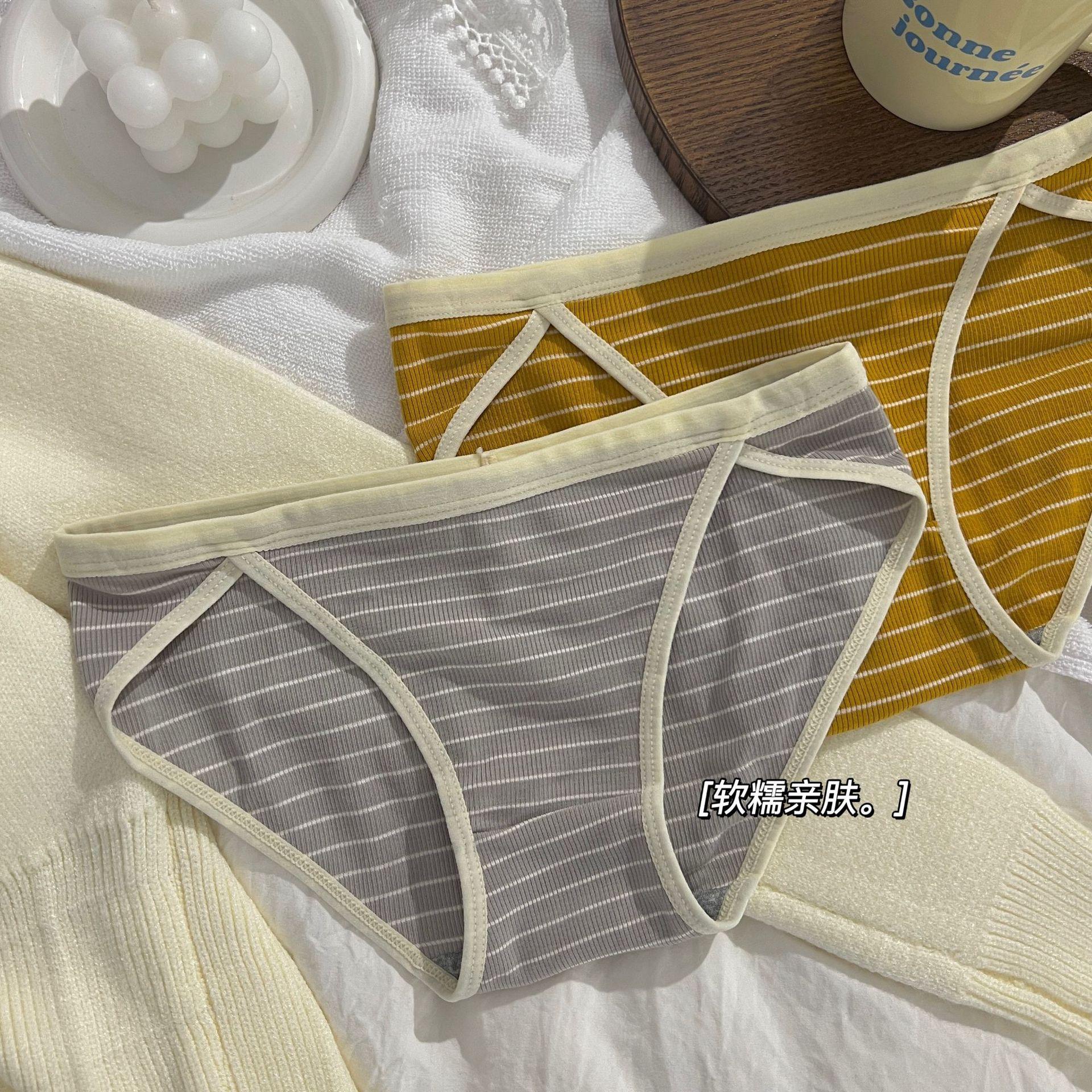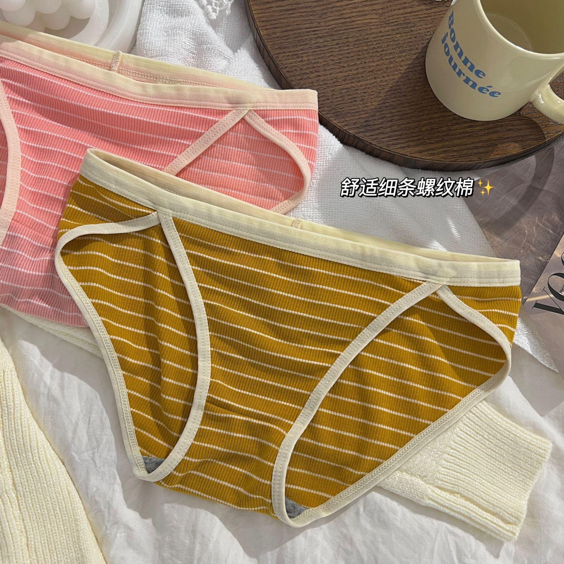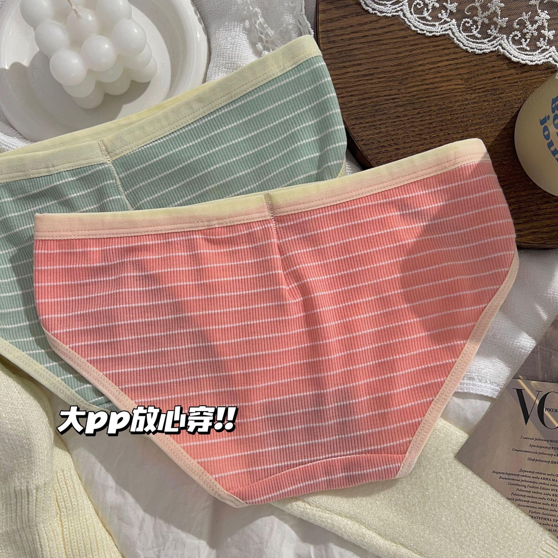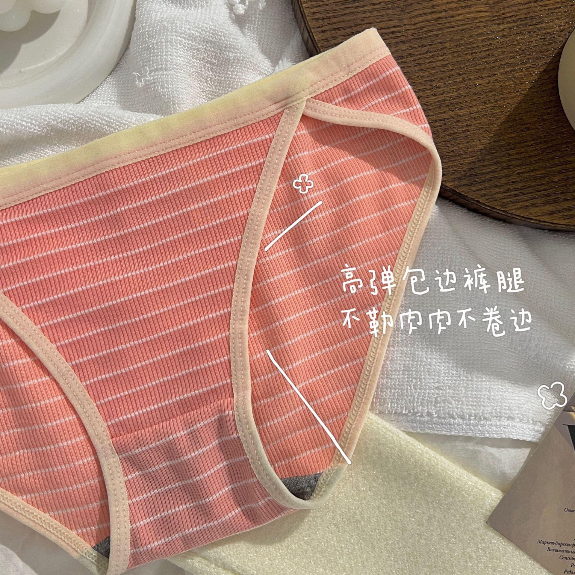 Ropa interior de niña a rayas de color caramelo, bragas antibacterianas de cintura baja con abertura alta y puro deseo para damas