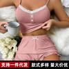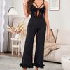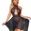 Nuevo camisón sexy de cuello popular transfronterizo europeo y americano, de encaje y malla con costuras, traje de pijama transparente para mujer