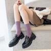 Calcetines de Primavera y Otoño para mujer de color sólido con rombos, calcetines de largo medio hasta la pantorrilla, estilo preppy retro Morandi que combinan con todo, calcetines de montón ins