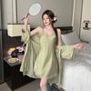Pijama sexy de verano para mujer, camisón con almohadilla en el pecho, estampado, elegante de verano, falda con tirantes finos, cuidado de la máquina, cuello en V, ropa de casa