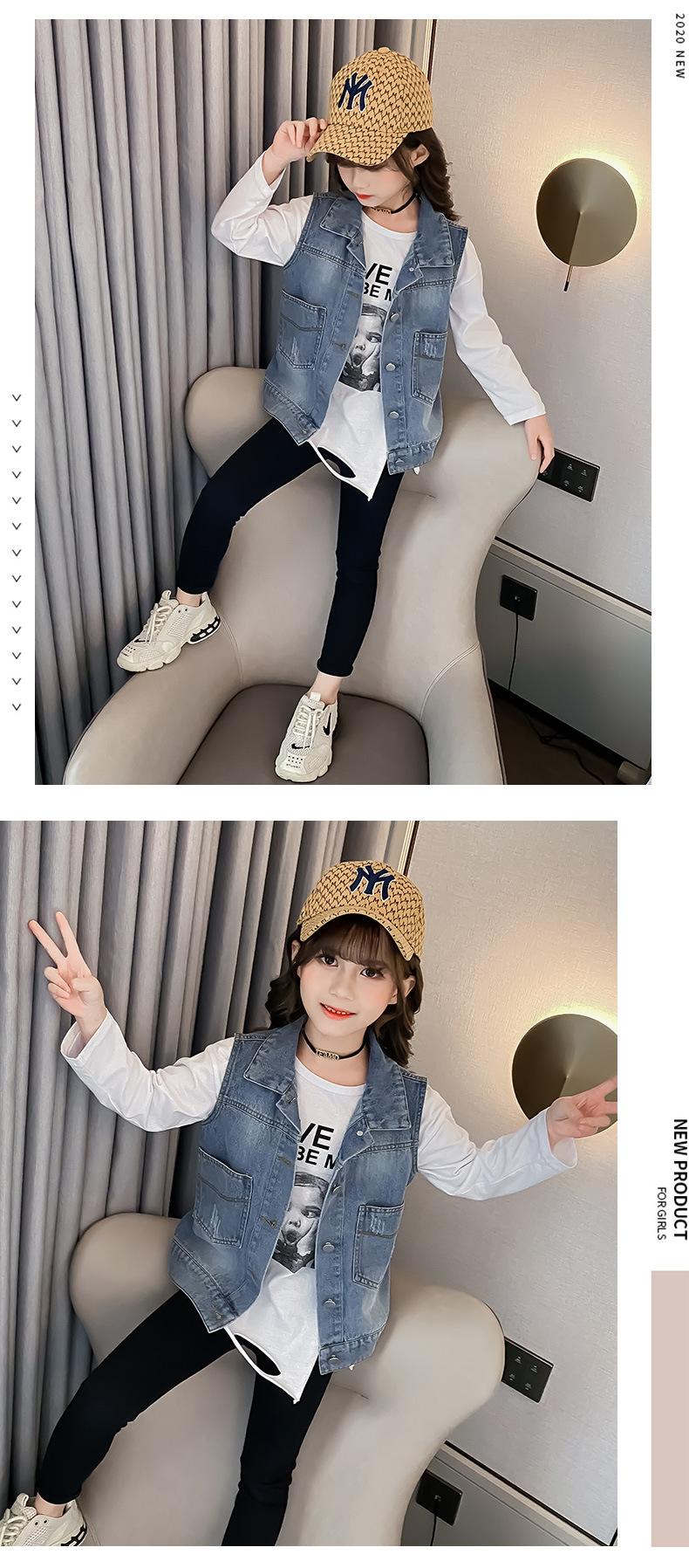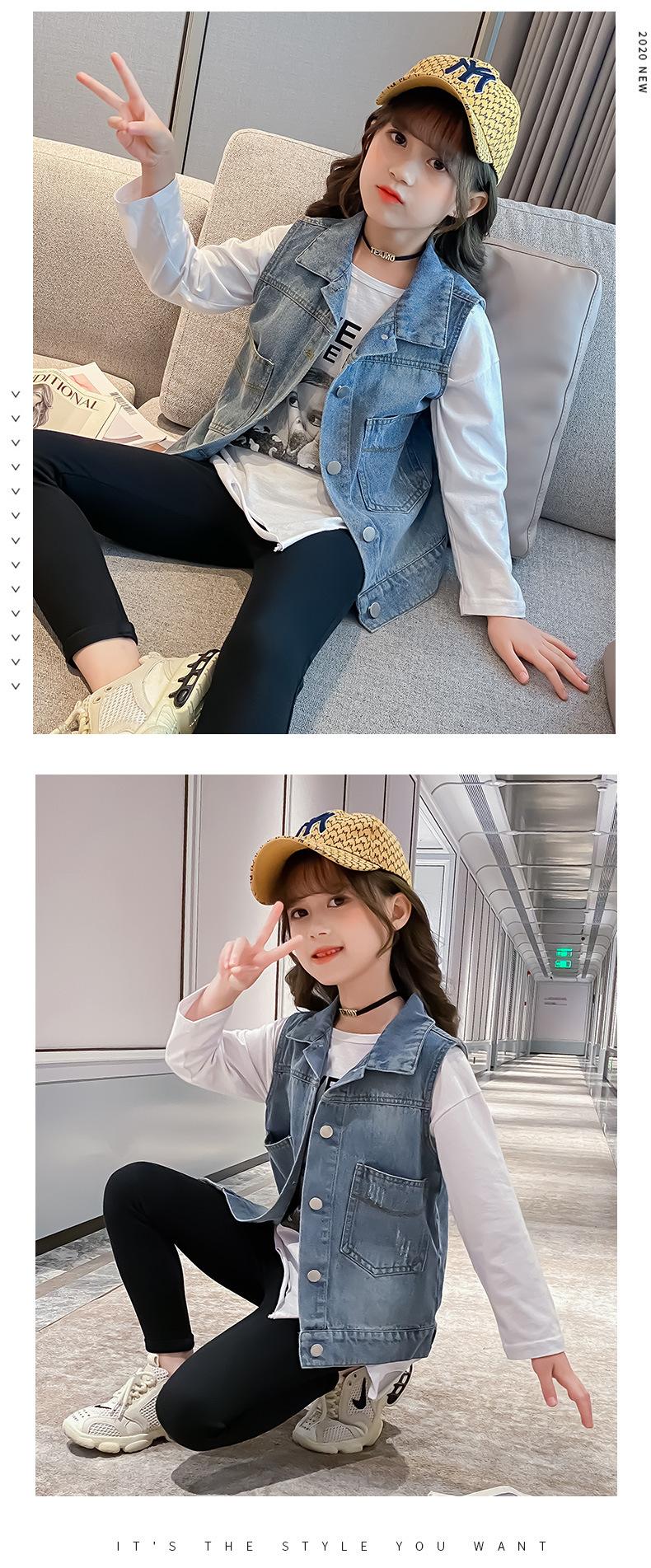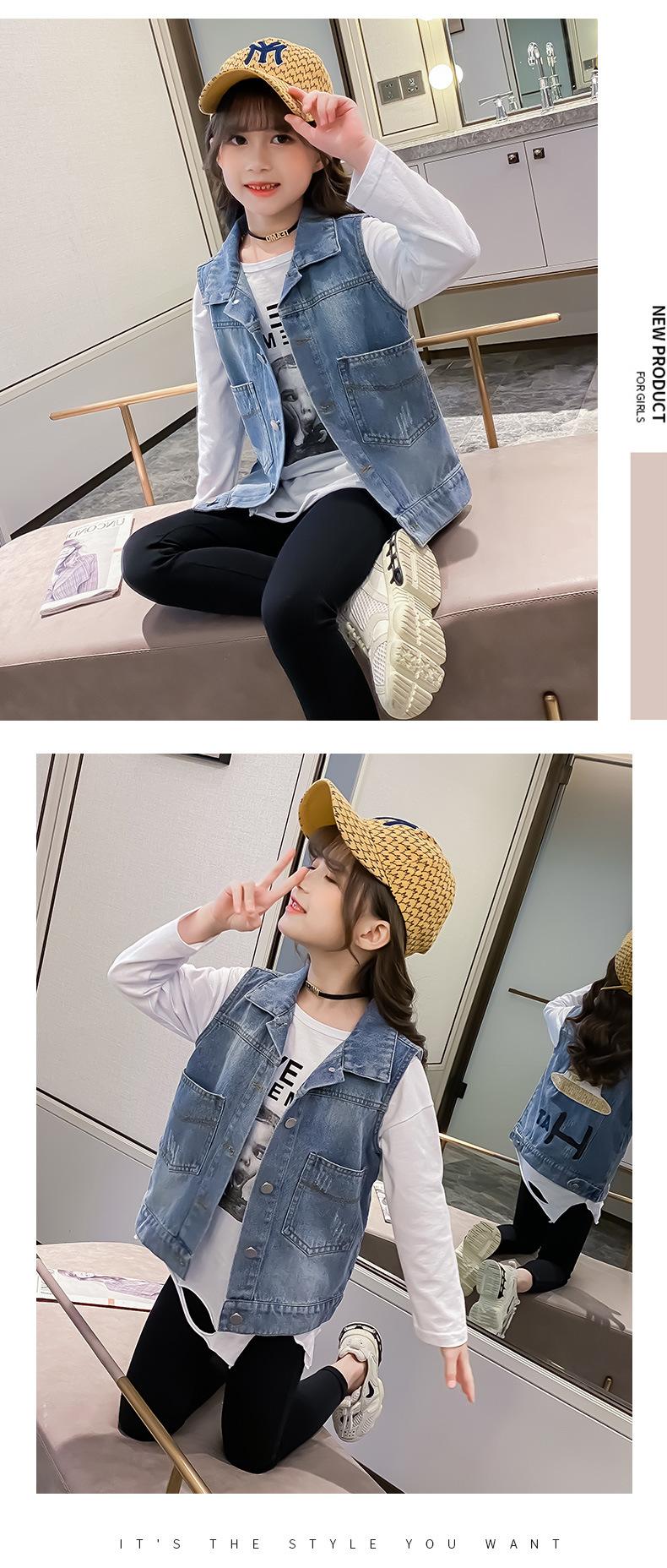 Chaleco de mezclilla para niña 2025 Primavera y Otoño Nuevo Chaleco Exterior Niños Medianos y Grandes Niños Estilo Coreano Chaqueta Chaleco Trendy