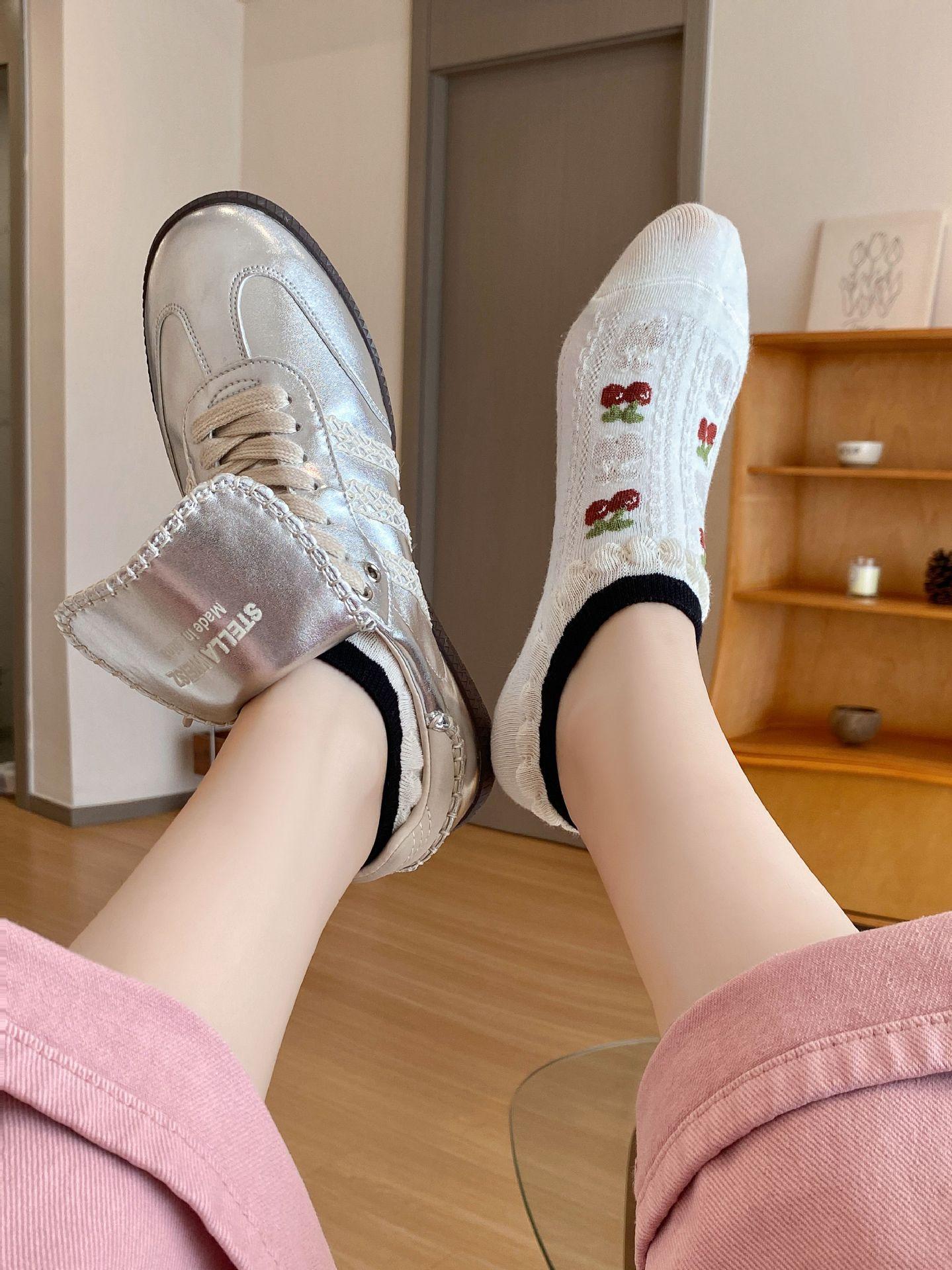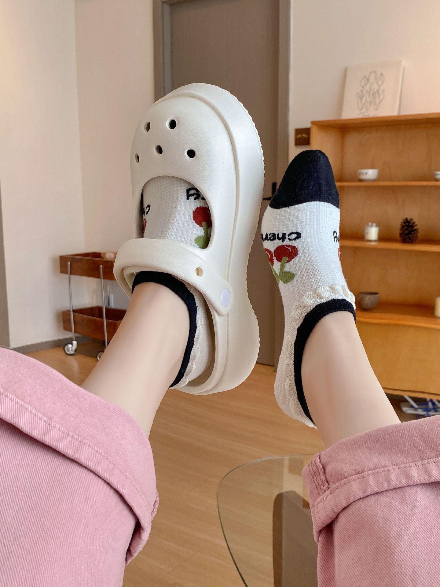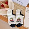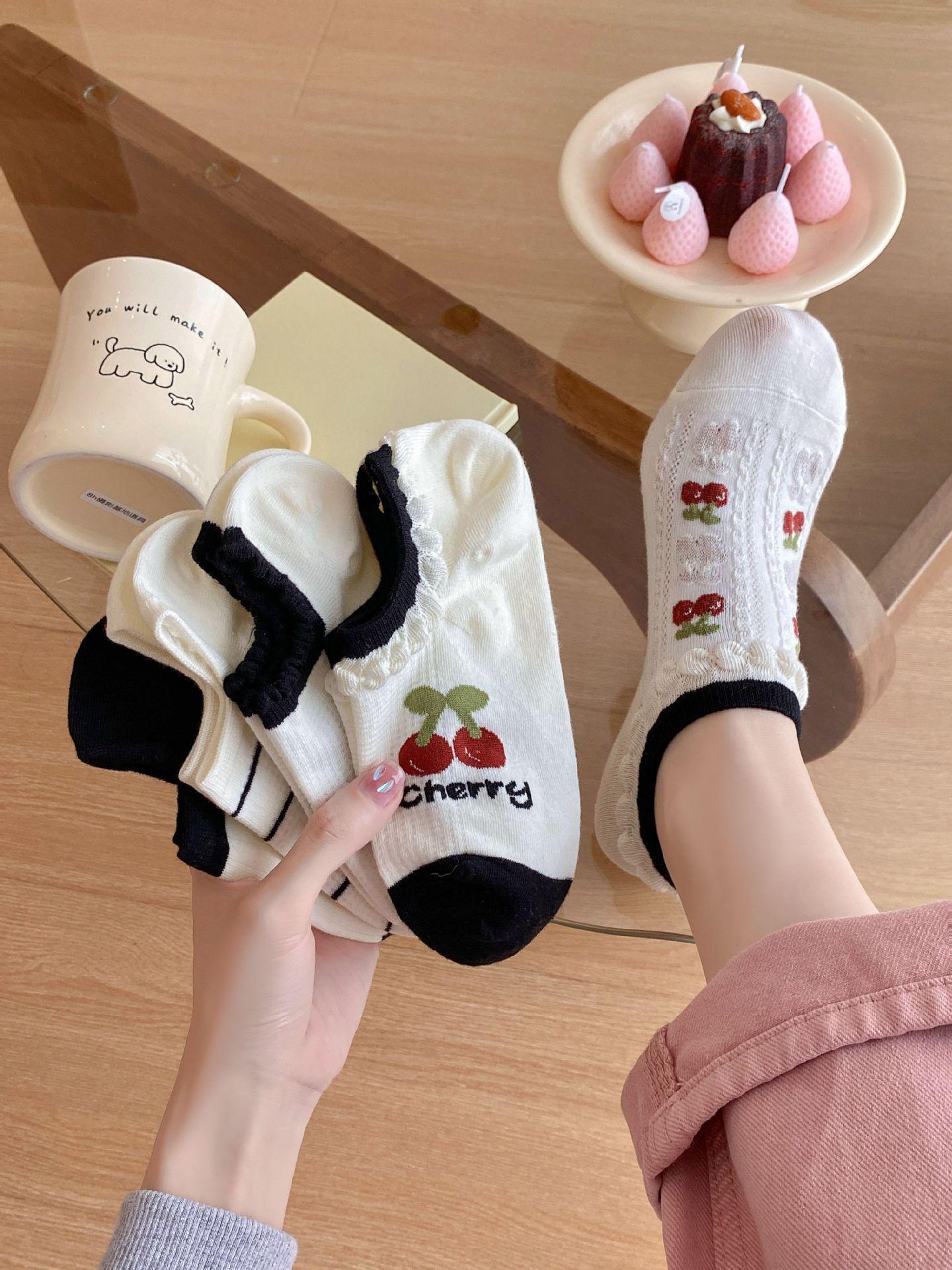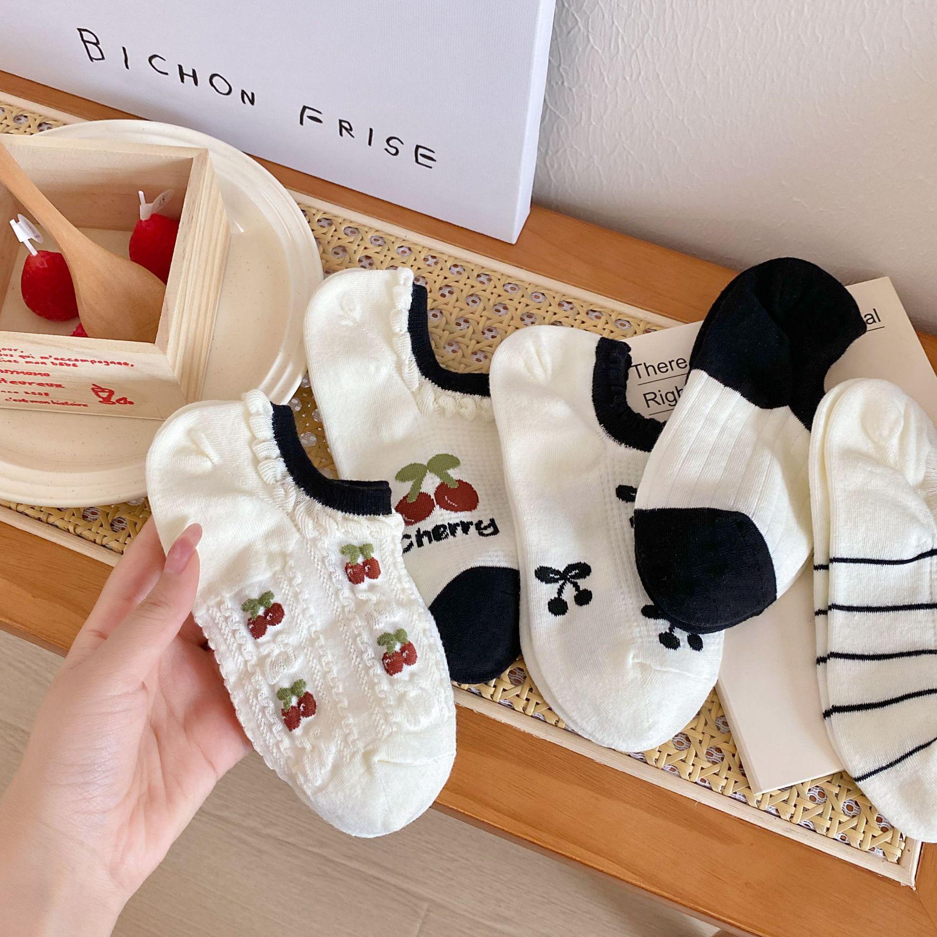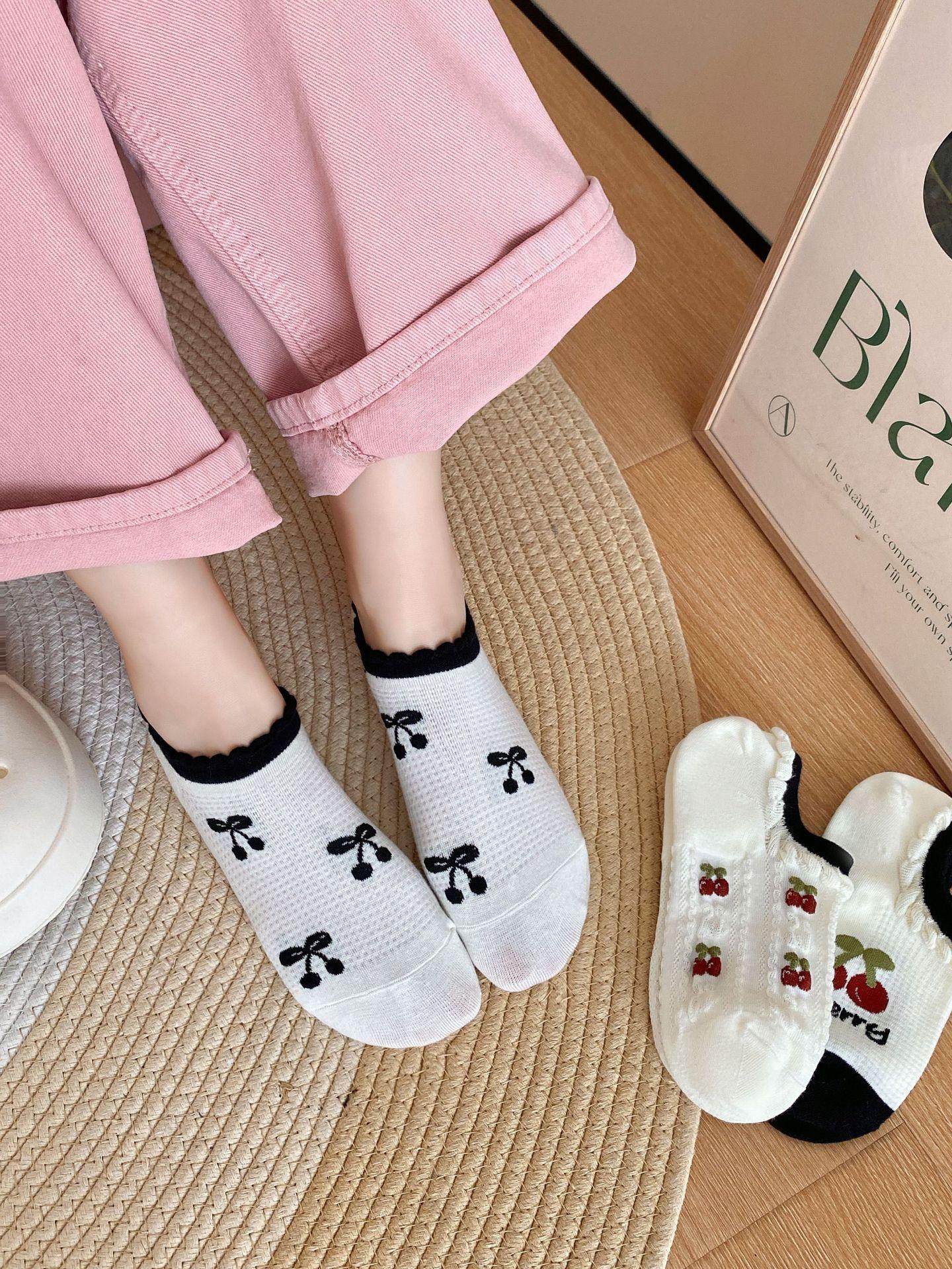 Calcetines invisibles de boca baja para mujer, finos, japoneses, de algodón, de malla con diseño de cereza, transpirables, de verano