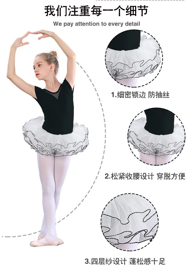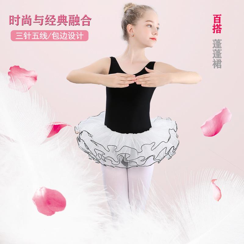 Falda de gasa para danza infantil, falda de ballet femenina, media falda corta de malla 61, falda de actuación, falda de práctica, blanco y negro