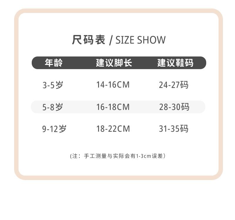 3-5 years old (recommended foot length 14-16cm), 6-8 years old (recommended foot length 16-18cm), 9-12 years o...