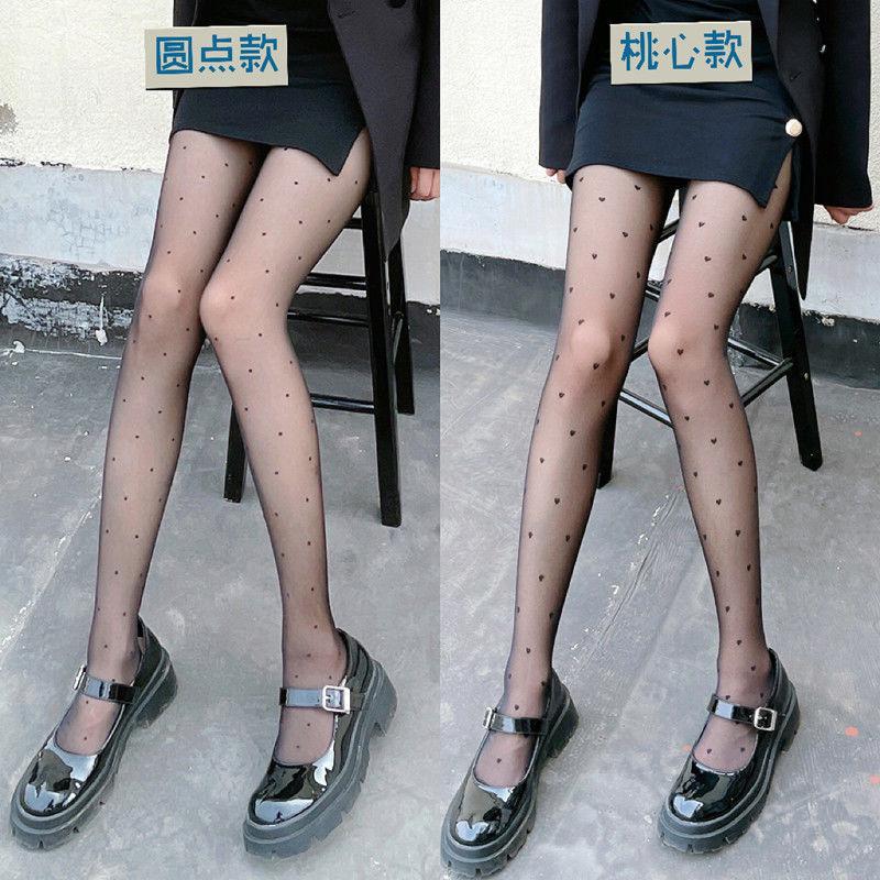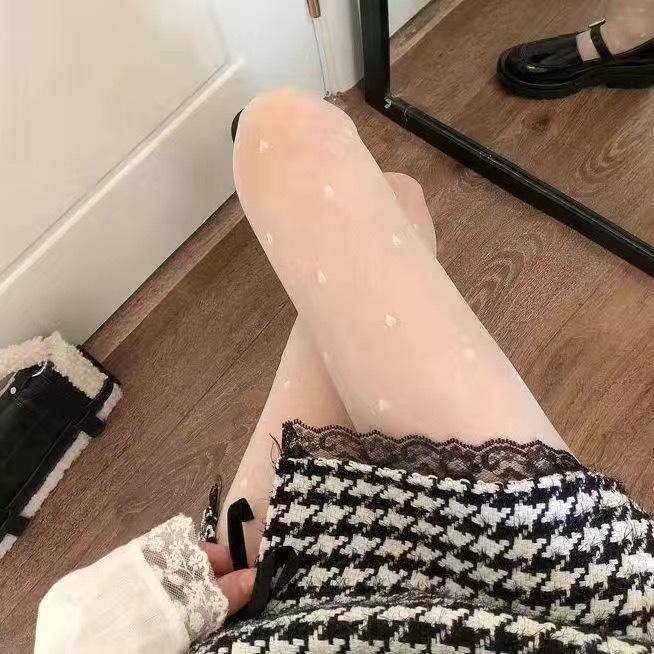 Medias de seda blanca Love para mujer, primavera y verano, finas, con lazo dulce, color blanco leche, Lolita, ondas redondas, lunares, JK, seda negra