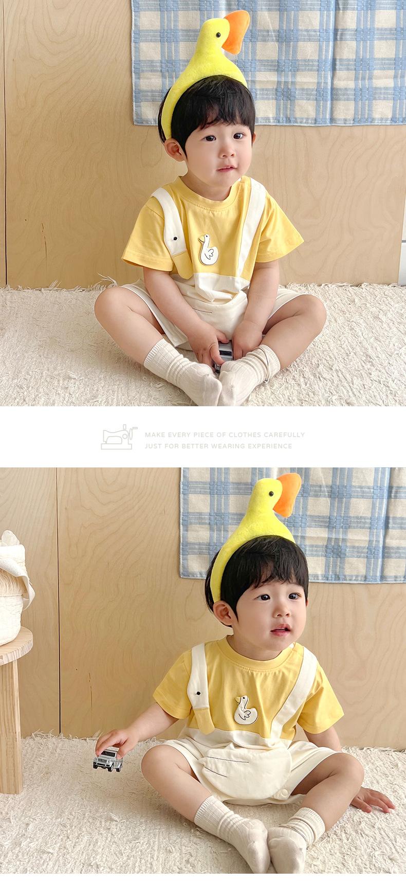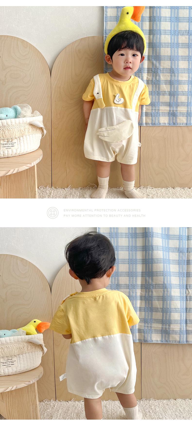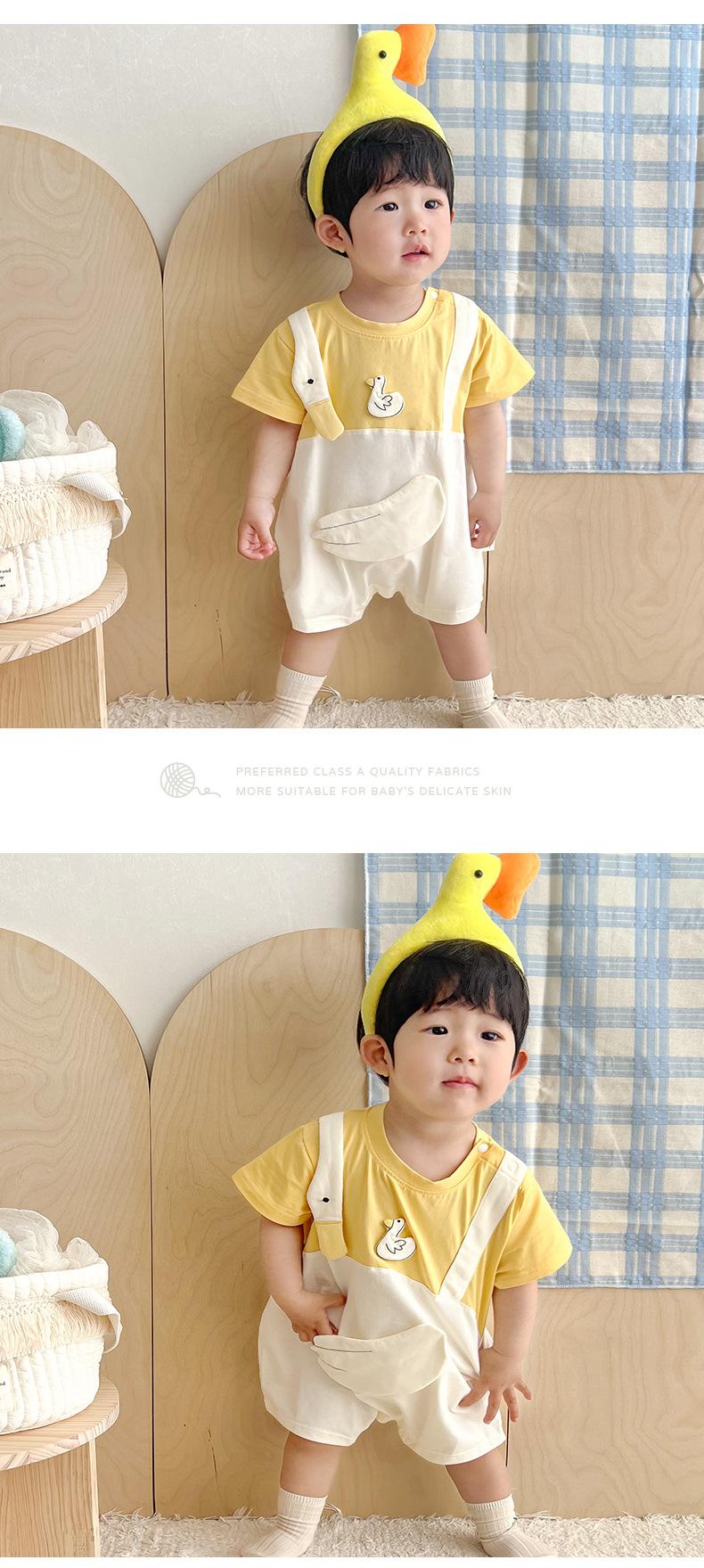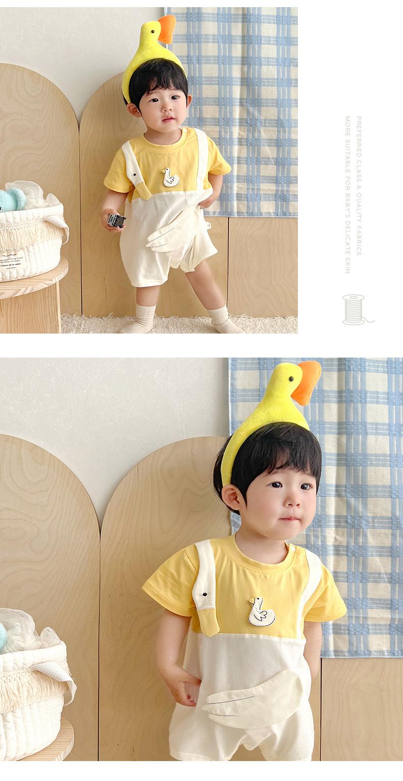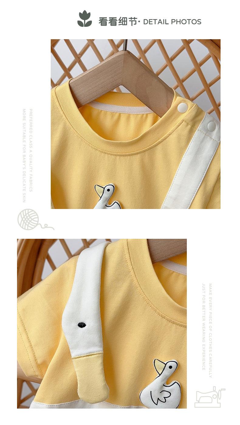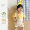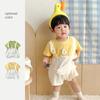 Verano 2024, estilo coreano, contraste de color, nueva manga corta, luna llena, cien días, linda caricatura, bebé niño, ropa de escalada de dos piezas falsa