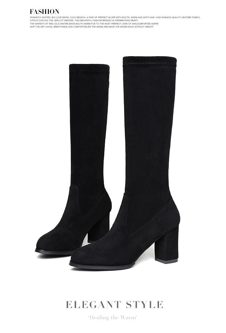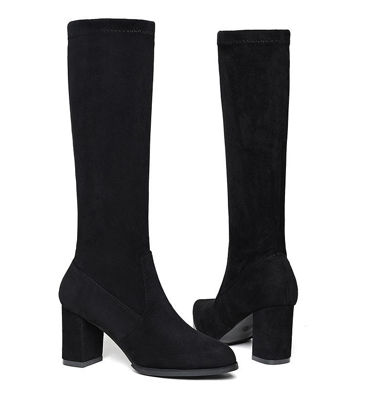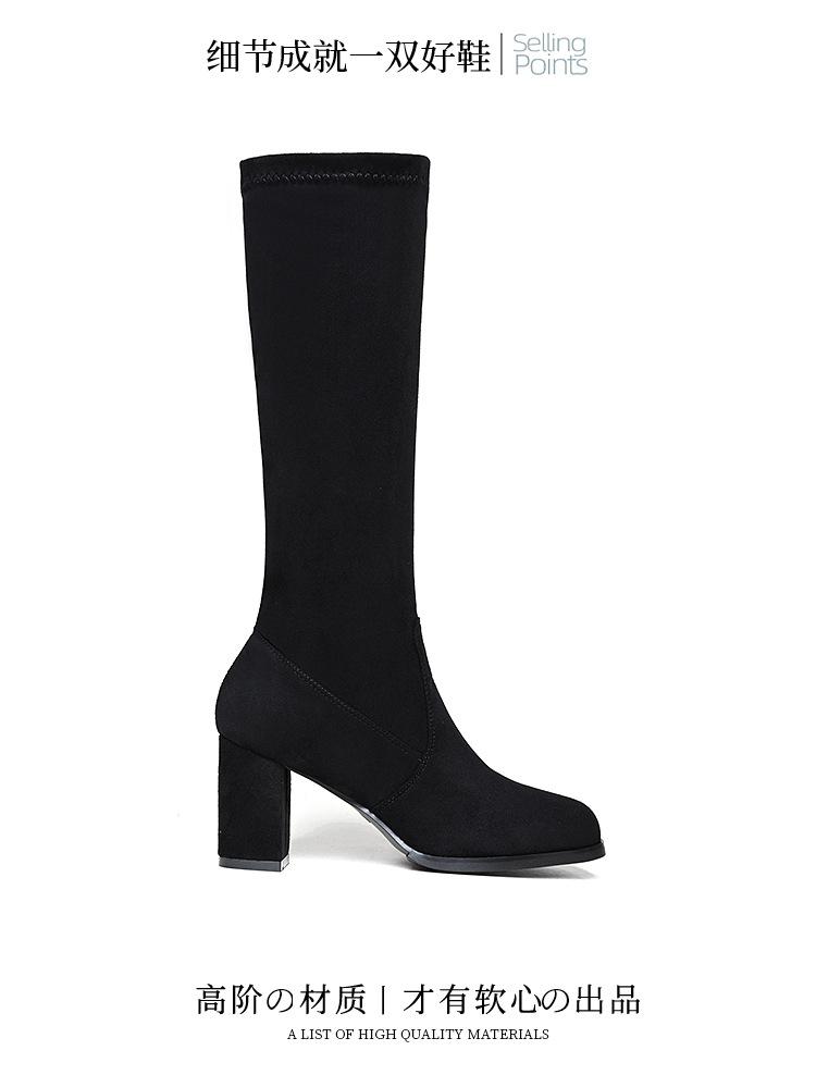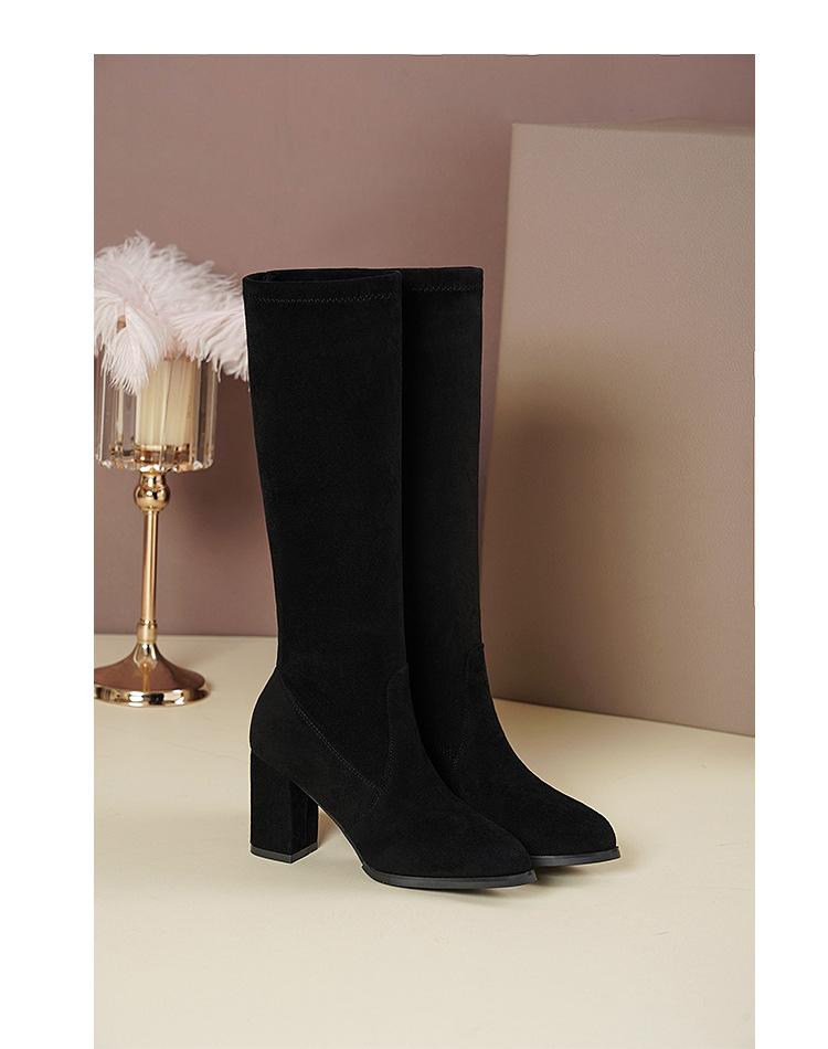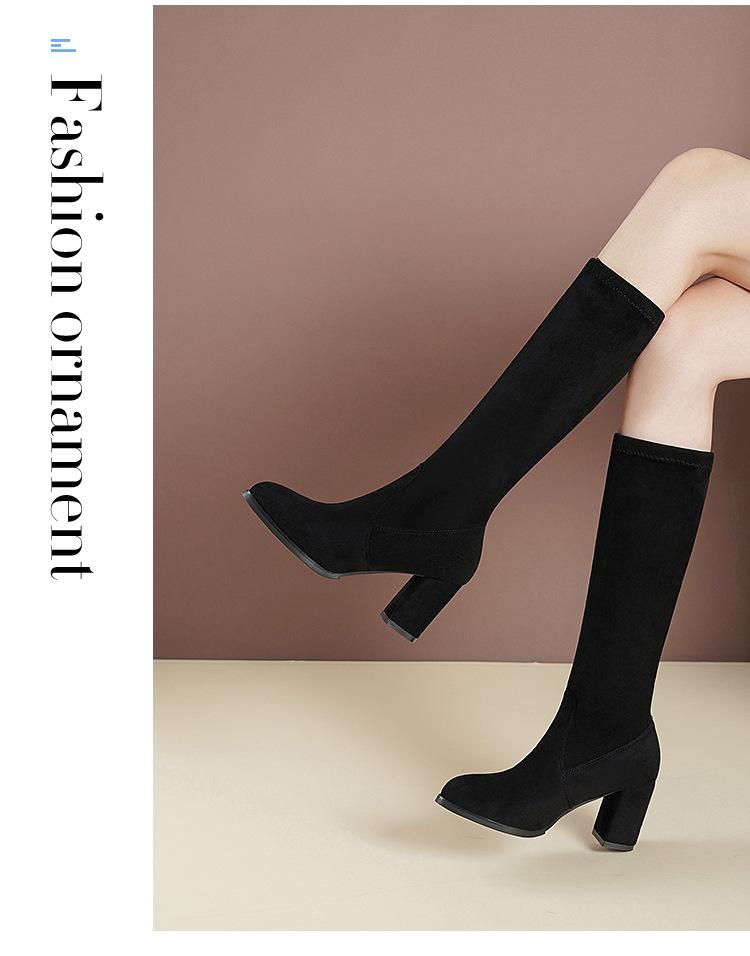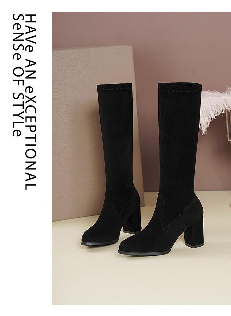 Pero Botas Hasta la Rodilla Botas Elásticas 2024 Otoño e Invierno Nuevo Europeo y Americano Ante Punta Afilada Tacones Altos Gruesos Botas de Moda
