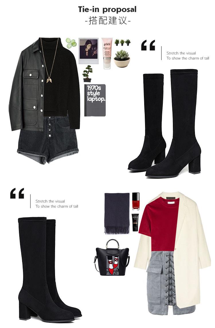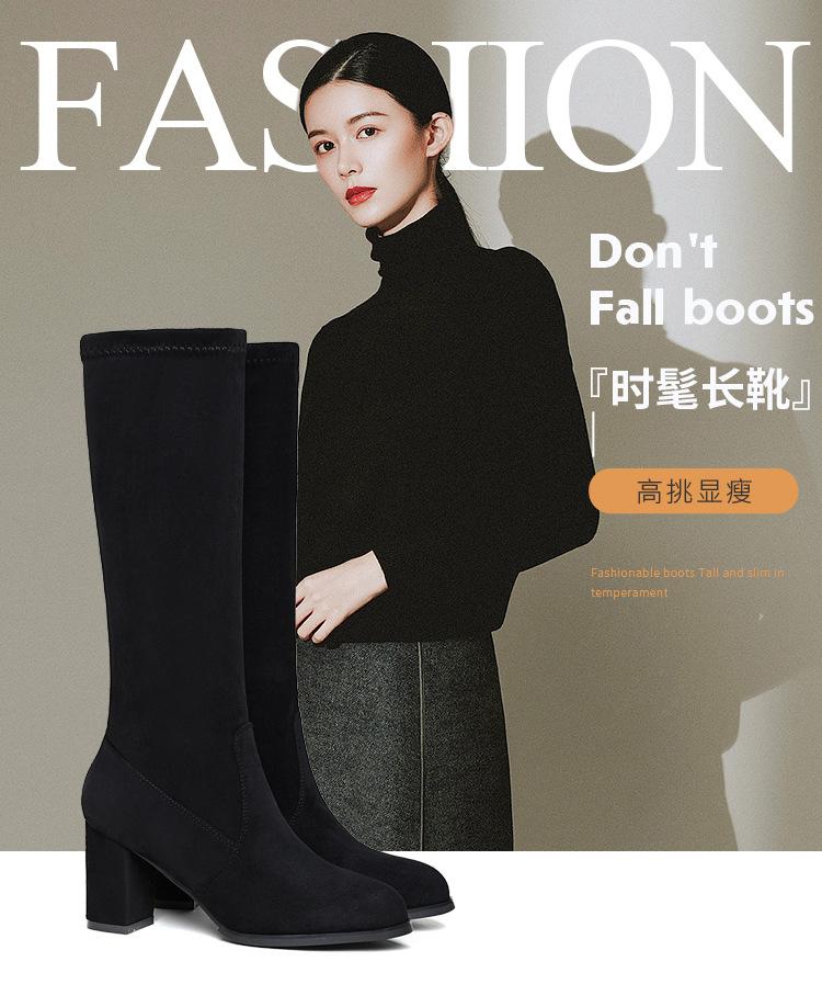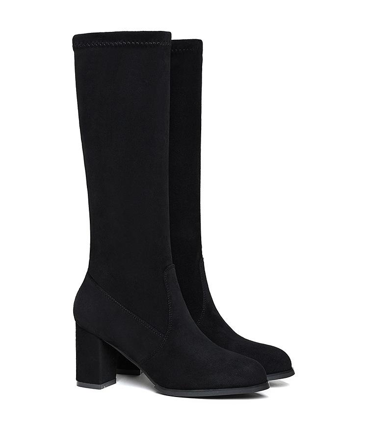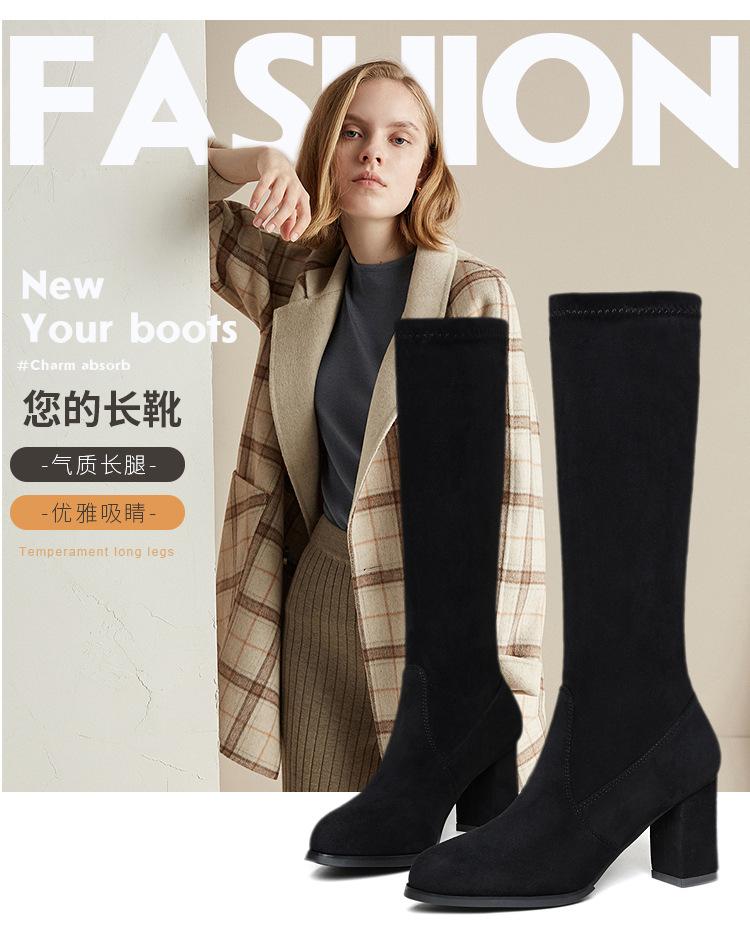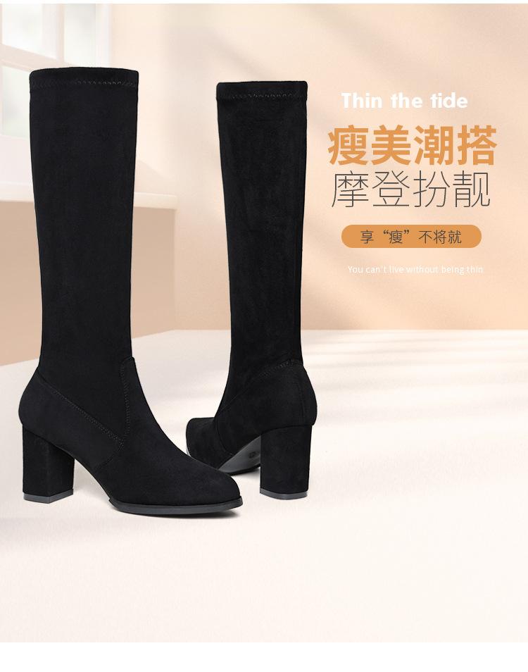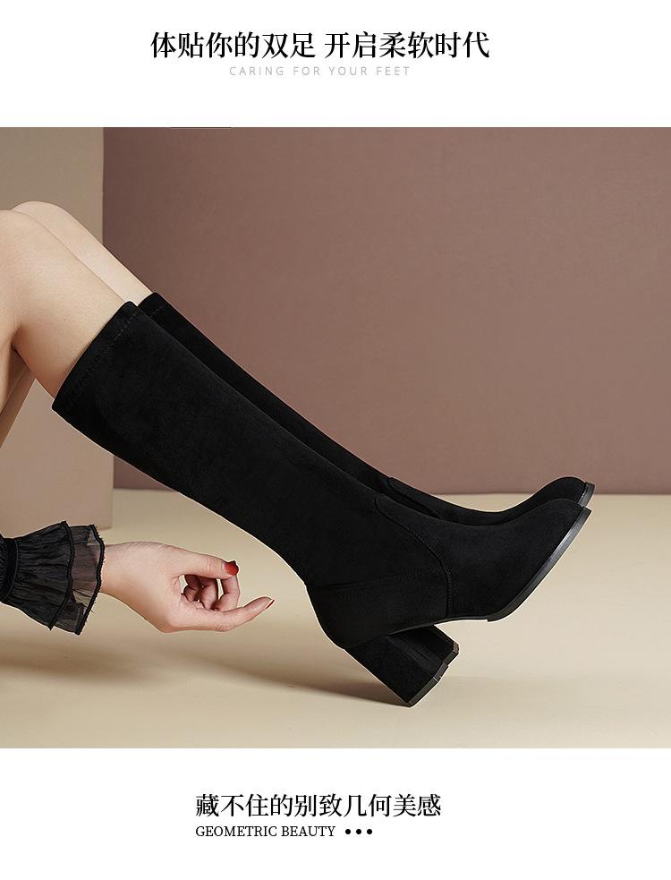 Pero Botas Hasta la Rodilla Botas Elásticas 2024 Otoño e Invierno Nuevo Europeo y Americano Ante Punta Afilada Tacones Altos Gruesos Botas de Moda