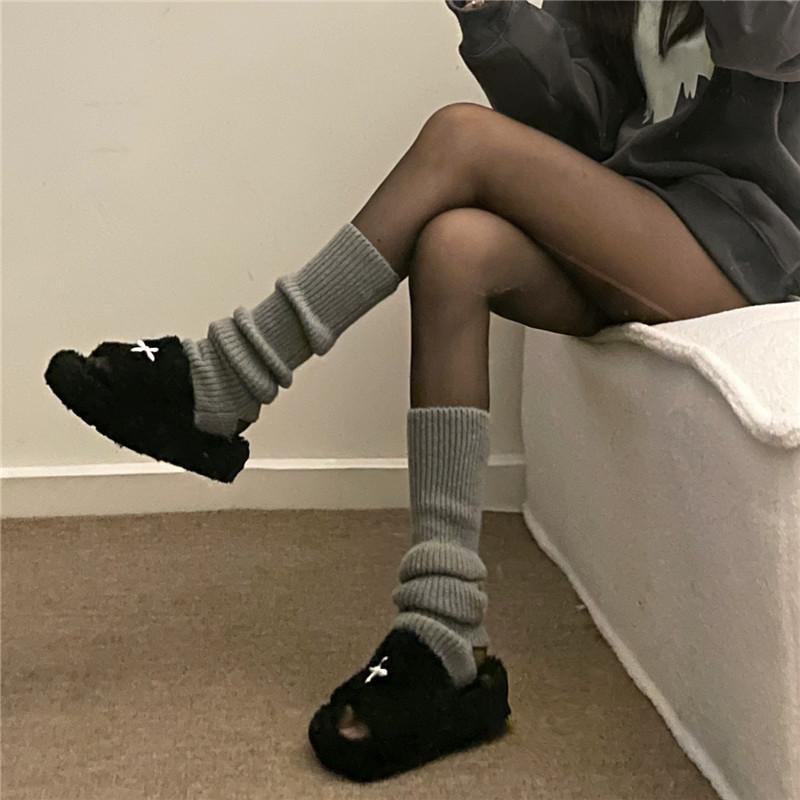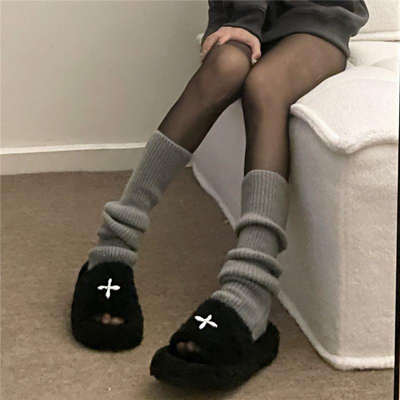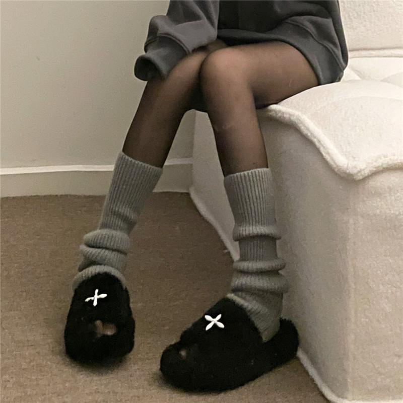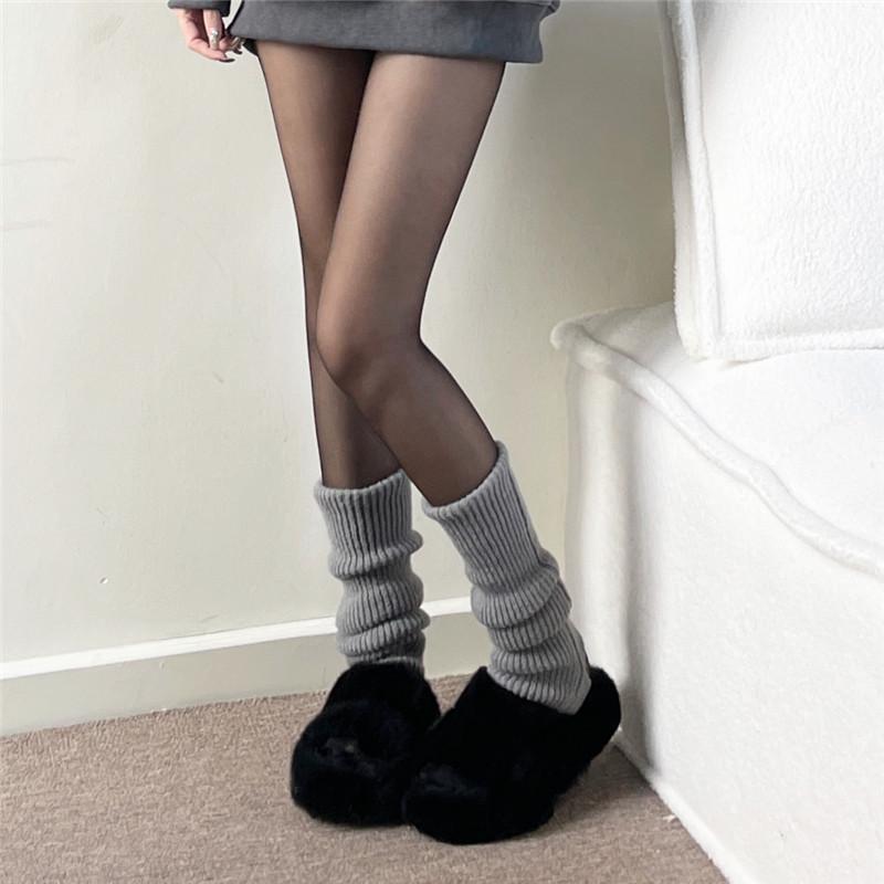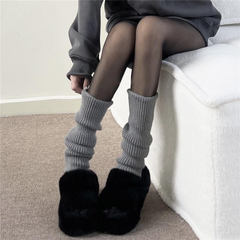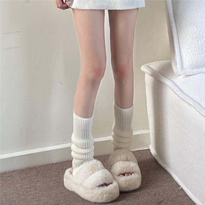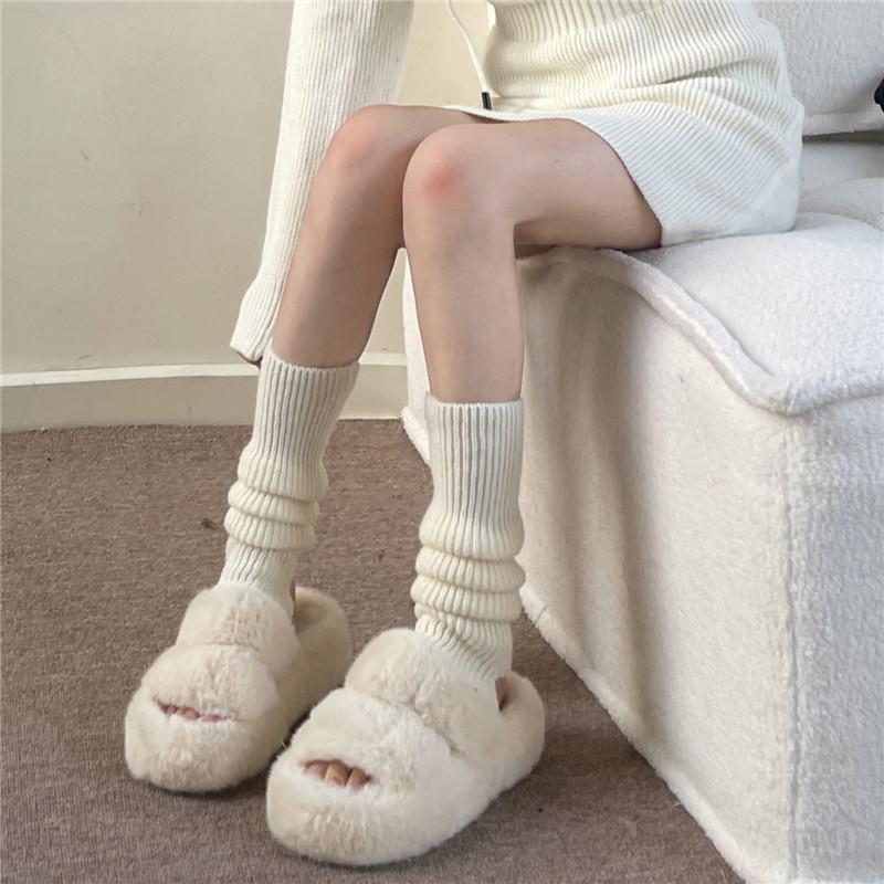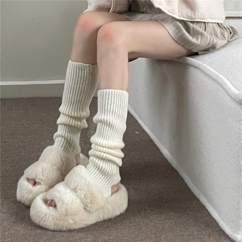 Calcetines de punto estilo JK, calcetines blancos de pelo largo, calcetines para pantorrillas, leggings de yoga japoneses de color sólido, calcetines de pierna de color sólido estilo coreano.