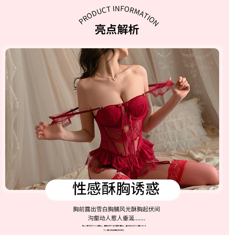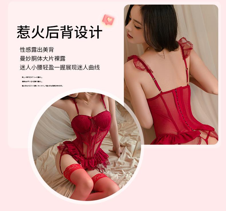 Lencería Sexy para Dormir, Sujetador con Aro de Acero, Push-Up Pechos Pequeños, Sexy Encaje Quilla Encaje Quilla Chaleco Set 35