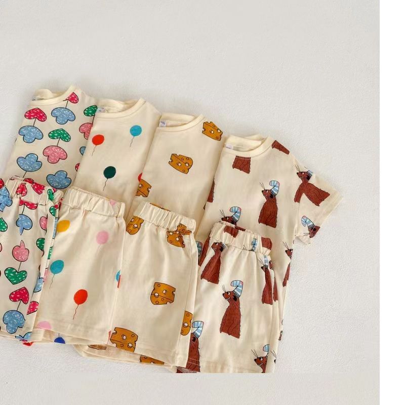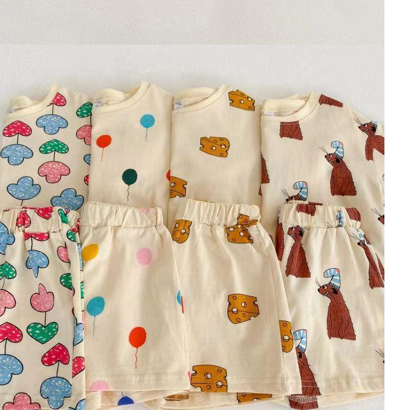 Conjunto para Bebé de Tela de Seda de Hielo Holgado de Verano de Manga Corta Pantalones Cortos Pijama para Niños y Niñas Ropa Fresca para el Hogar Ropa para Aire Acondicionado