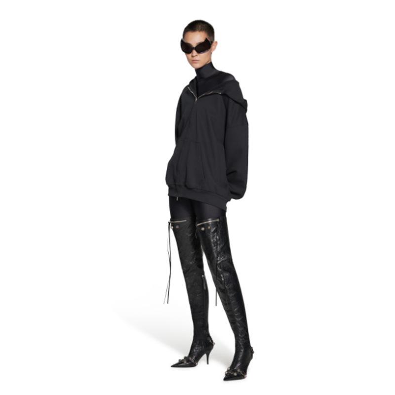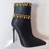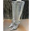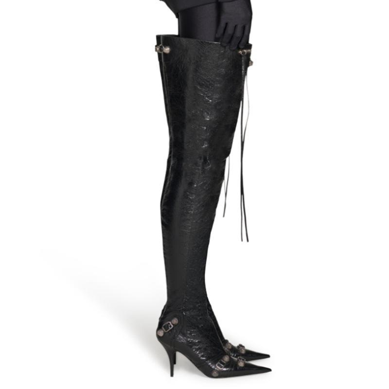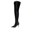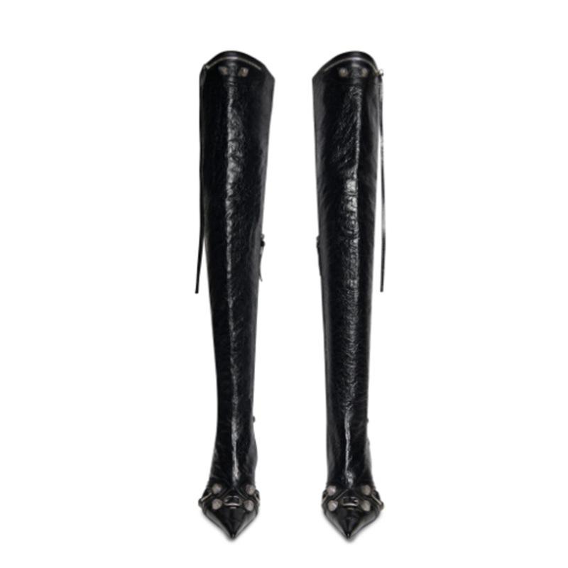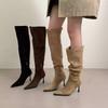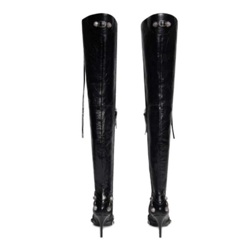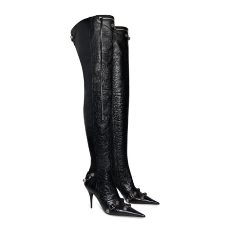 Botas de tacón de aguja puntiagudo con cremallera lateral, remaches y hebilla de alfiler, para comercio exterior transfronterizo 2024, talla grande, hasta la rodilla, tacones altos