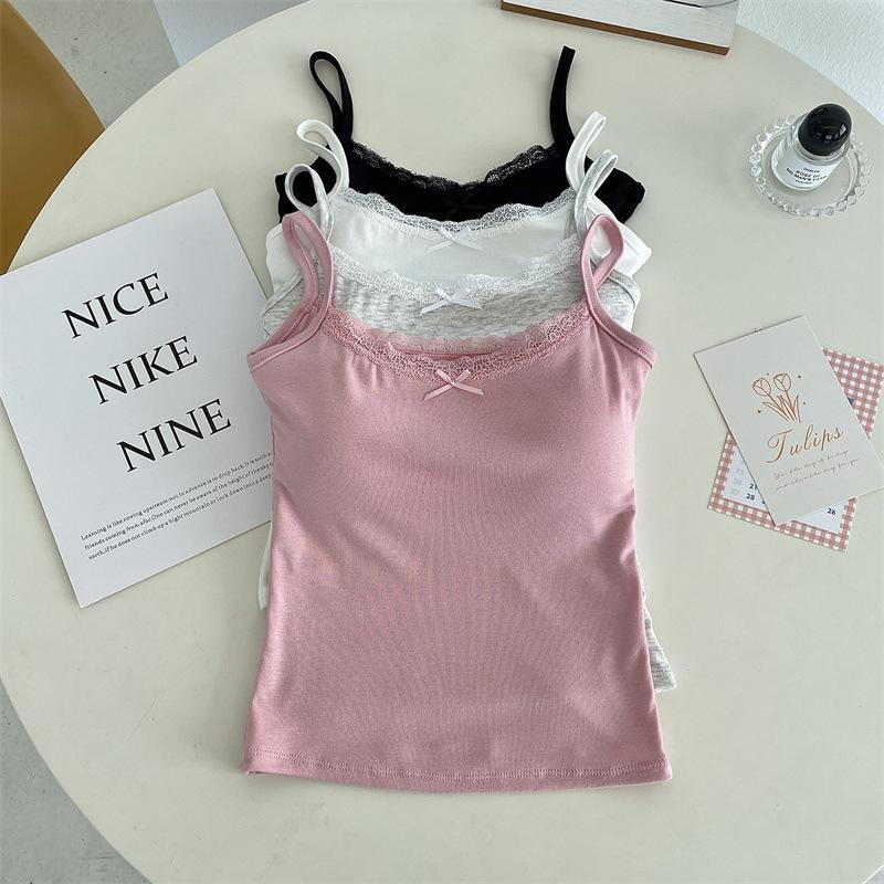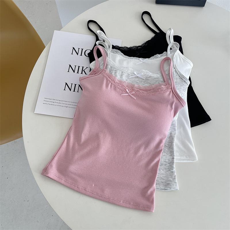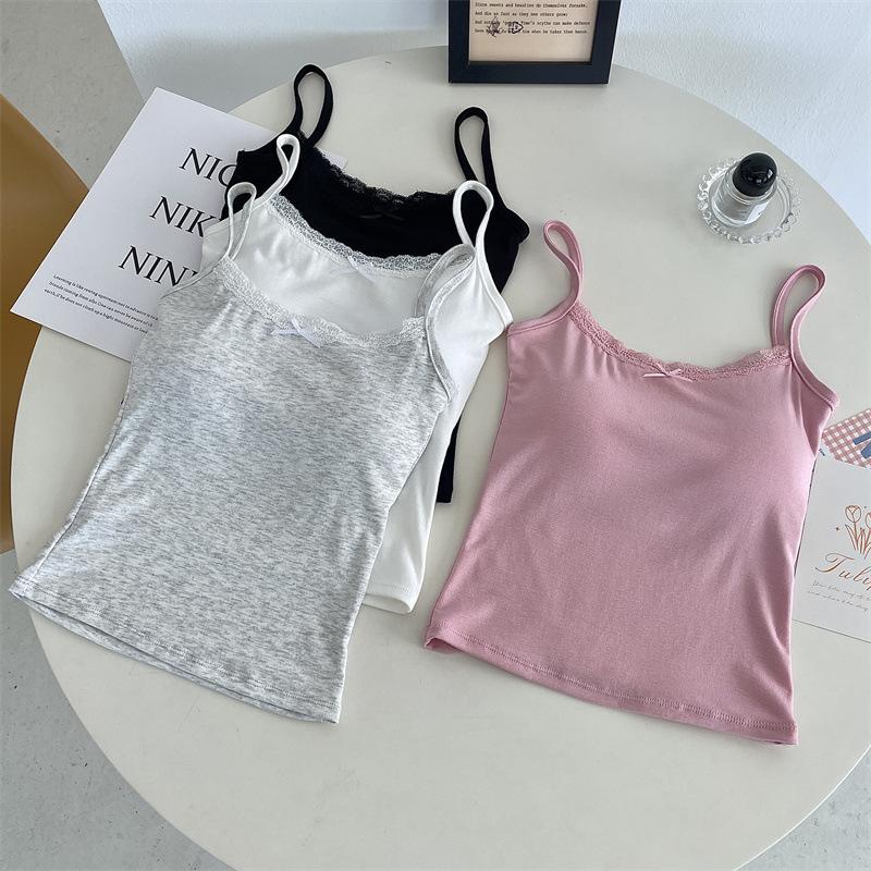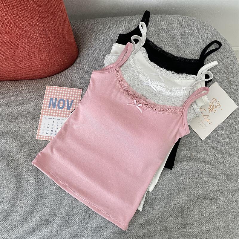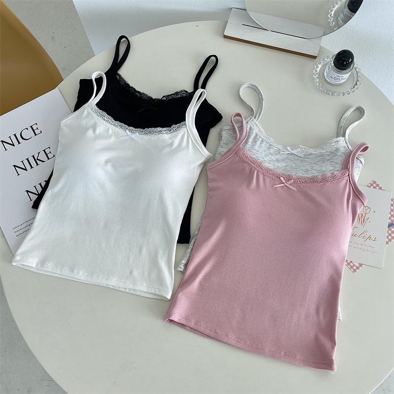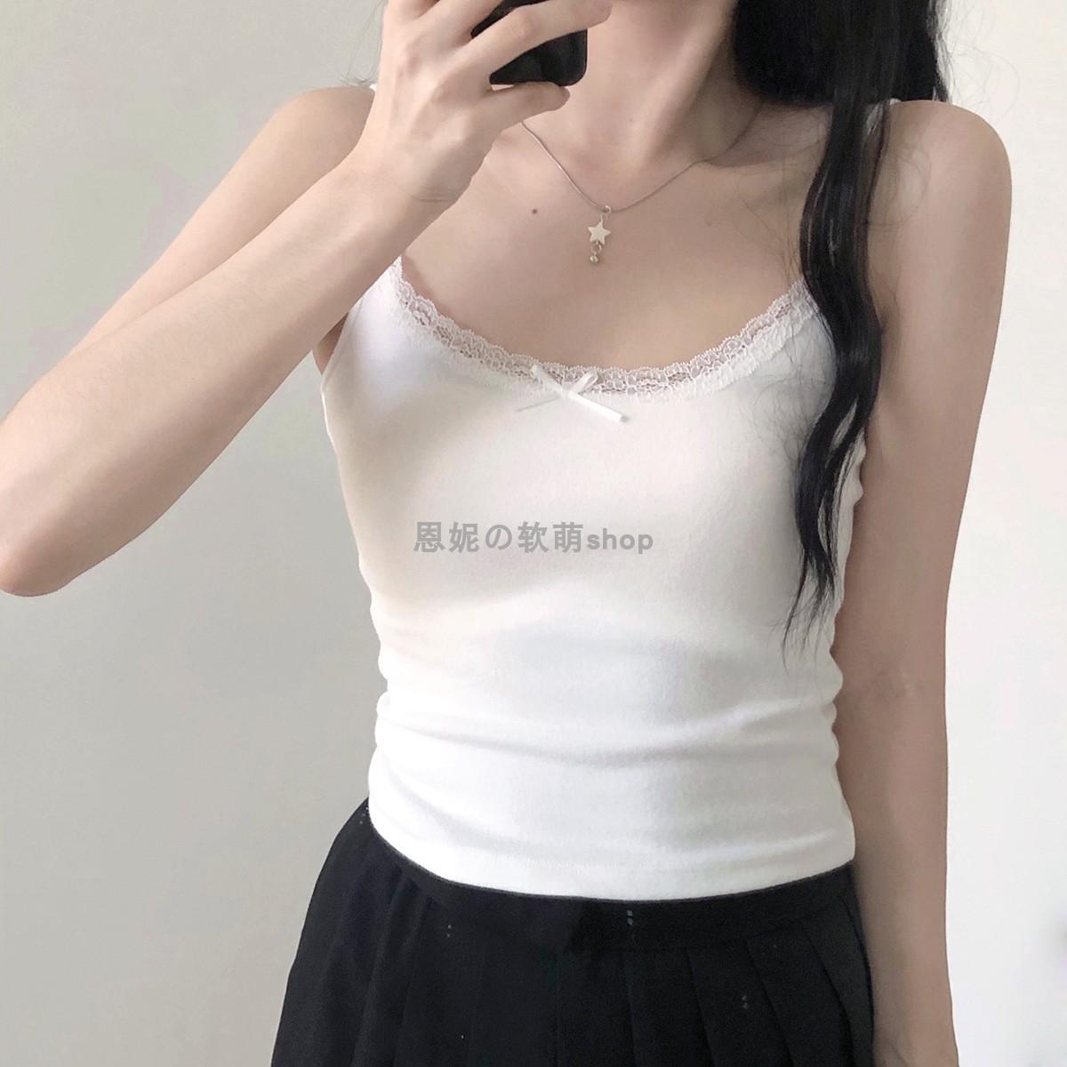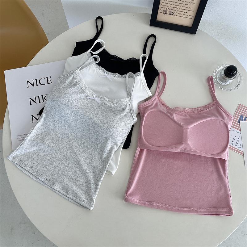 Chaleco de encaje de algodón de verano para mujer, con cinturón y almohadilla para el pecho, anti-caminar, combina con todo, prenda exterior ajustada, base interior pequeña.