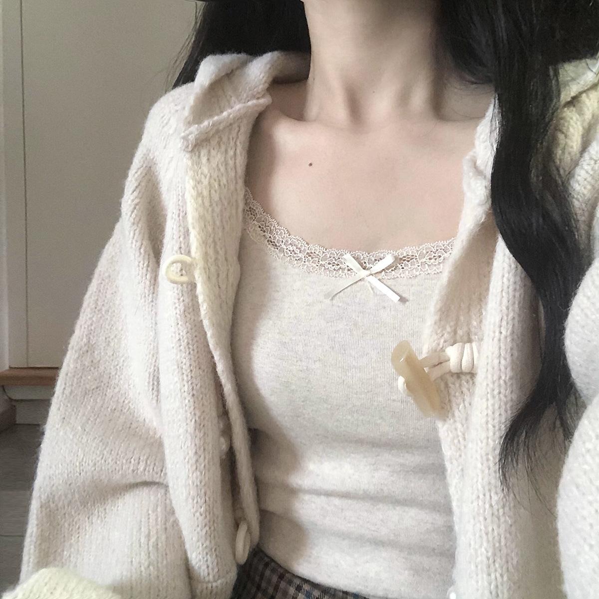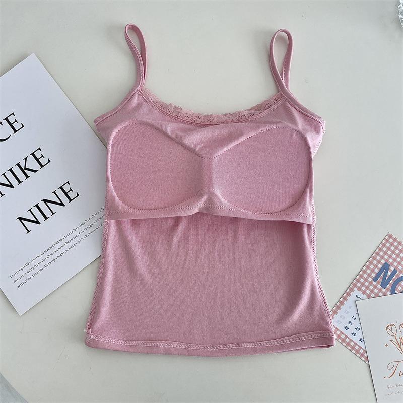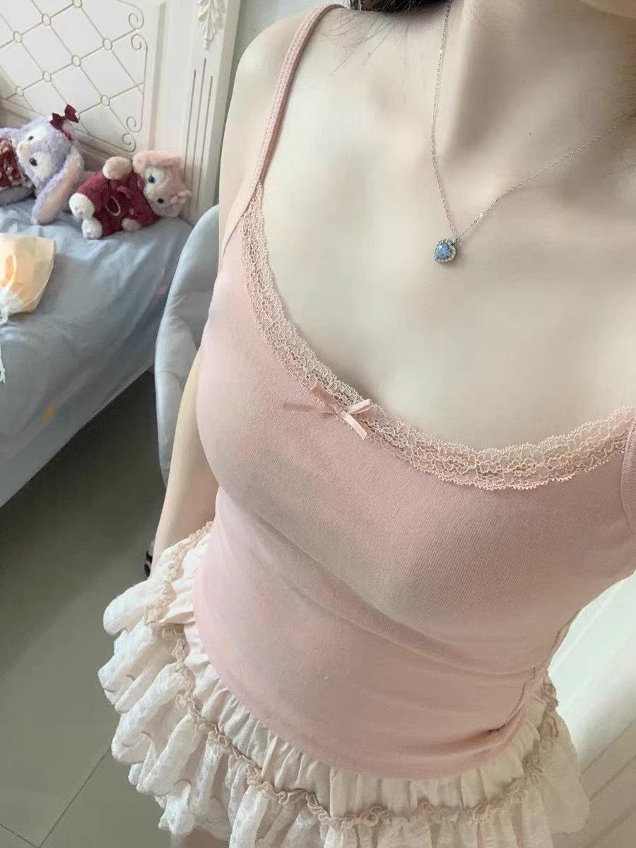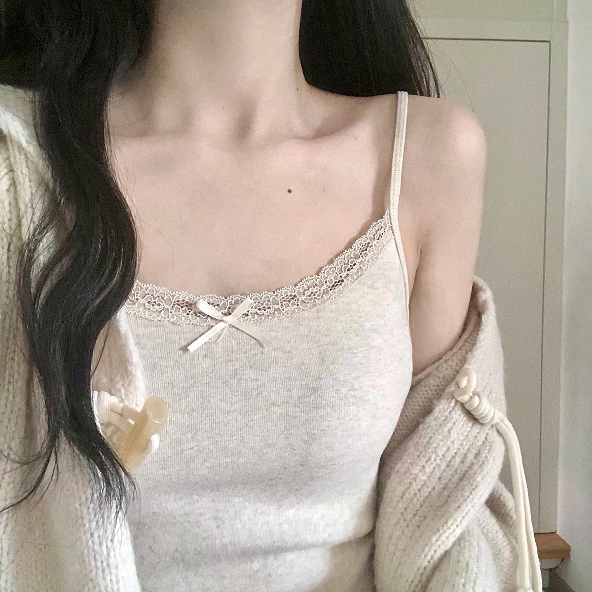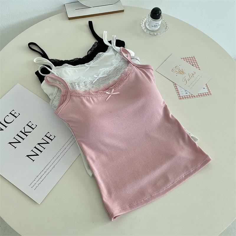 Chaleco de encaje de algodón de verano para mujer, con cinturón y almohadilla para el pecho, anti-caminar, combina con todo, prenda exterior ajustada, base interior pequeña.
