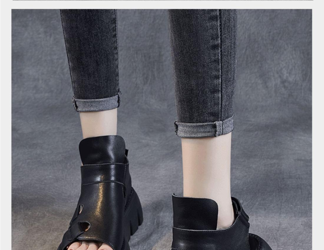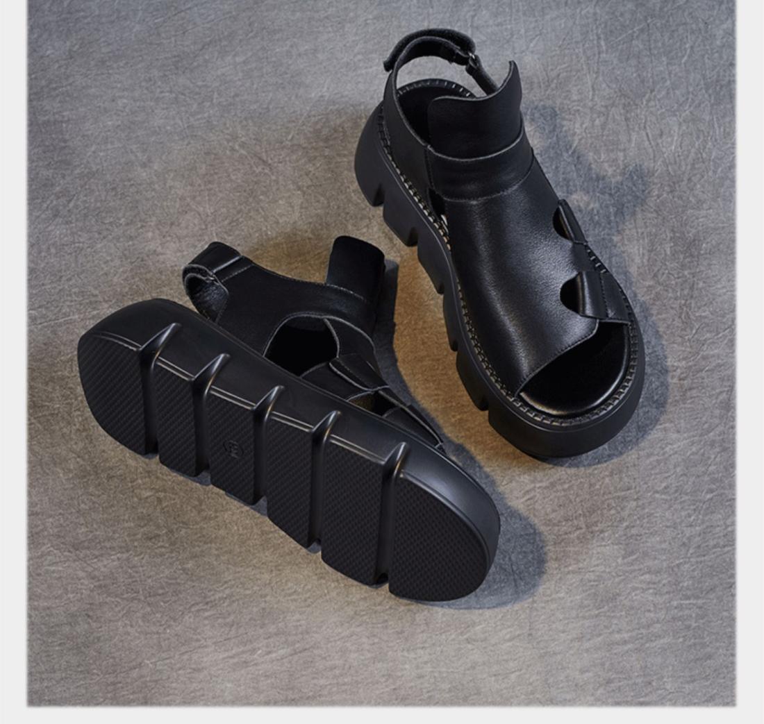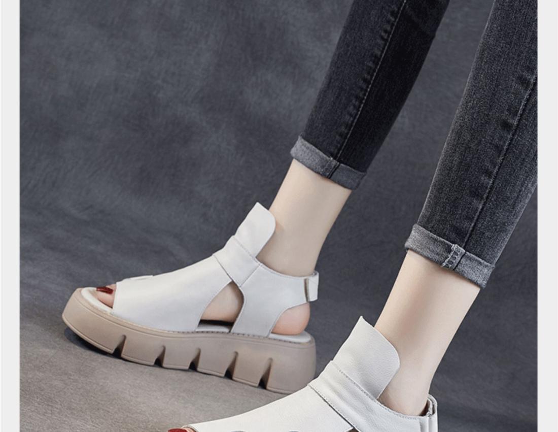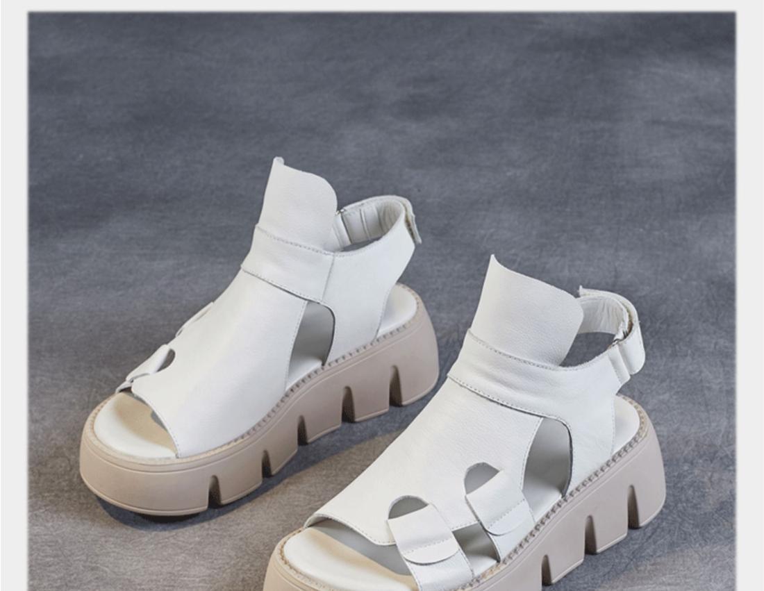 Sandalias Nuevas 2025 para Mujer Verano Plataforma Suela Gruesa Antideslizante Tacón Medio Punta Abierta Zapatos Romanos Sandalias de Velcro de Caña Alta