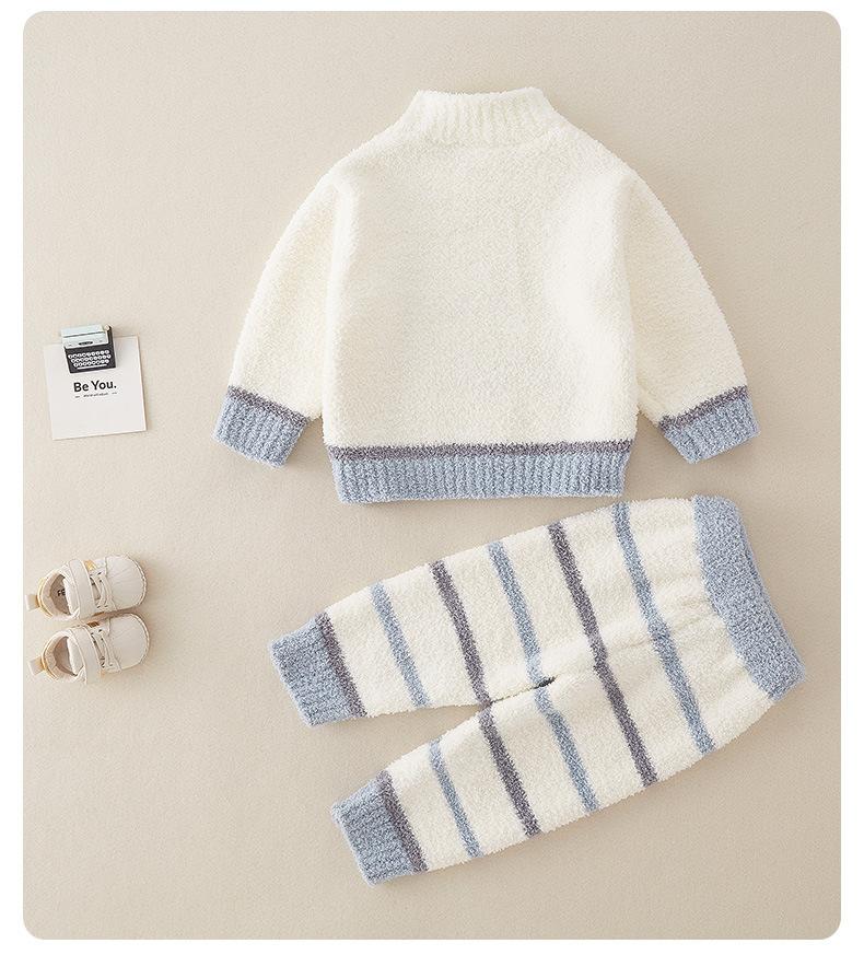 | Conjunto de otoño de algodón clase A para niños, nuevo, guapo, a rayas azules, ropa de bebé para niños, sudadera infantil, conjunto de dos piezas |