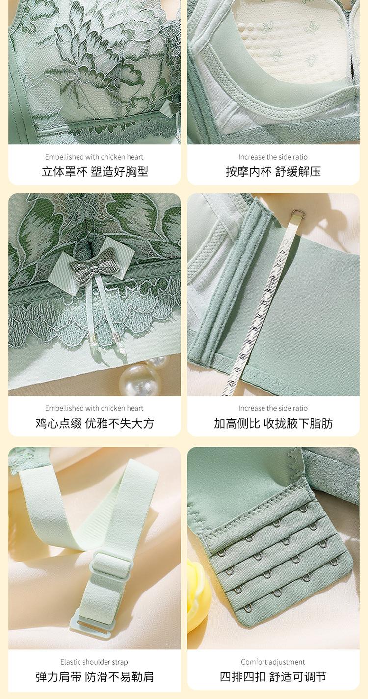 Este es un sujetador de encaje sin varilla, disponible en cinco colores: verde/amarillo/piel/rojo/negro, copa universal AB 32-40, grosor medio, de aproximadamente 2.3CM de grosor, tirantes fijos y ajustables antideslizantes, laterales con corte de tela arbitrario y cuatro filas de botones en la espalda. Solo una pieza, sin ropa interior a juego.