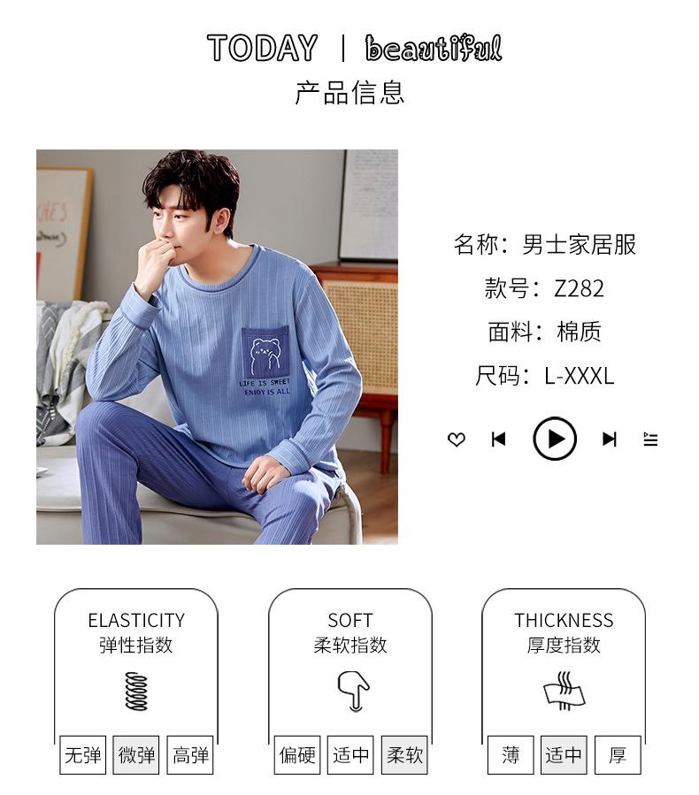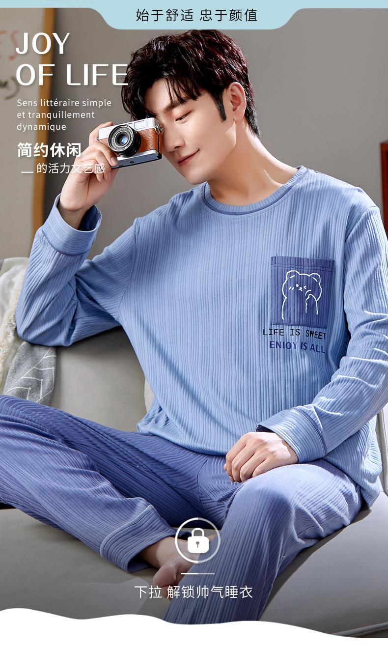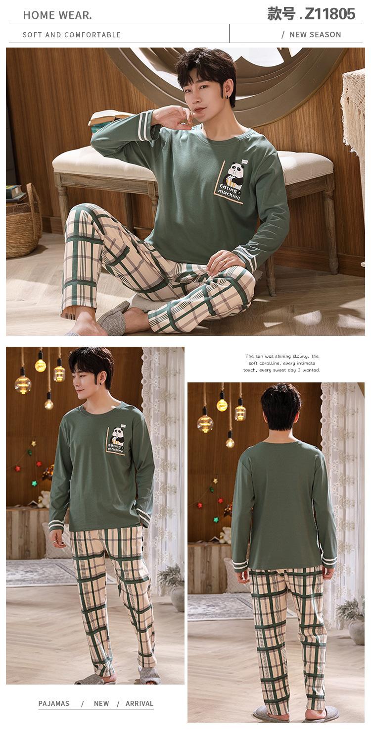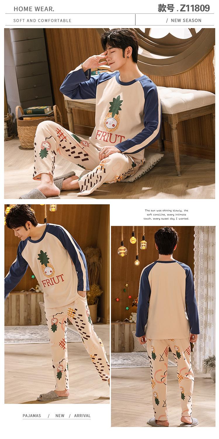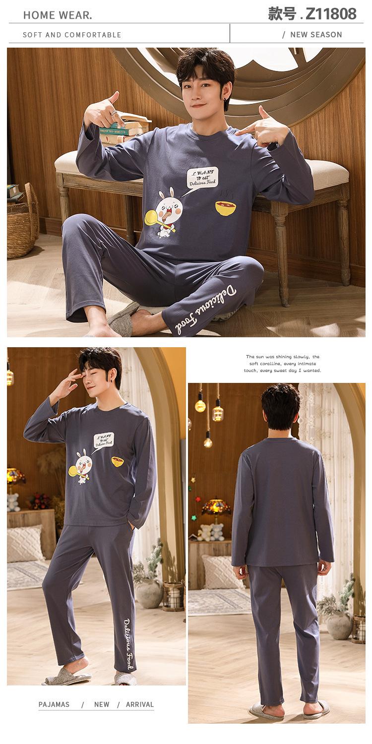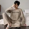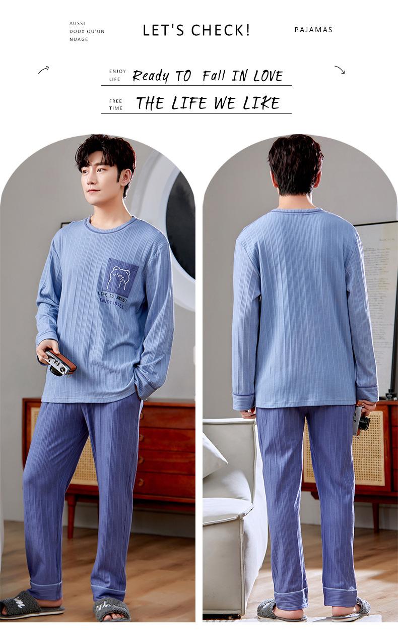 Pijama Meishufen para hombre de manga larga de algodón para otoño e invierno, ropa casual para exteriores para jóvenes, deportiva, holgada, para el hogar