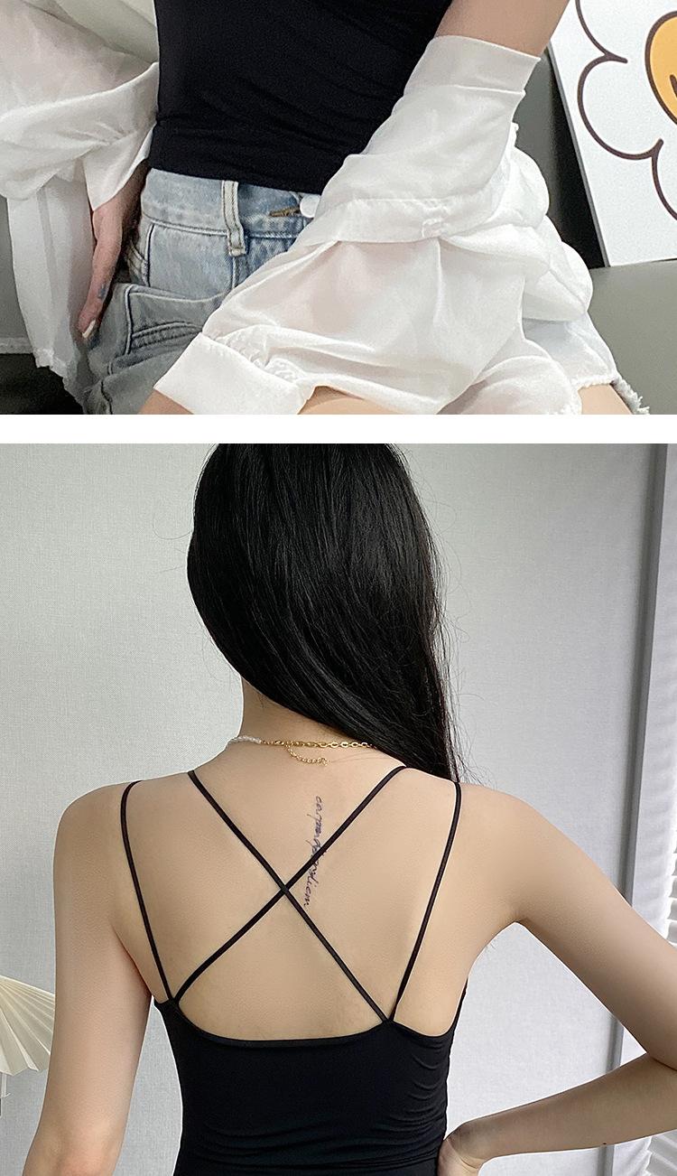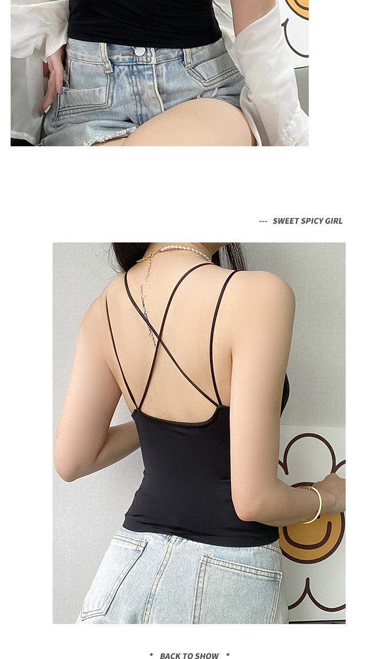 Top de Tirantes de Seda de Hielo con Espalda Hermosa para Sexys con Almohadillas en el Busto Camisola Francesa Ropa Exterior Fondo Tubo Top Íntimos