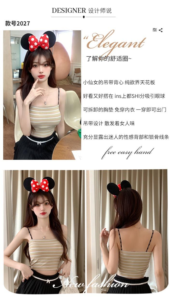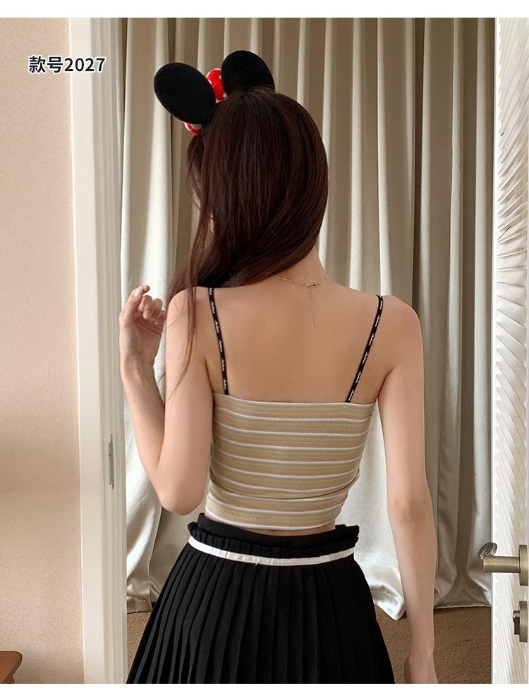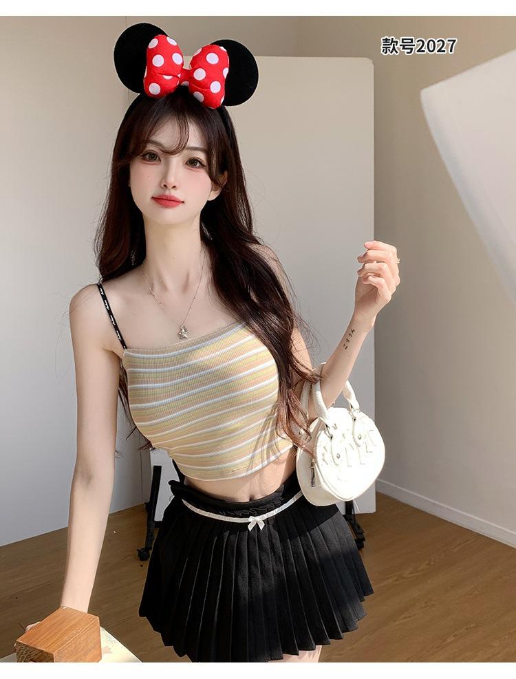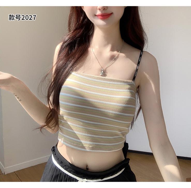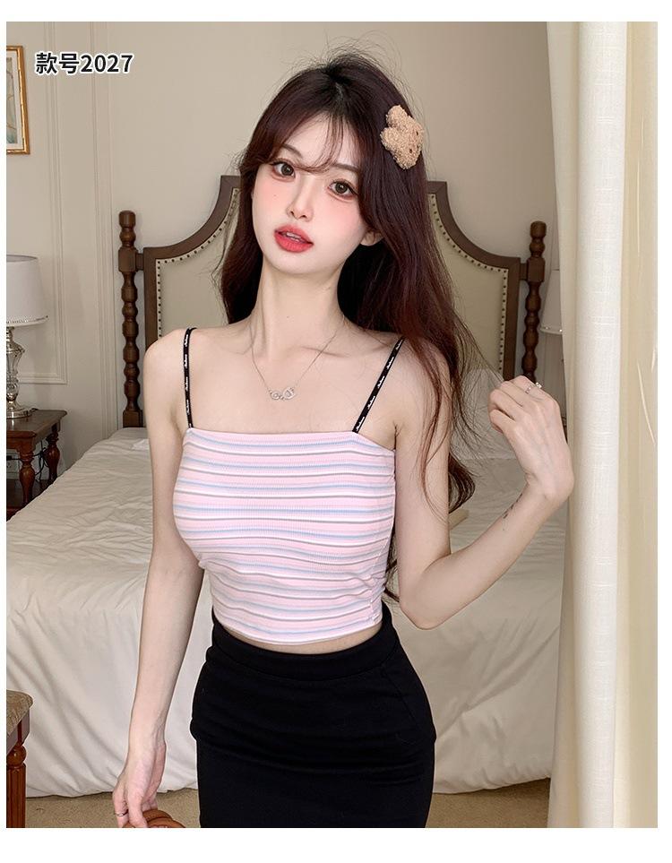Camisola de punto de algodón a rayas coloridas para mujer, verano, estilo coreano, versátil, corte ajustado, corta, sexy, prenda exterior