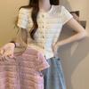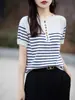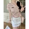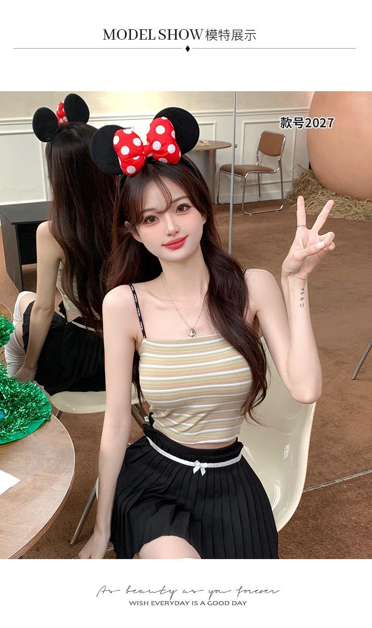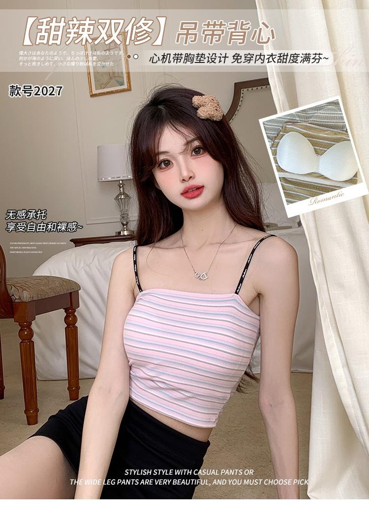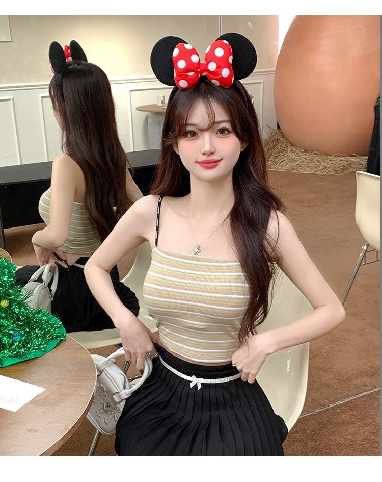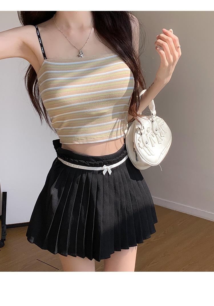 Camisola de punto de algodón a rayas coloridas para mujer, verano, estilo coreano, versátil, corte ajustado, corta, sexy, prenda exterior