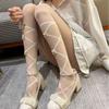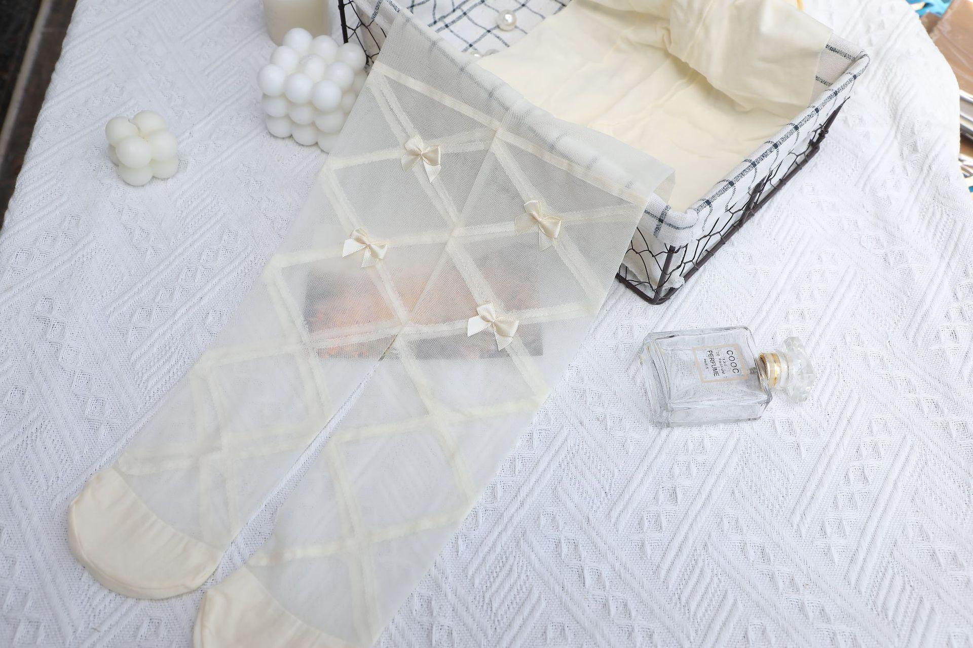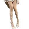 Medias de seda con lazo cruzado blanco, puras, sexys, con lazo en la pantorrilla, estilo lolita japonés, de seda blanca.